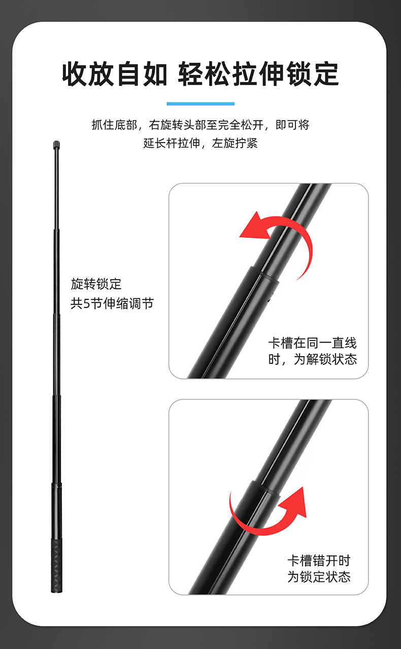 멀티 포지션 촬영 세트 브래킷 (도난 방지 모델) 을 설치하는 입 클립이있는 1.1 m 연장봉
