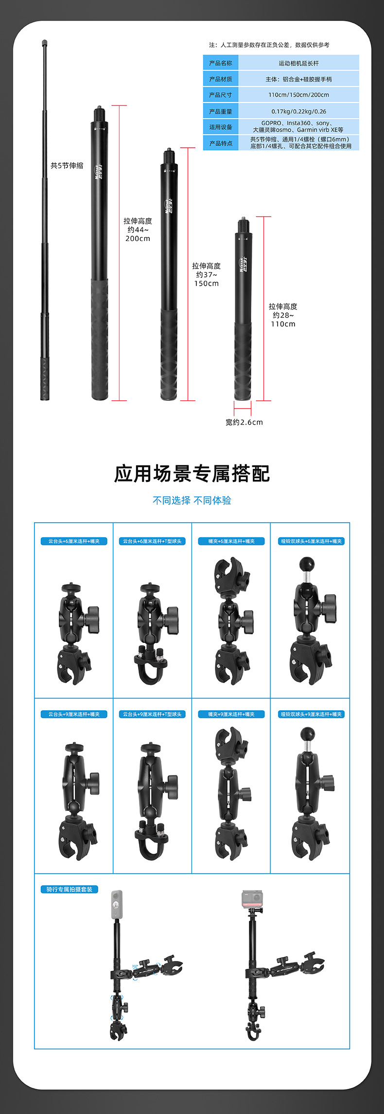 N-STAR 오토바이 특수 스포츠 카메라 확장로드 촬영로드 세트 고정 360instar GOPRO