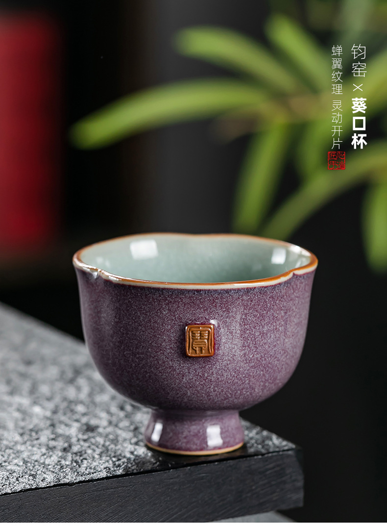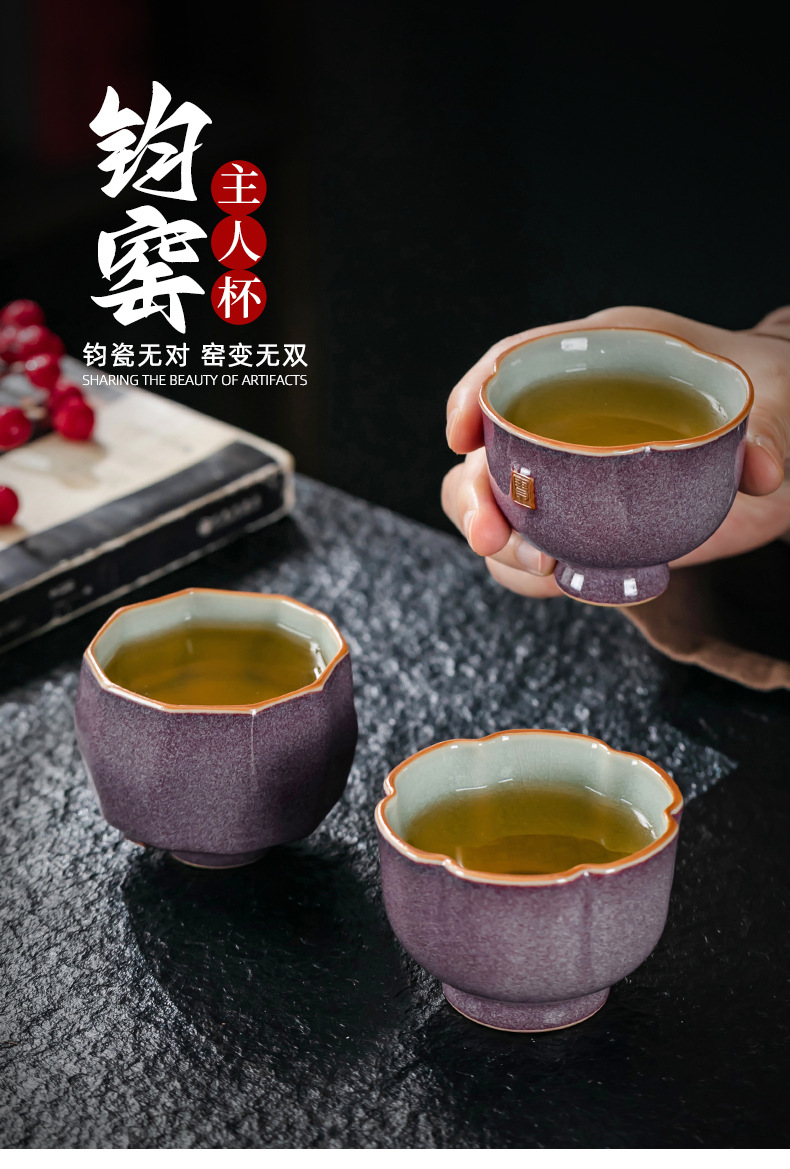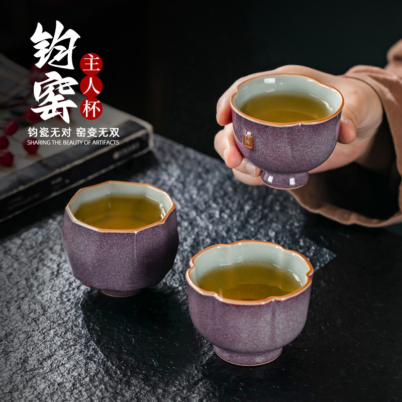 汝钧窑可养钧窑陶瓷功夫小茶杯家用茶碗品茗杯单茶具斗笠主人茶盏