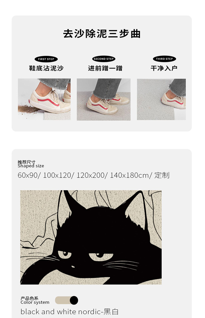 만화 고양이 입구 실크 루프 바닥 매트 가정용 입구 도어 매트 미끄럼 방지 토양 마찰 및 더러운 방지 실크 루프 발 매트