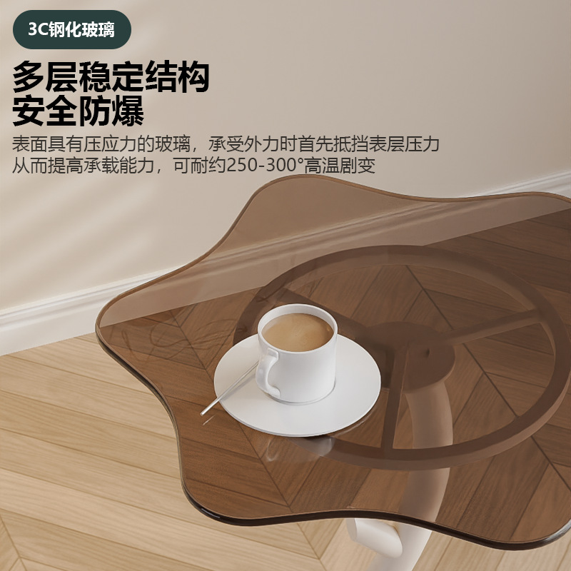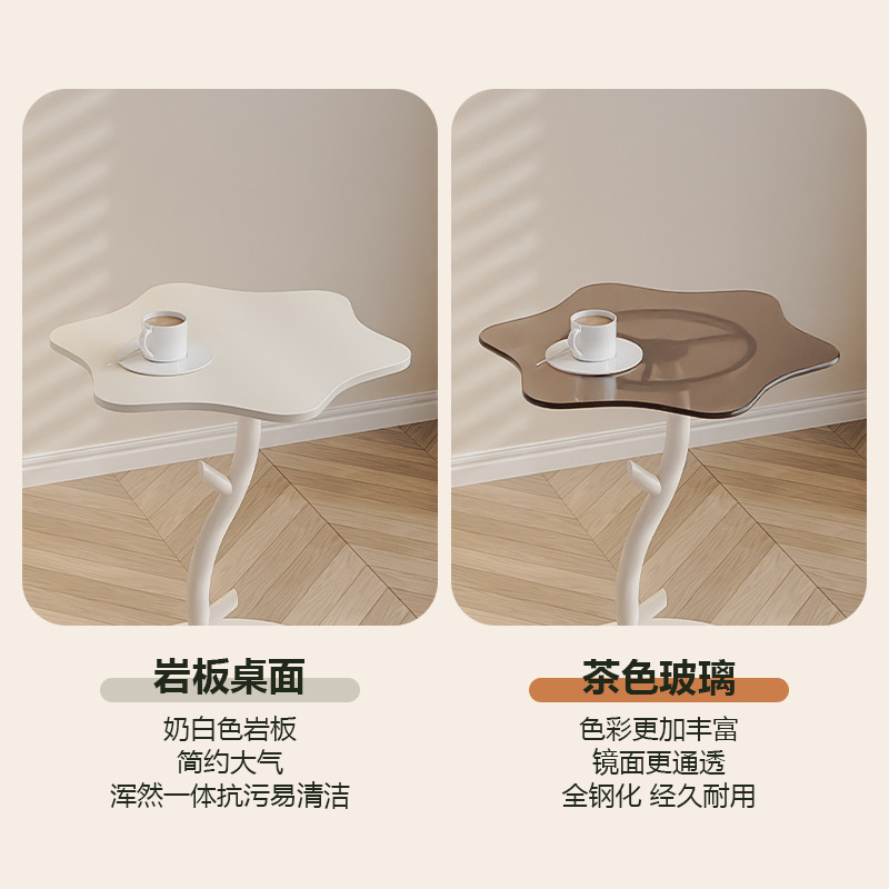 작은 아파트 크림 스타일 철 선인장 코너 테이블 거실 소파 유리 사이드 테이블 사일런트 스타일 크리에이티브 클라우드 커피 테이블