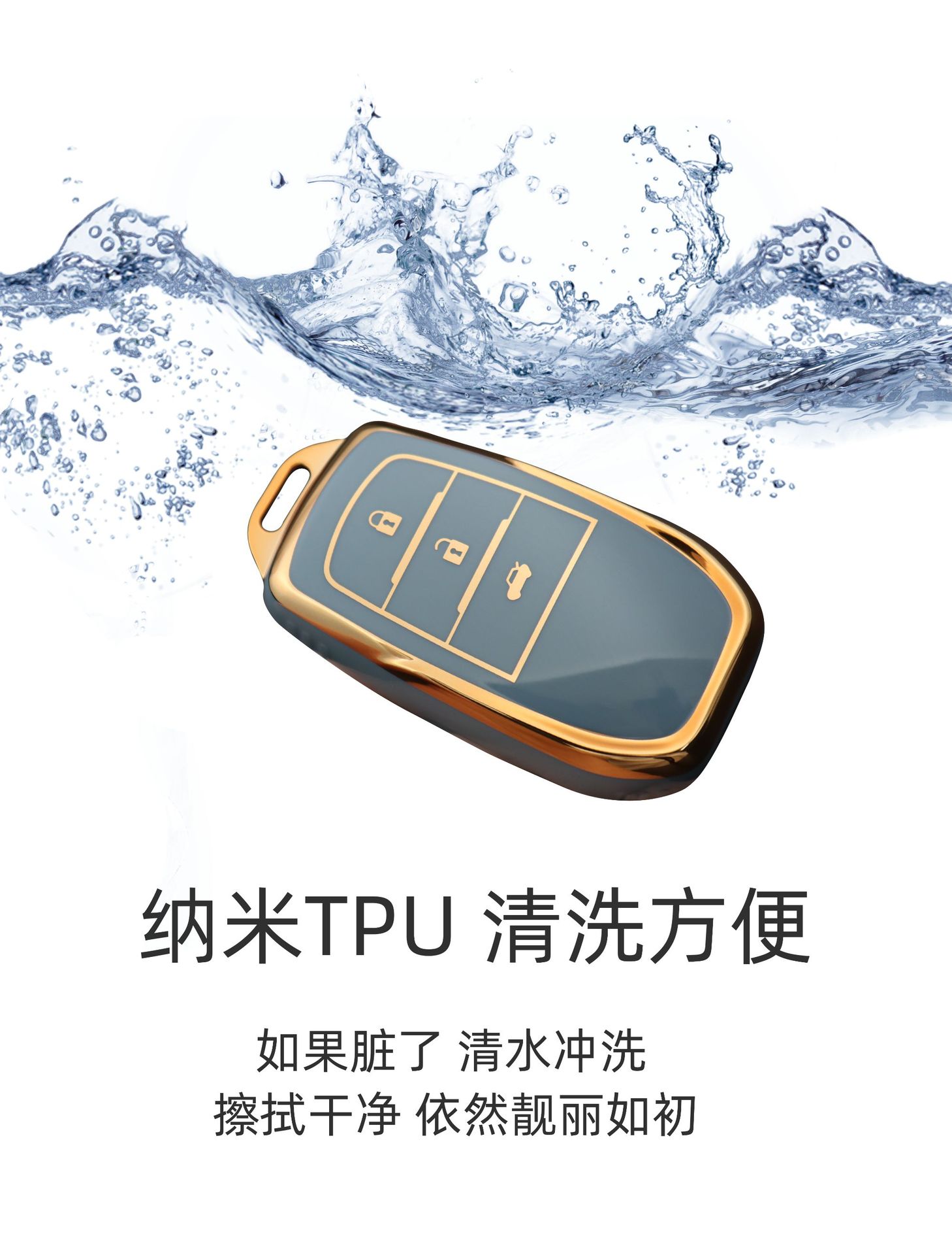3 키 우아한 블랙 + [프놈펜 싱글 쉘] + 하이 퀄리티 TPU 끈 우아한 블랙-[프놈펜 골드 버클]