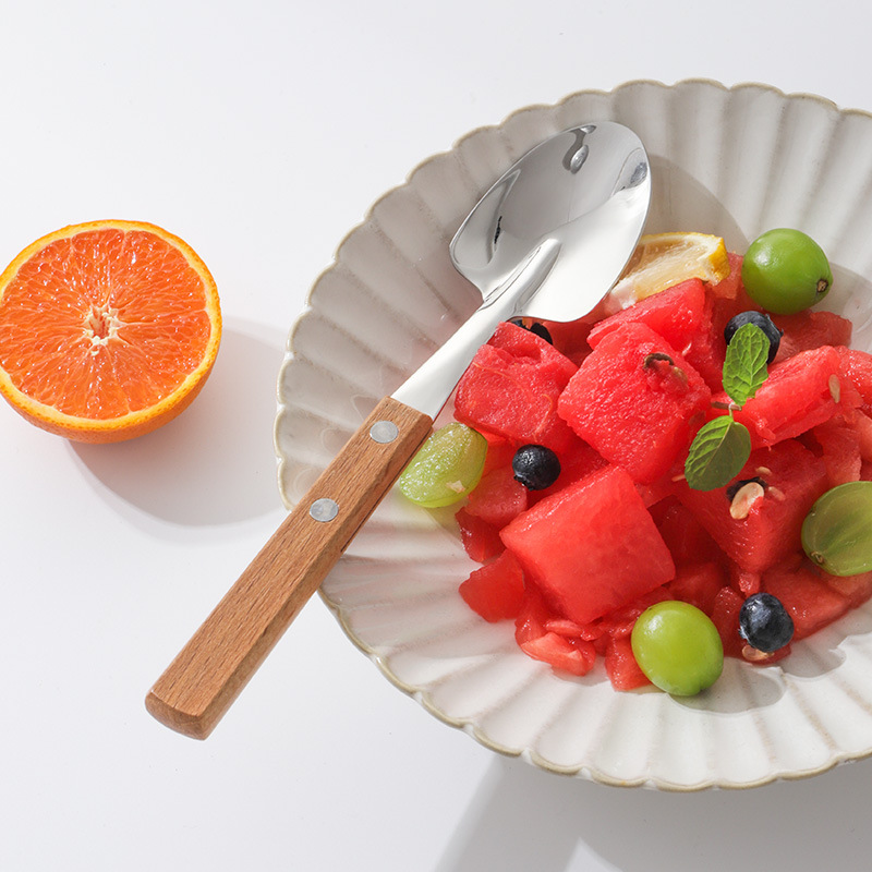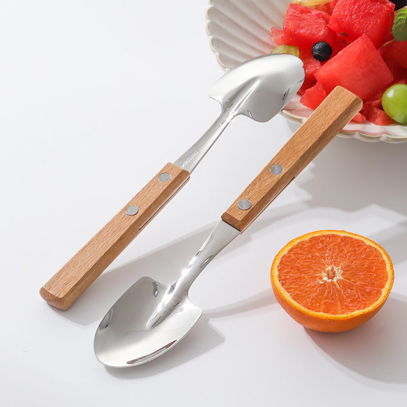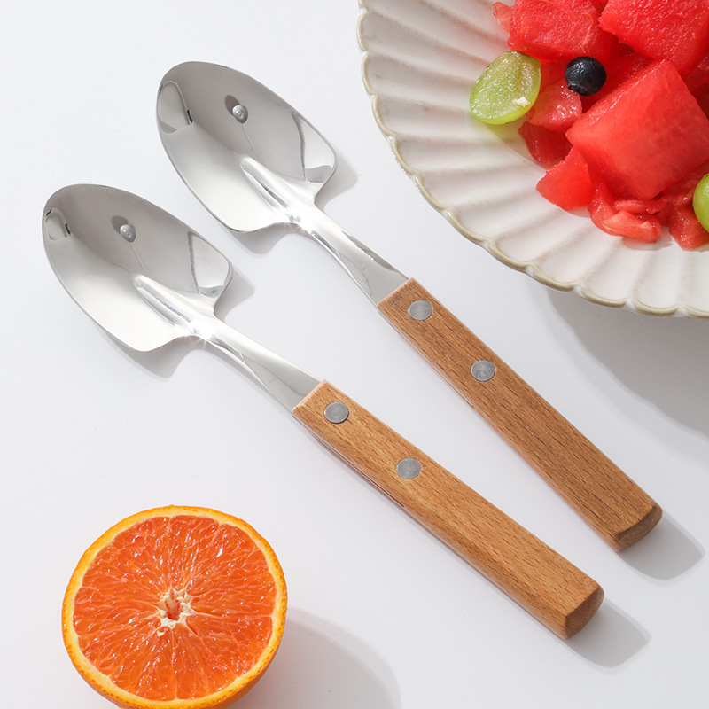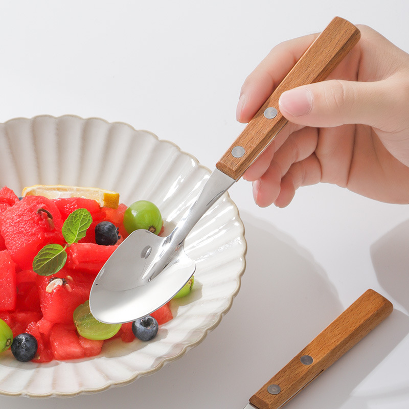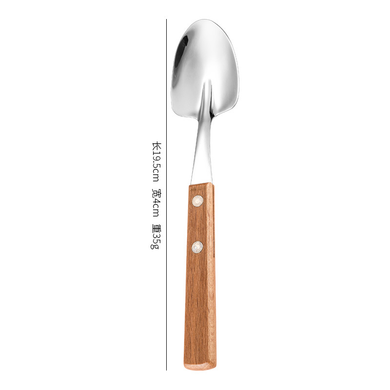 단단한 나무 손잡이 삽 숟가락 일본식 창조적 인 304 산업 삽 숟가락 단단한 나무 클램프 손잡이 숟가락 수박 삽 숟가락 거울
