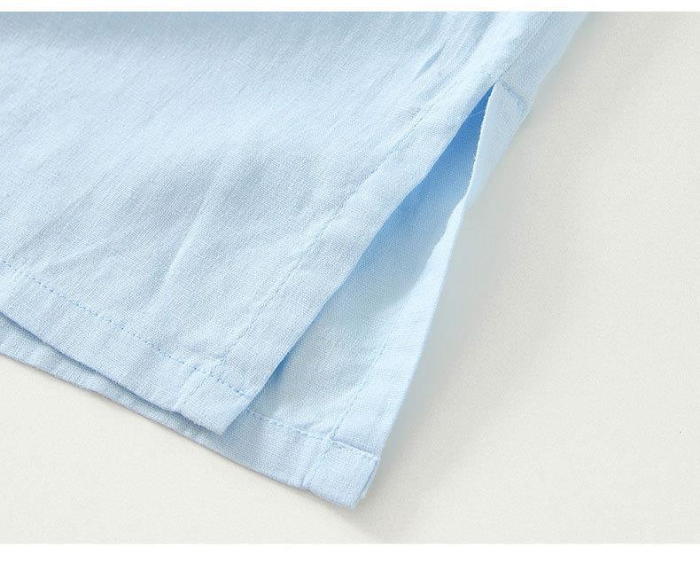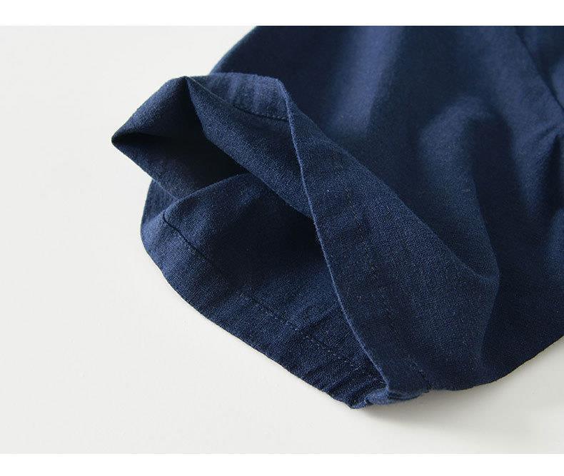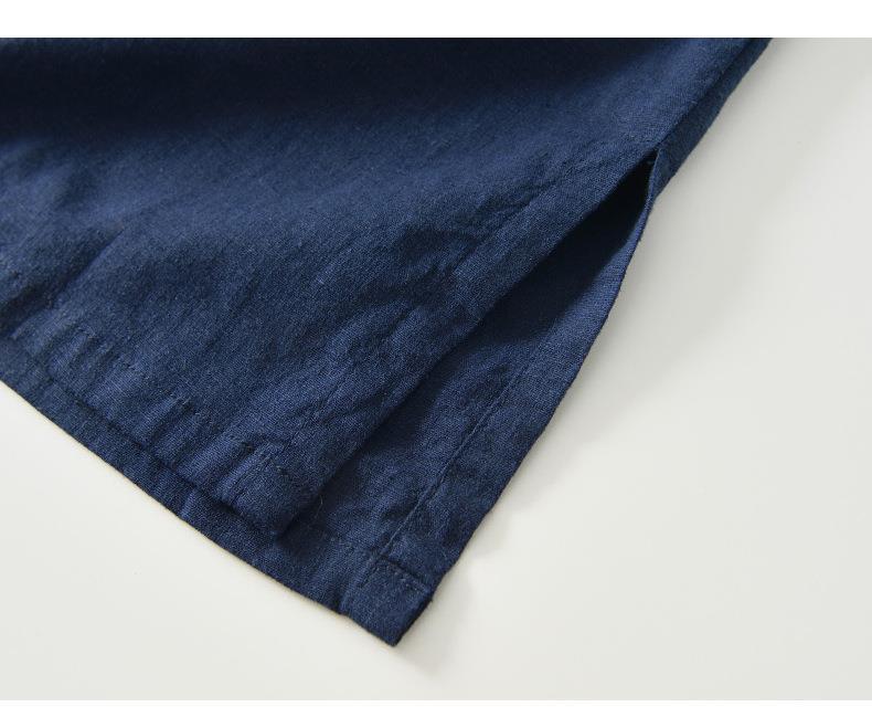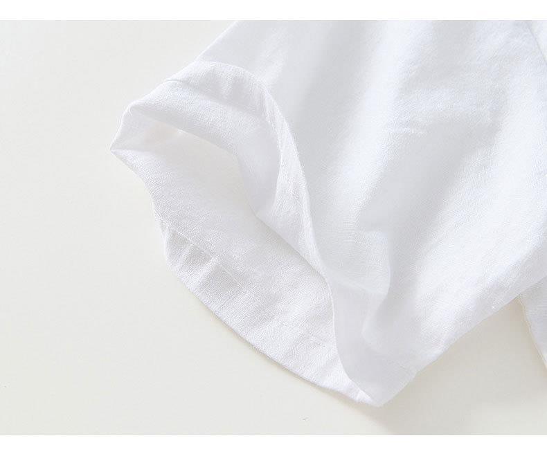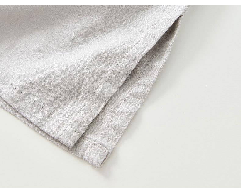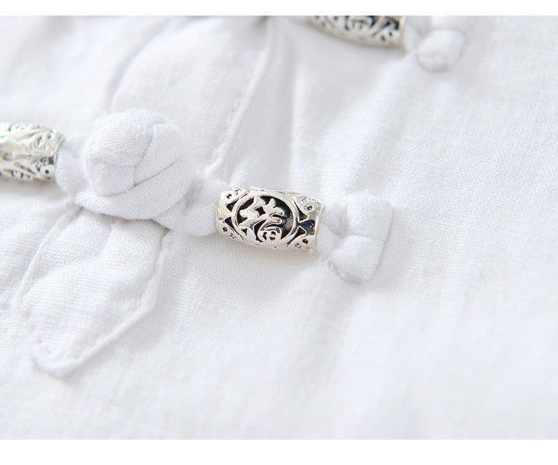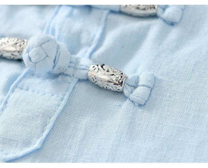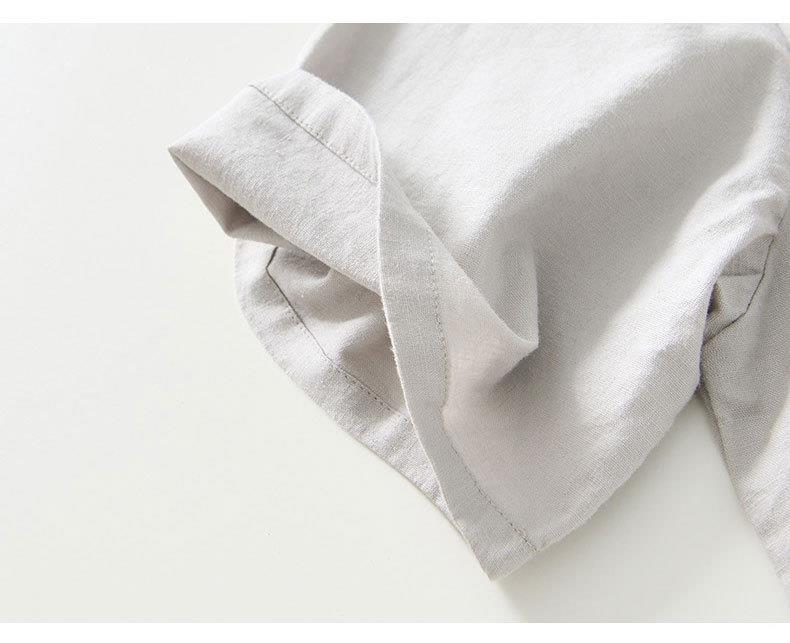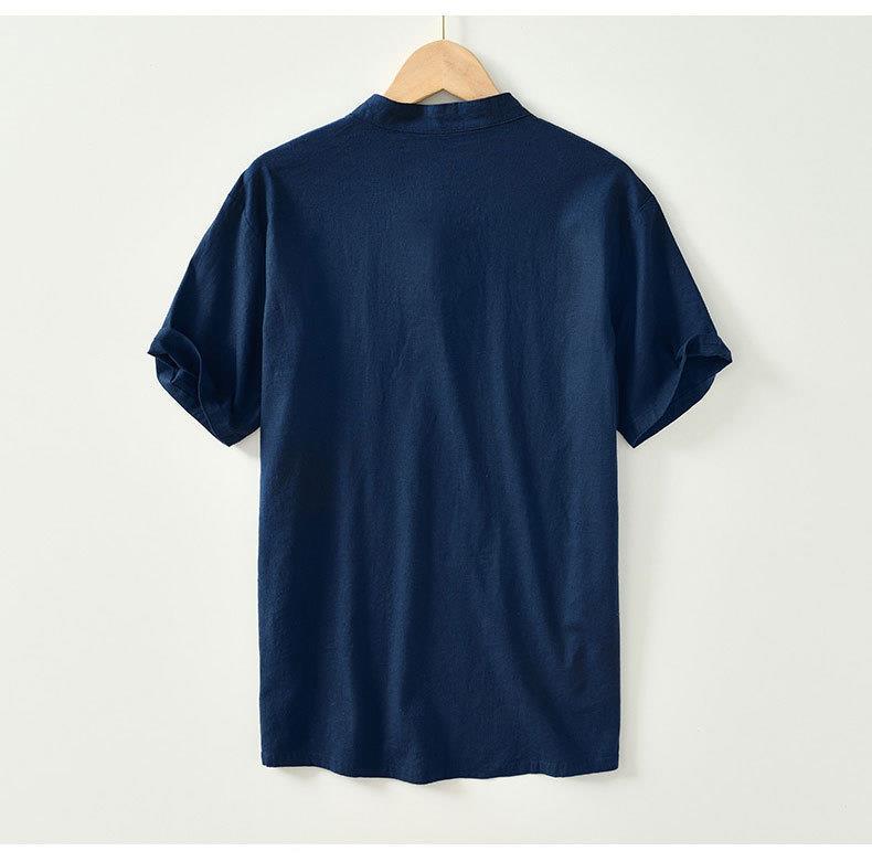 L986 중국식 행운의 단어 구슬 버클 캐주얼 반팔 티셔츠 남성 캐주얼 단색 린넨 재킷 머리카락의 세대