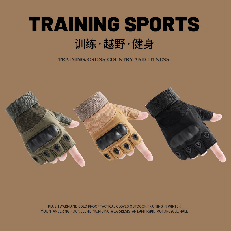하프 핑거 야외 사이클링 등산 군사 훈련 피트니스 손가락없는 전술 겨울 크로스 보더 남성용 반 손가락 장갑