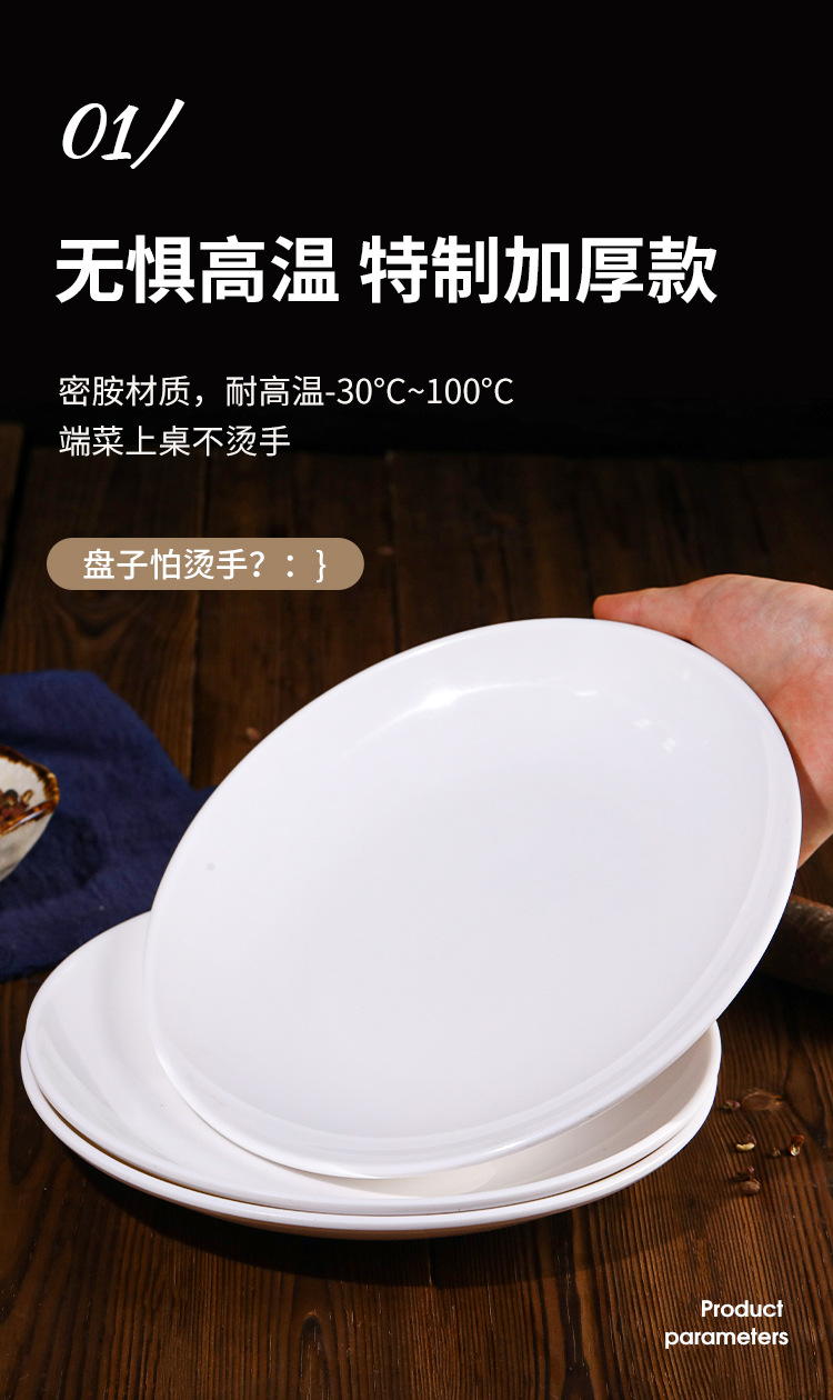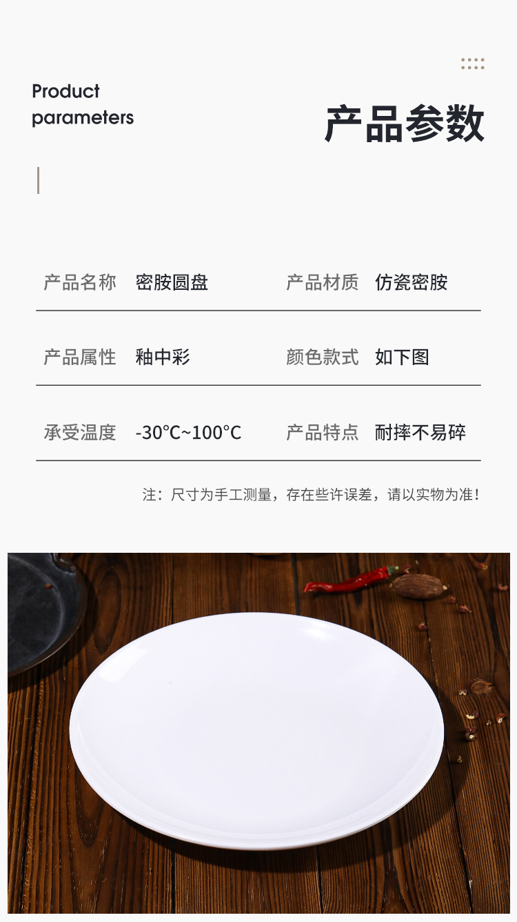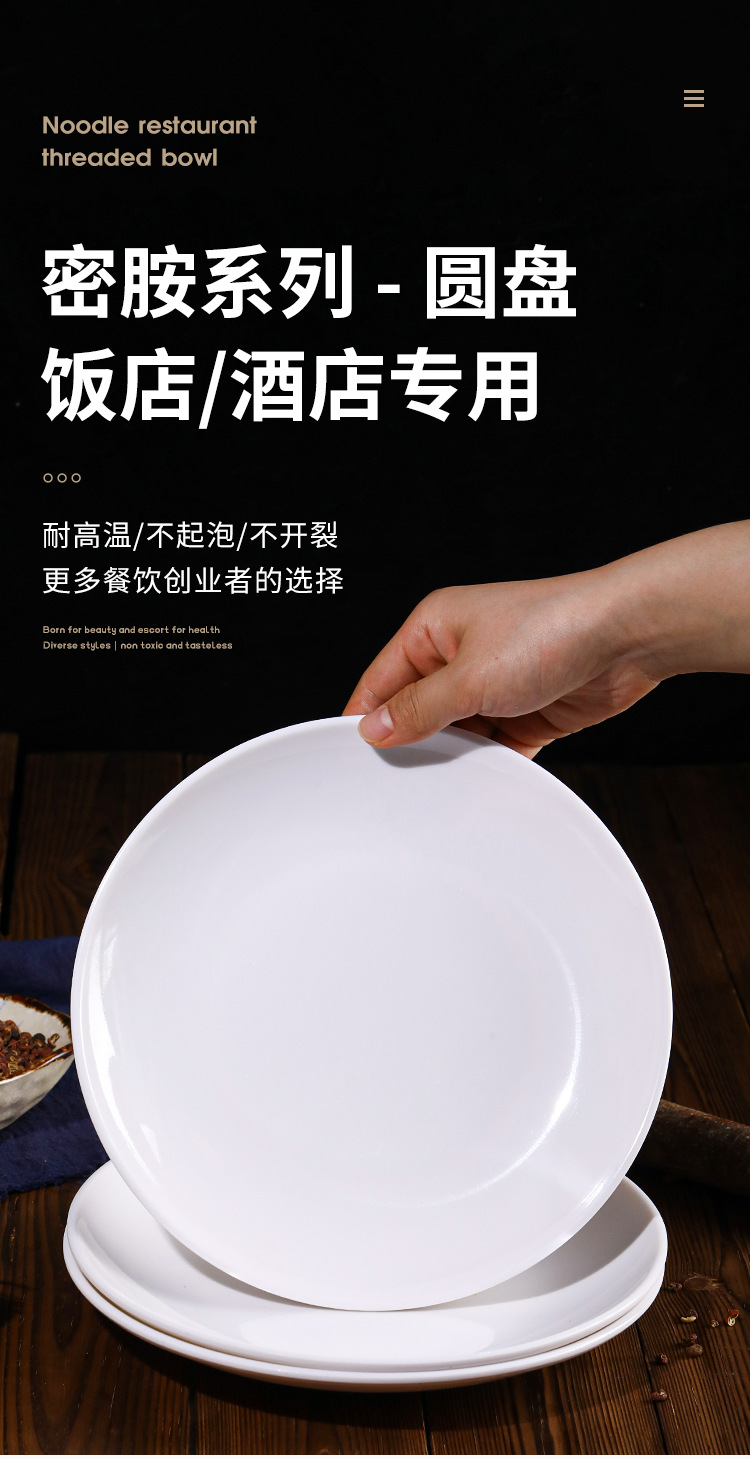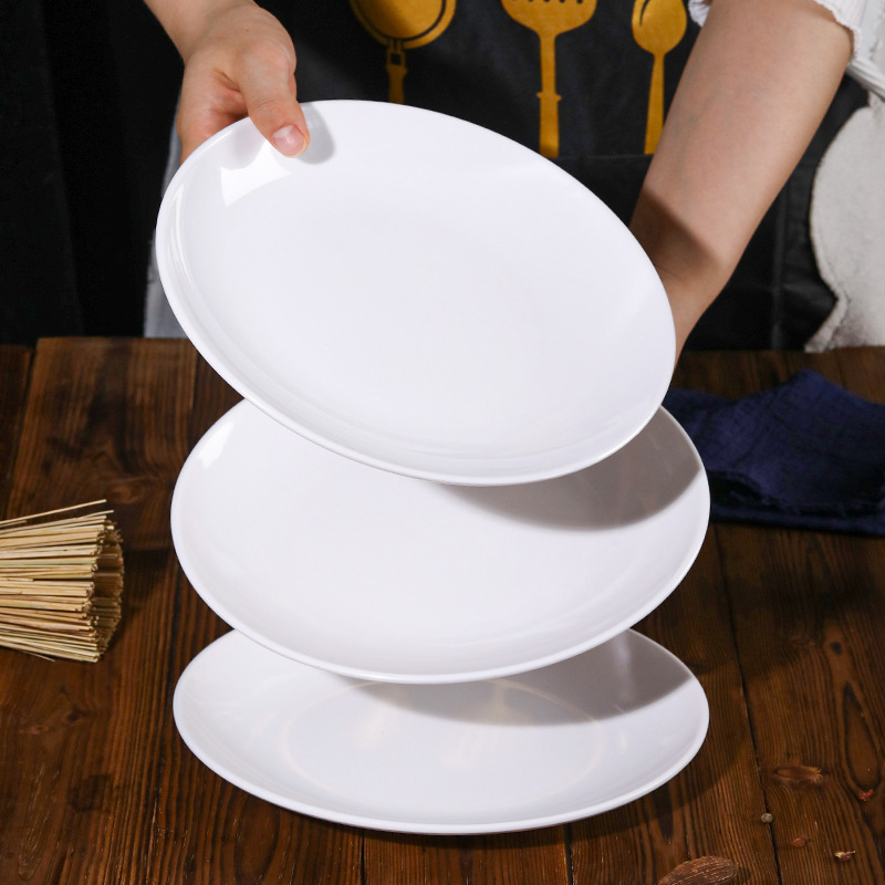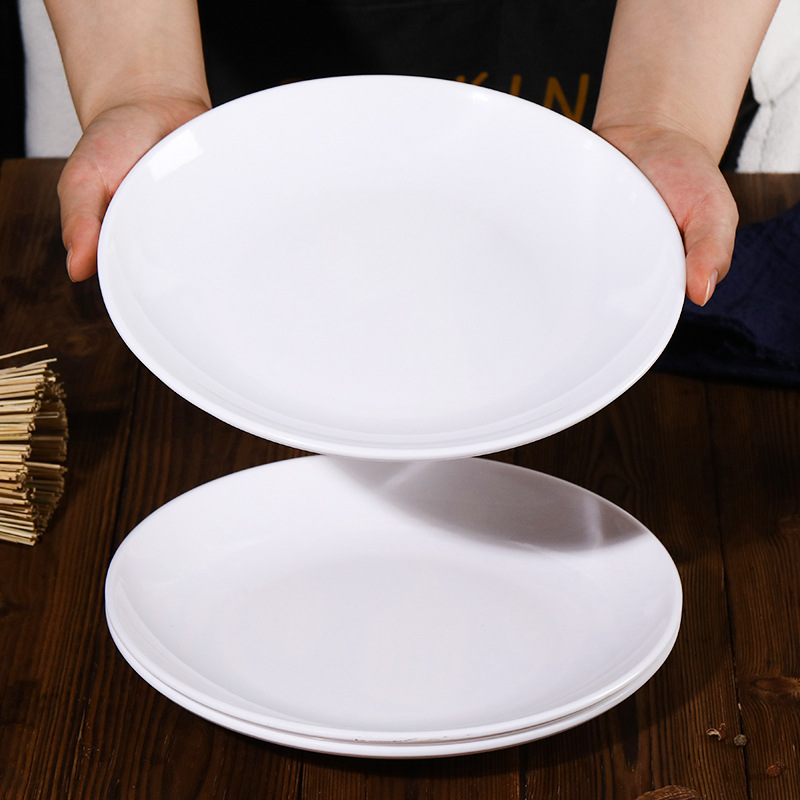 멜라민 식기 디스크 경단 접시 화이트 도자기 플라스틱 덮은 밥 볶음면 접시 레스토랑 시판 양식 접시