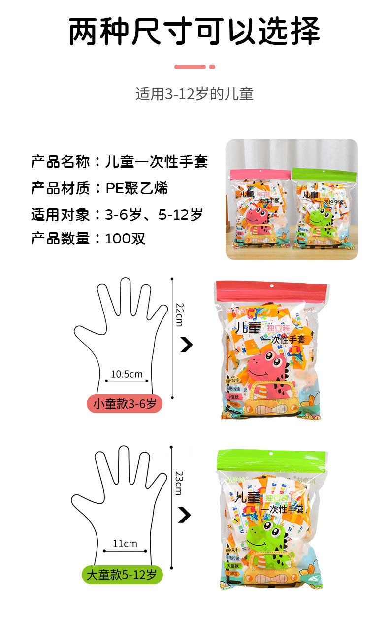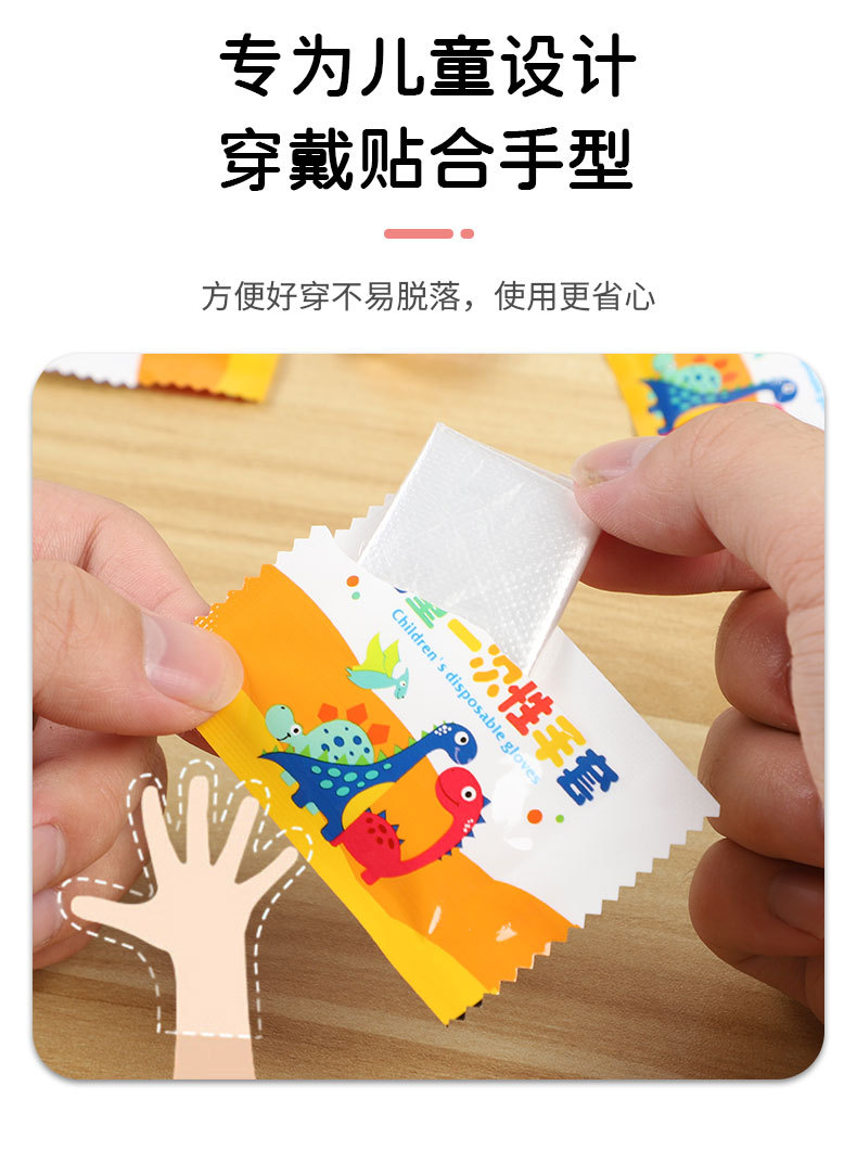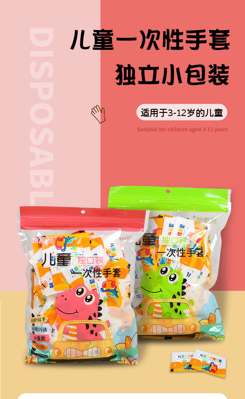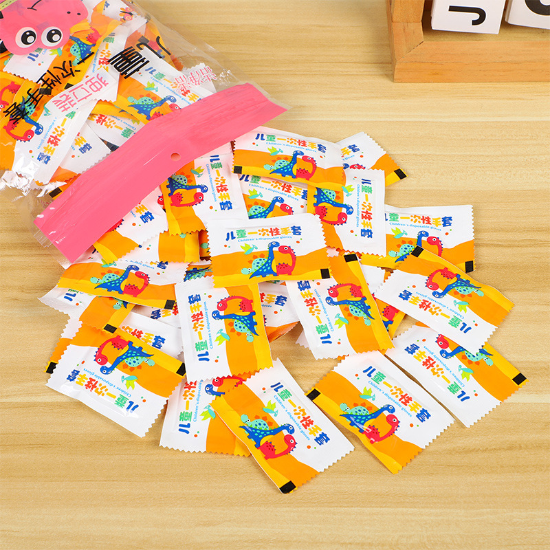 어린이 일회용 장갑 식품 등급 독립 포장 만화 장갑 아이 그리기 PE 장갑 재고 도매