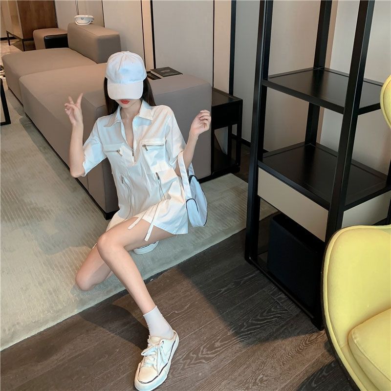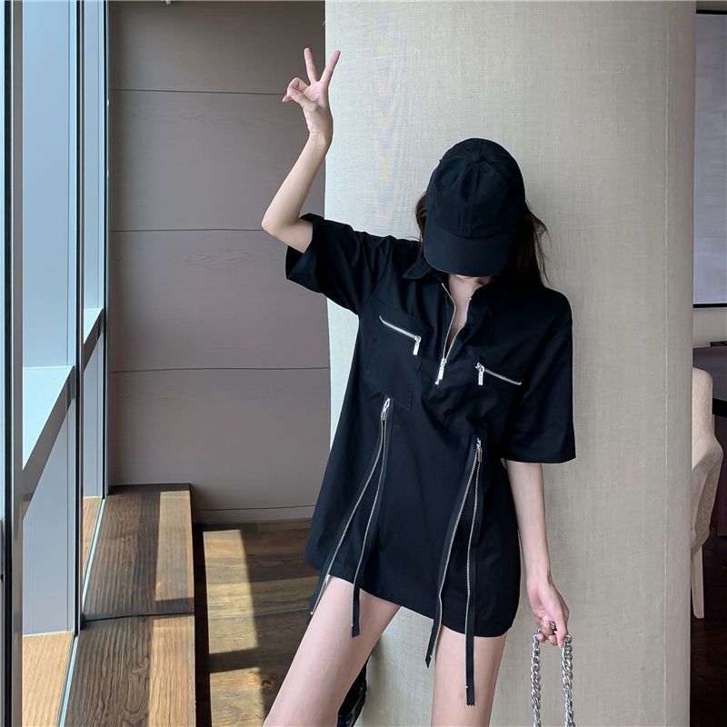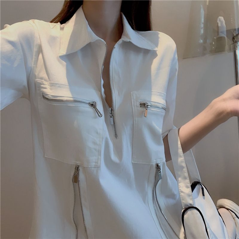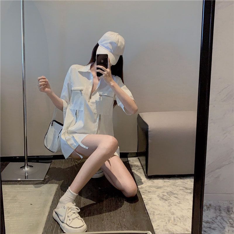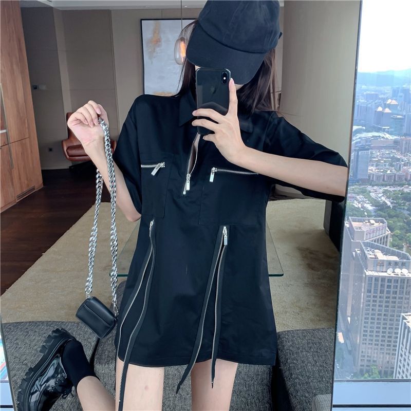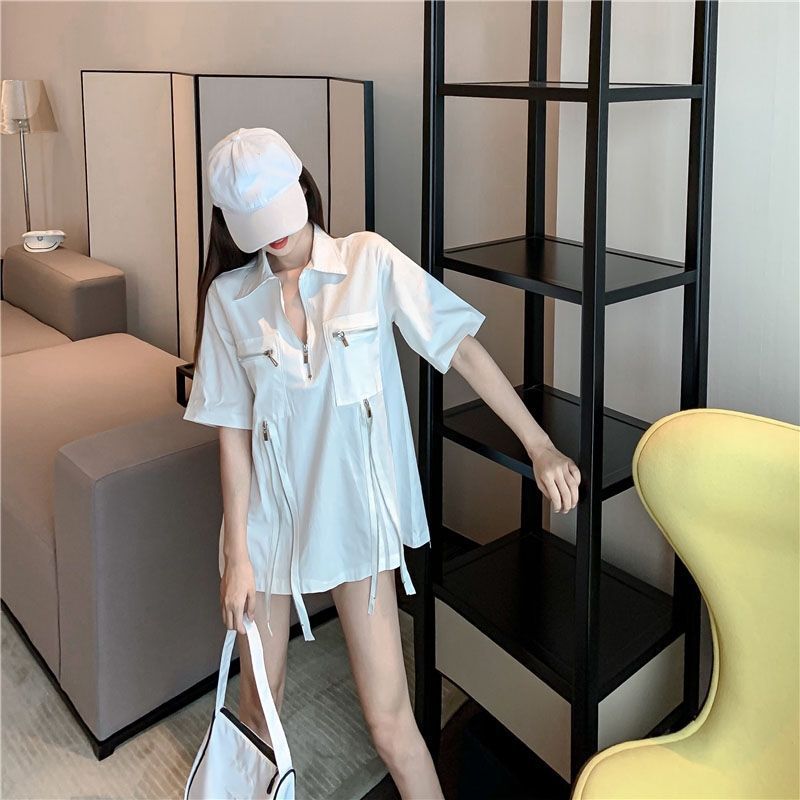2023 여름 새로운 한국 스타일 여성 의류 홍콩 스타일 복고풍 우아한 캐주얼 작업복 느슨한 셔츠 반소매 탑 트렌디