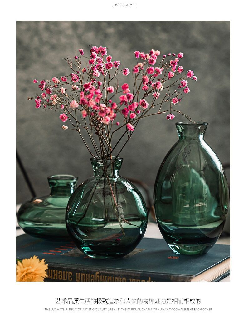 간단한 작은 꽃병 유리 색상 신선한 창조적 인 장식 장식품 수제 꽃다발 꽃 3 피스 장식품 도매