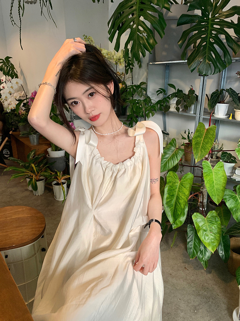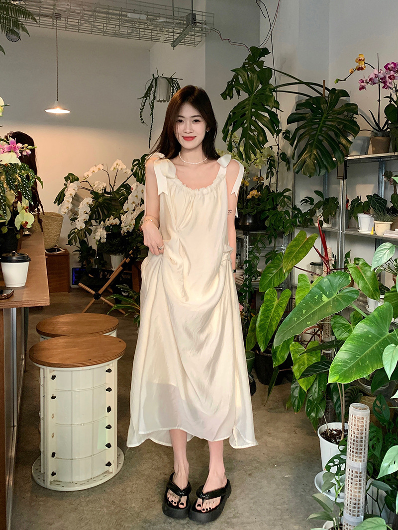 여성을위한 프랑스 스타일 부드러운 스타일 서스펜더 드레스 여름 2025 새로운 해변 휴가 해변 드레스 틈새 디자인 롱 스커트