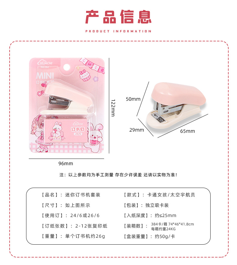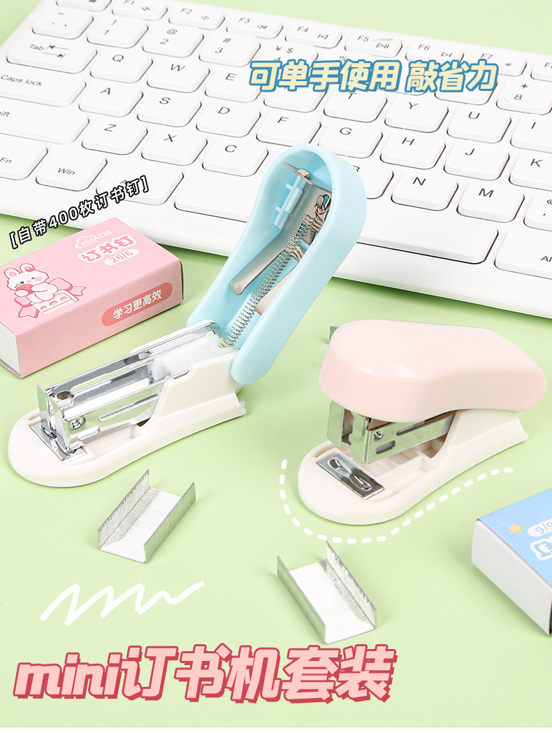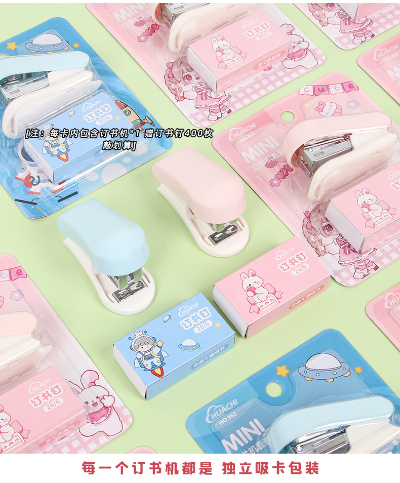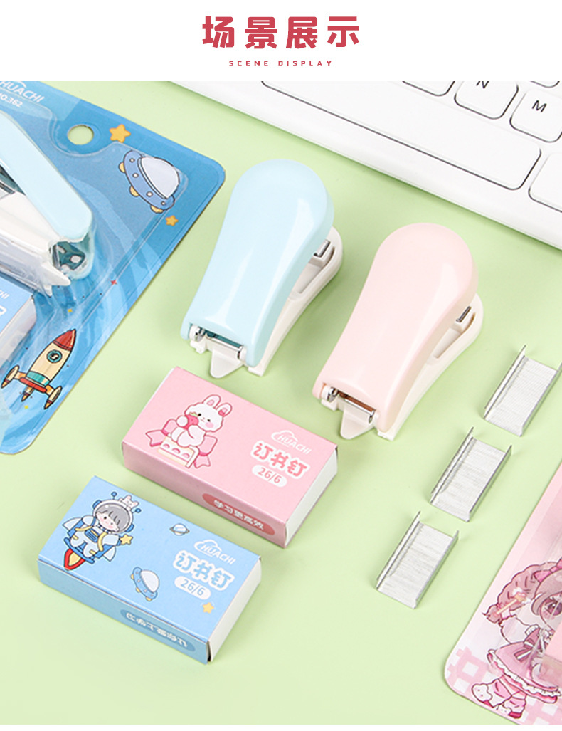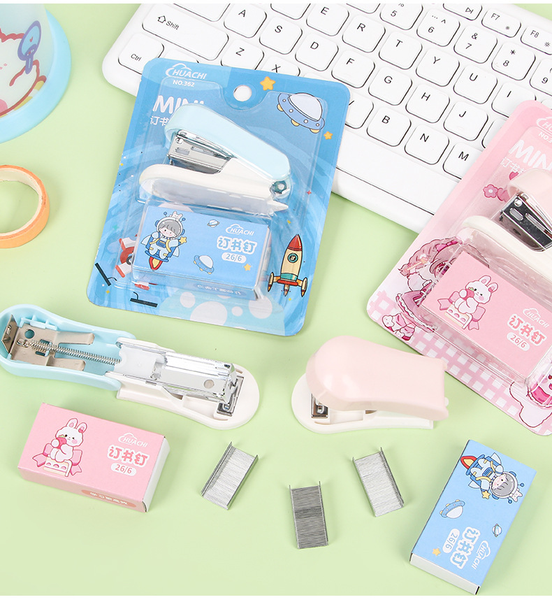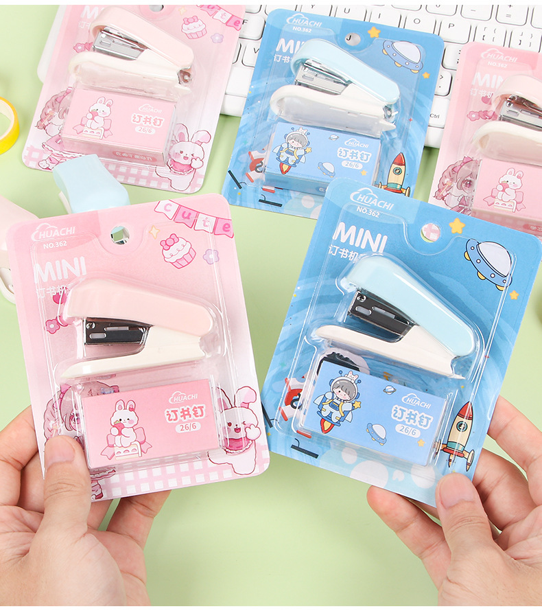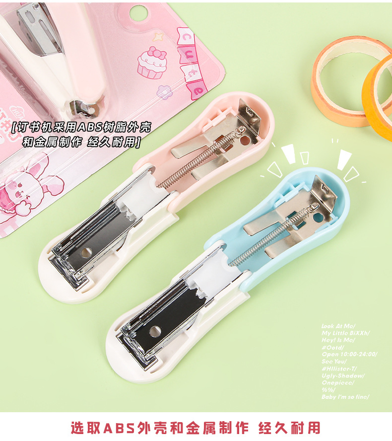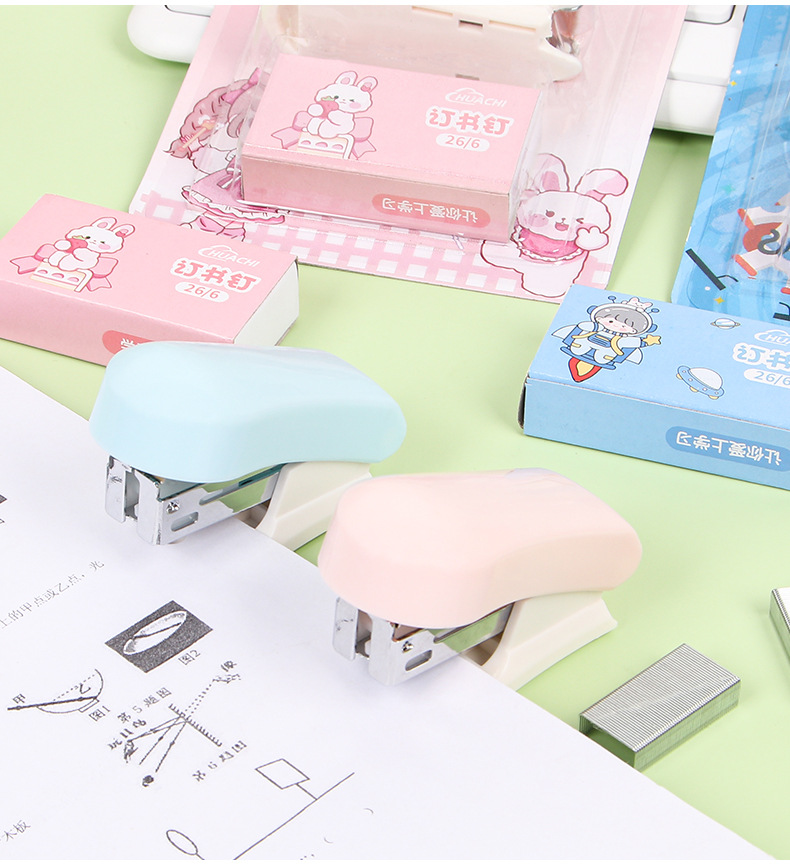 귀여운 만화 미니 스테이플러 세트 학생 휴대용 스테이플러 작은 바인딩 기계 사무실 용품 도매