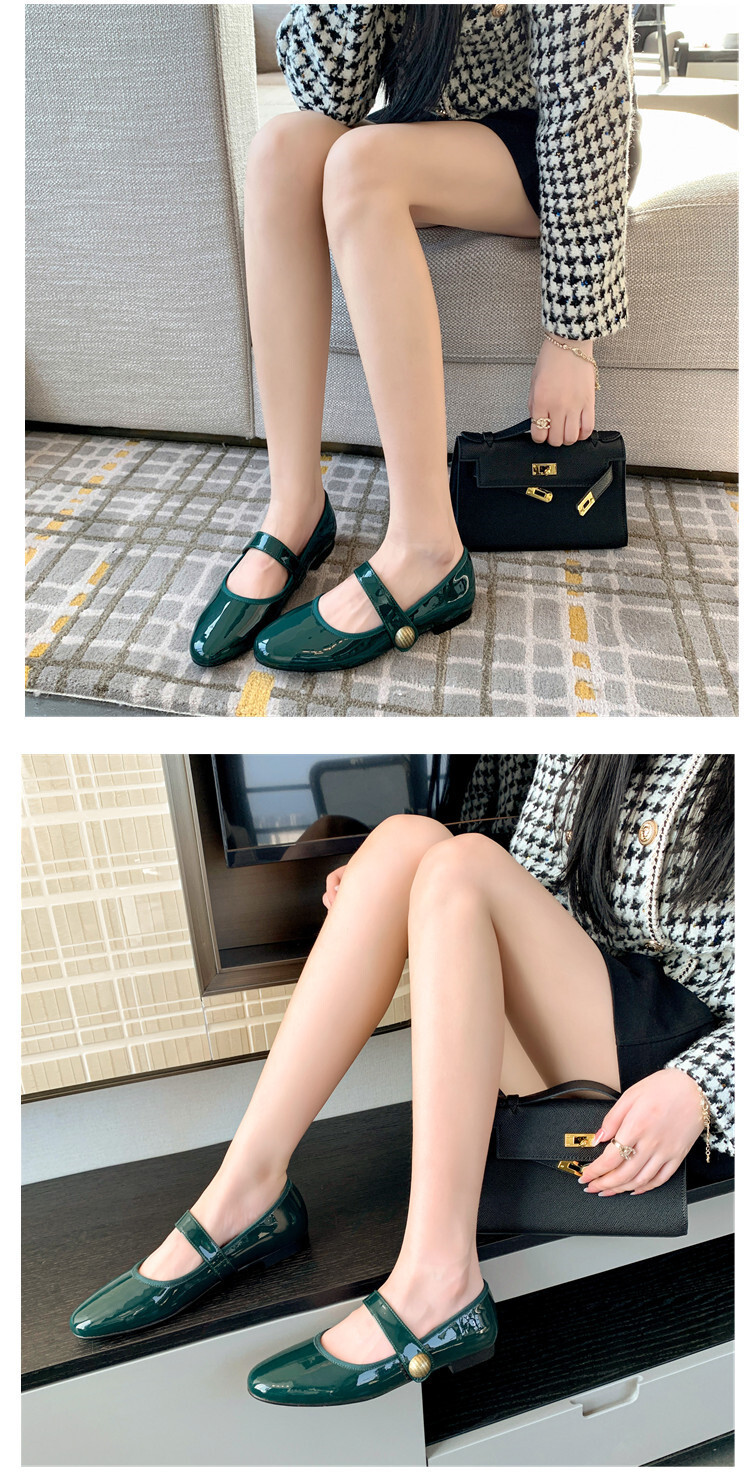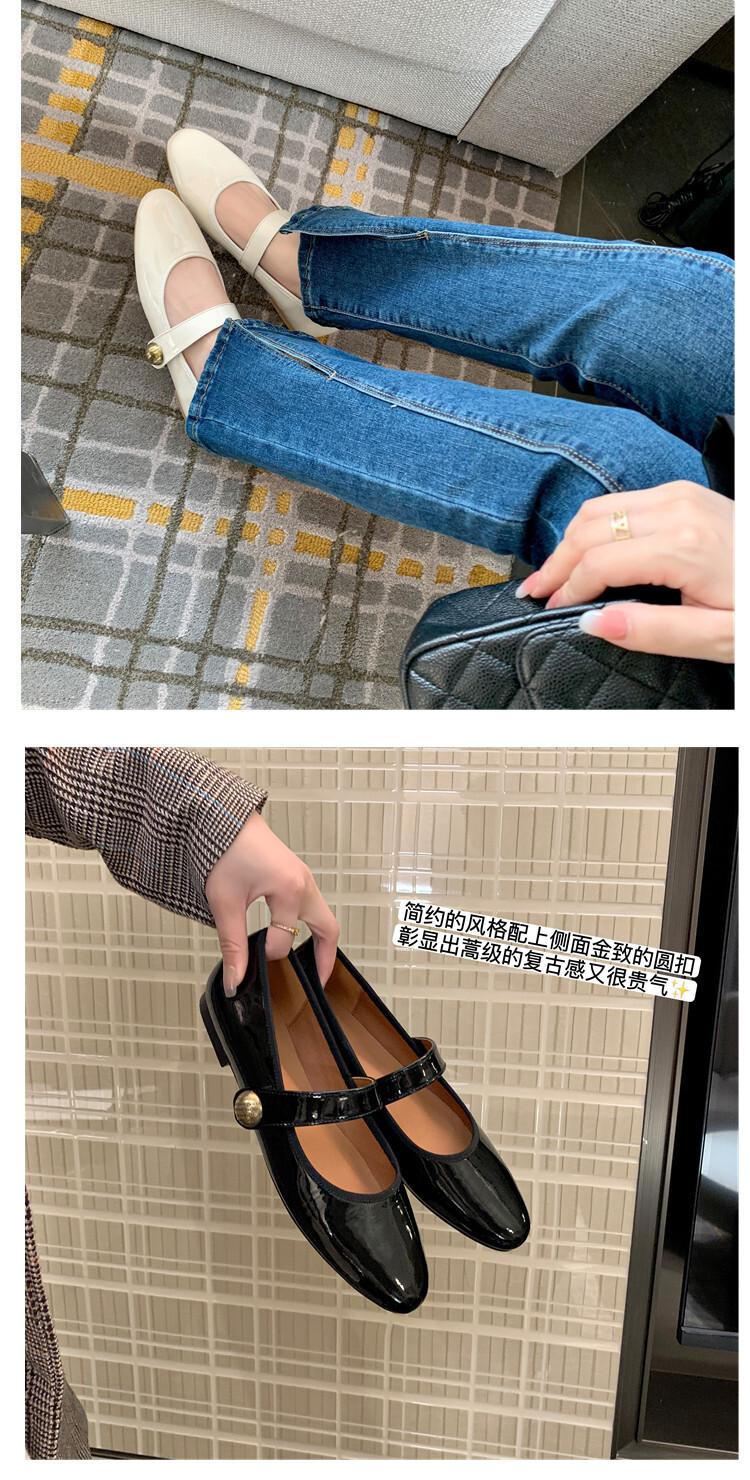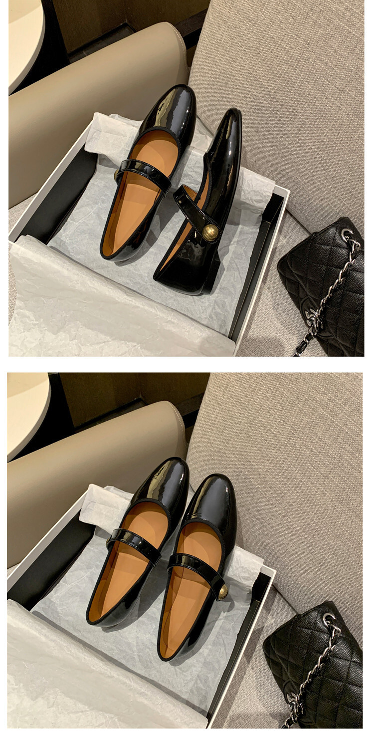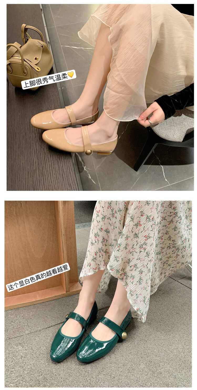 항상 단색 작은 가죽 신발 여성용 2023 봄 새로운 플랫 로우 힐 신발 모든 매치 메리 제인 신발