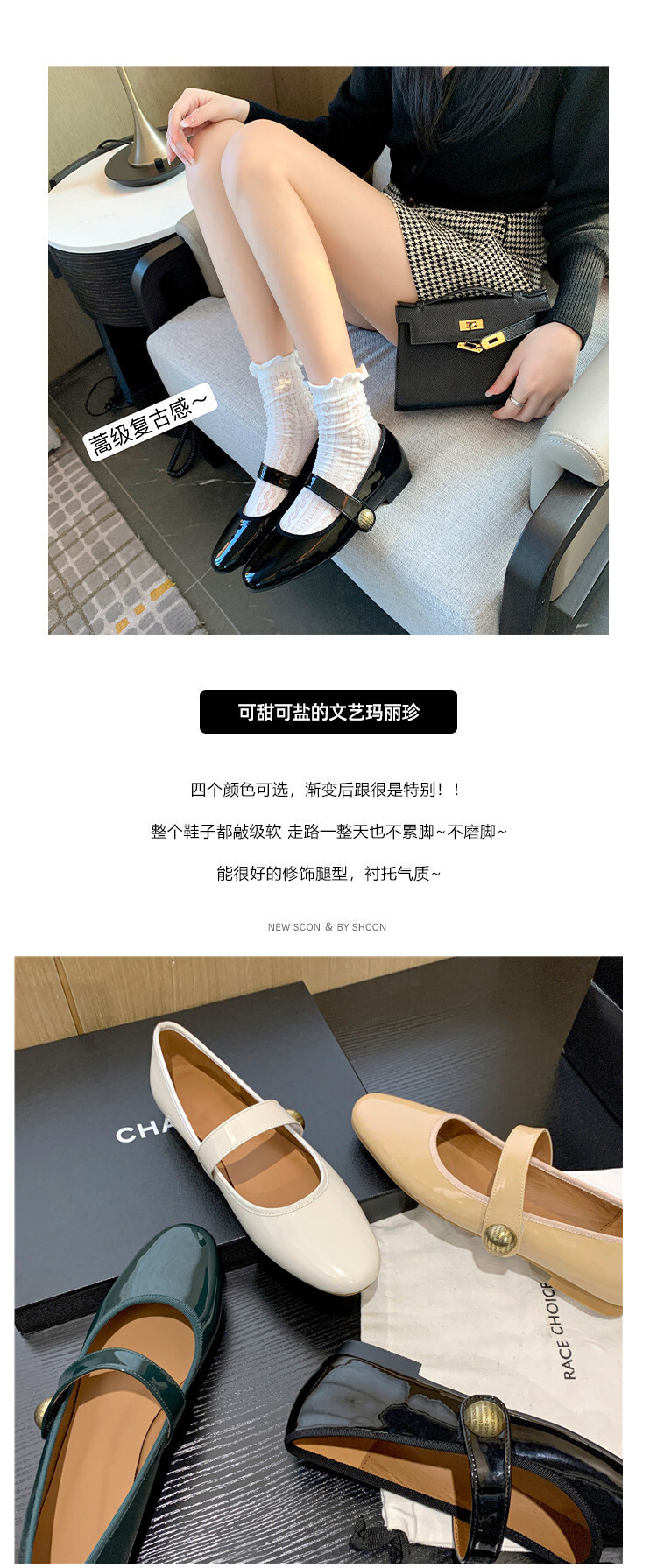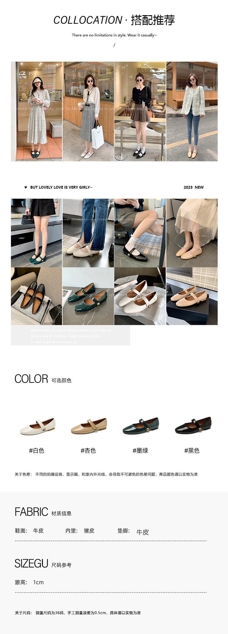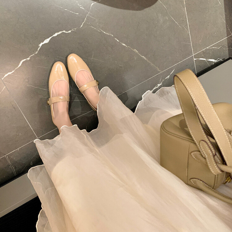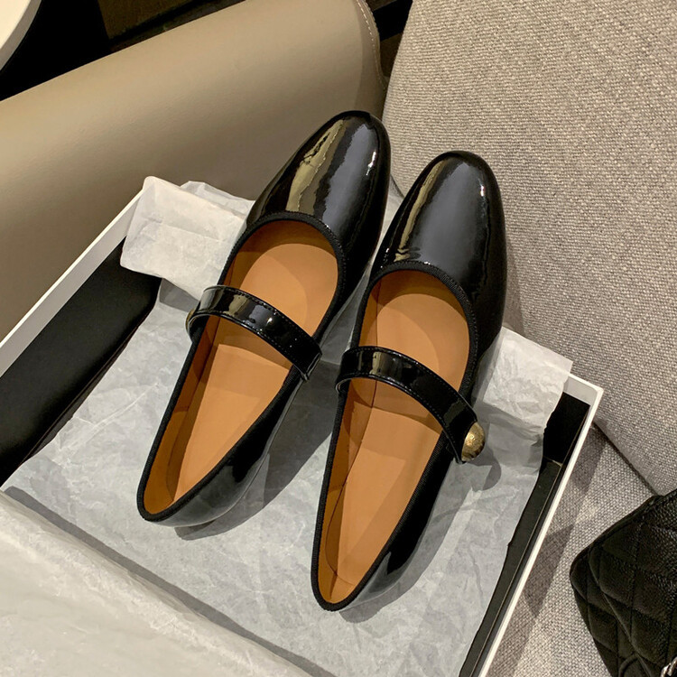 항상 단색 작은 가죽 신발 여성용 2023 봄 새로운 플랫 로우 힐 신발 모든 매치 메리 제인 신발