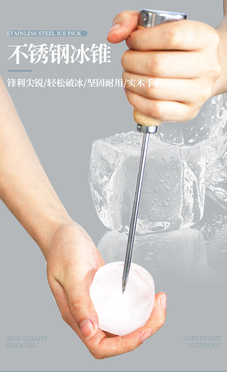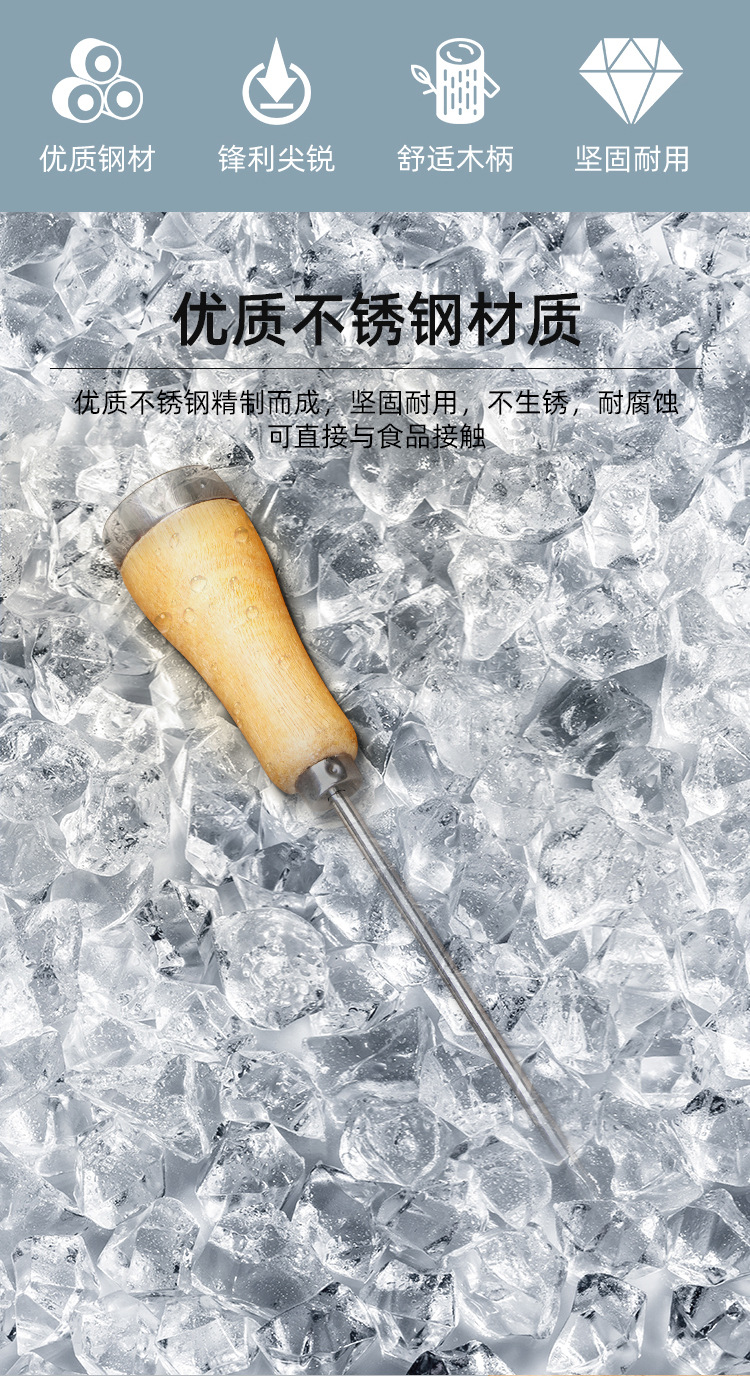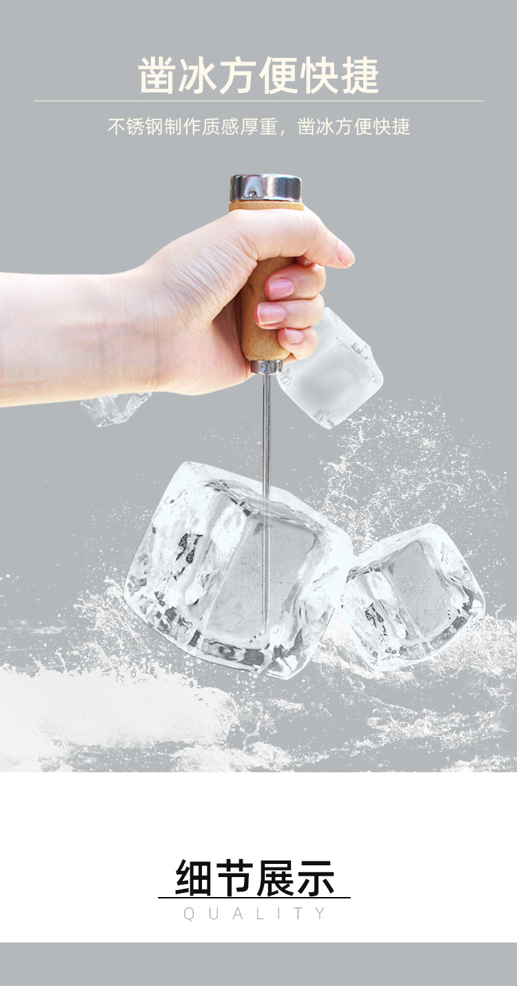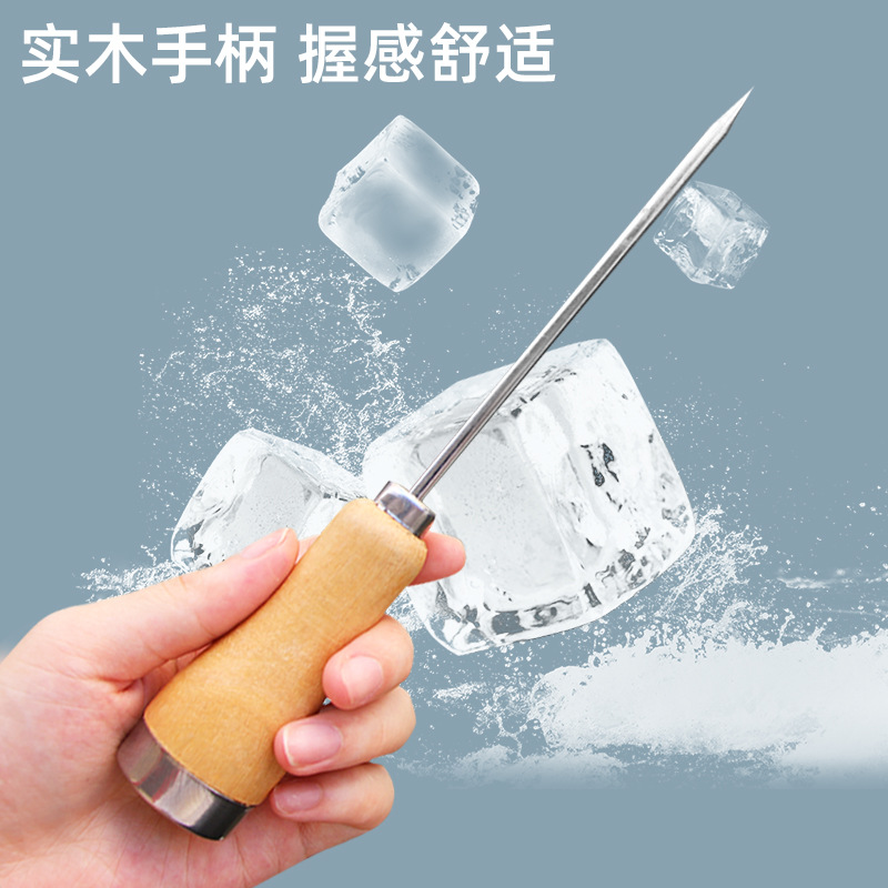 단단한 나무 손잡이 긴 아이스 콘 아이스 볼 냉장고 제빙 일본 바텐더 바 얼음 머리핀 제빙 콘