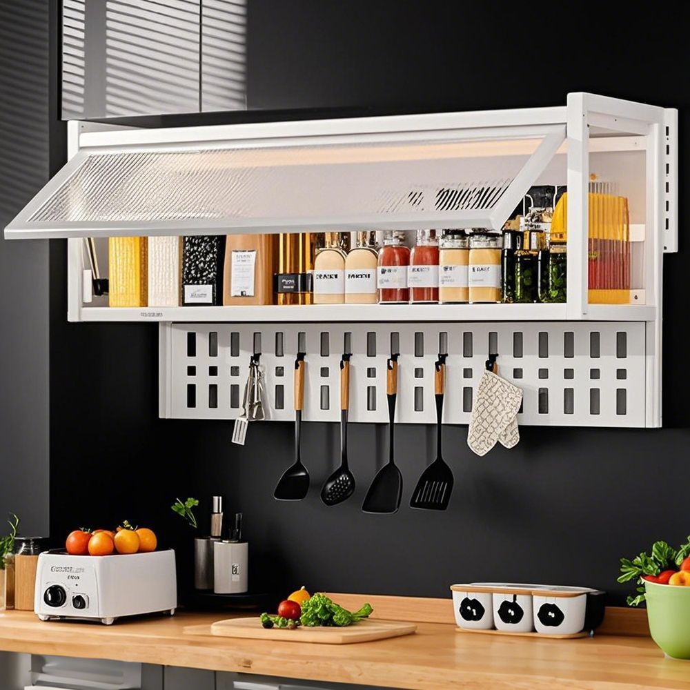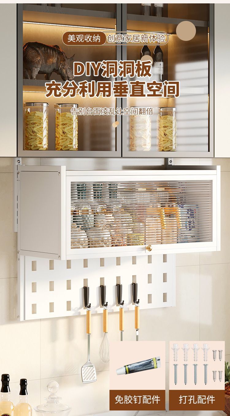 무타공 주방 수납선반 다기능 벽걸이형 전자레인지 방진 수납선반 조미료 도구 냄비 걸이장 아래