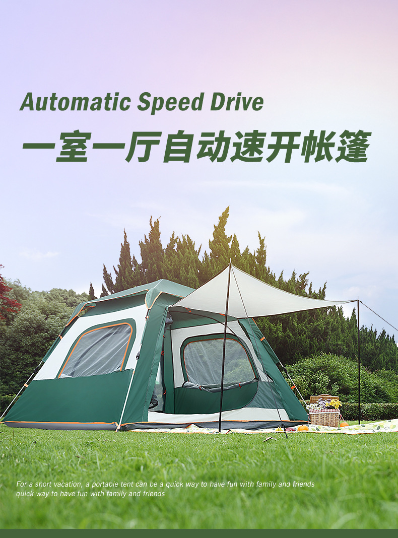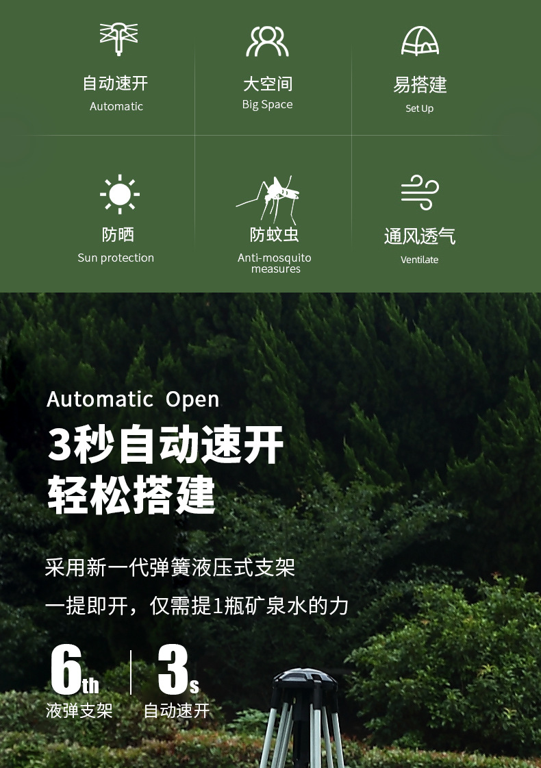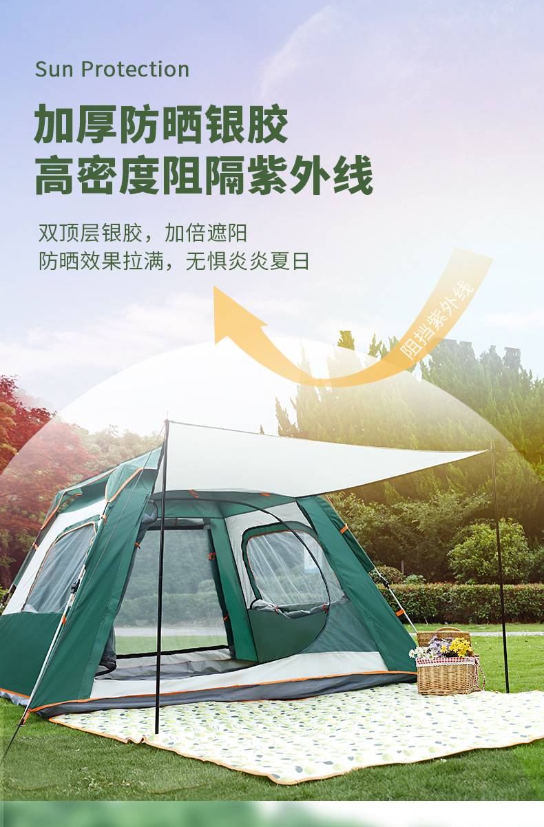 大空间帐篷防雨遮阳便携收纳简易自动帐银胶隔热户外公园旅行露营
