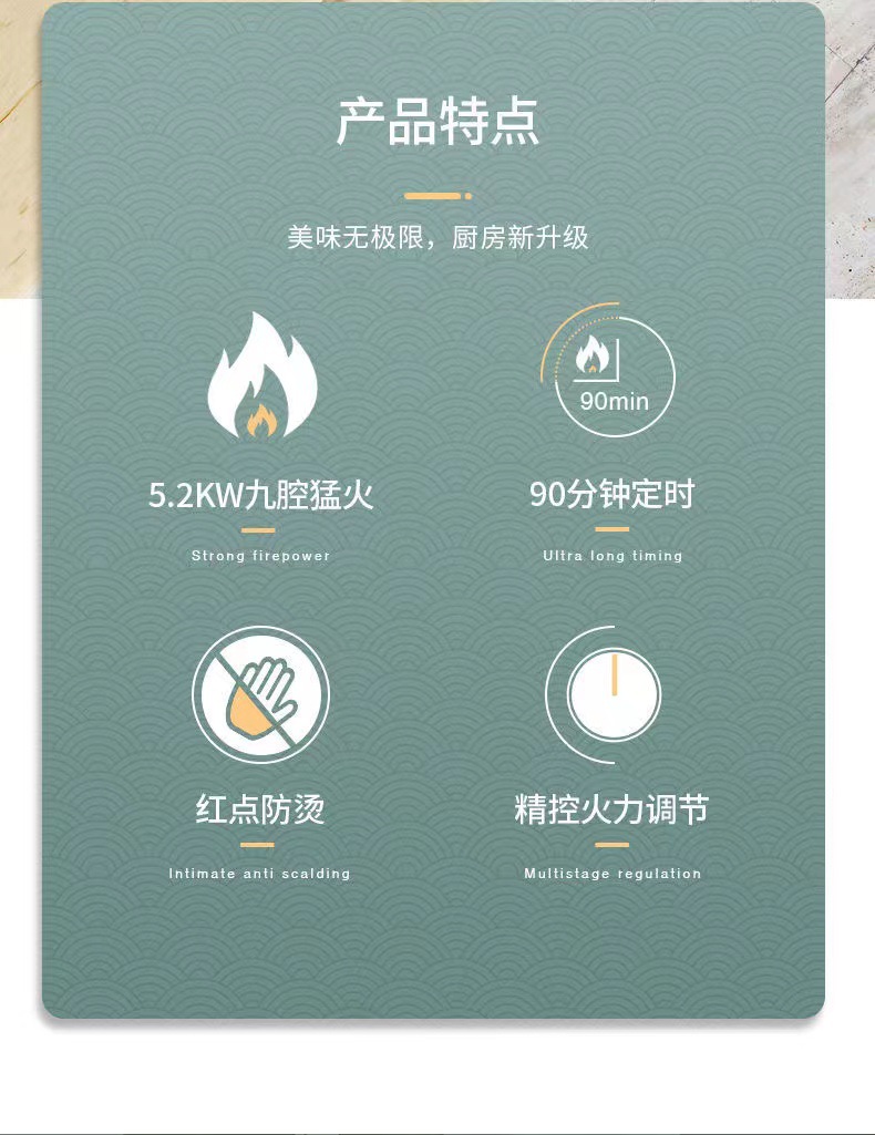 스테인레스 스틸 양면 9 캐비티 화재 + 타이밍 + 전기 디스플레이 + 화상 방지