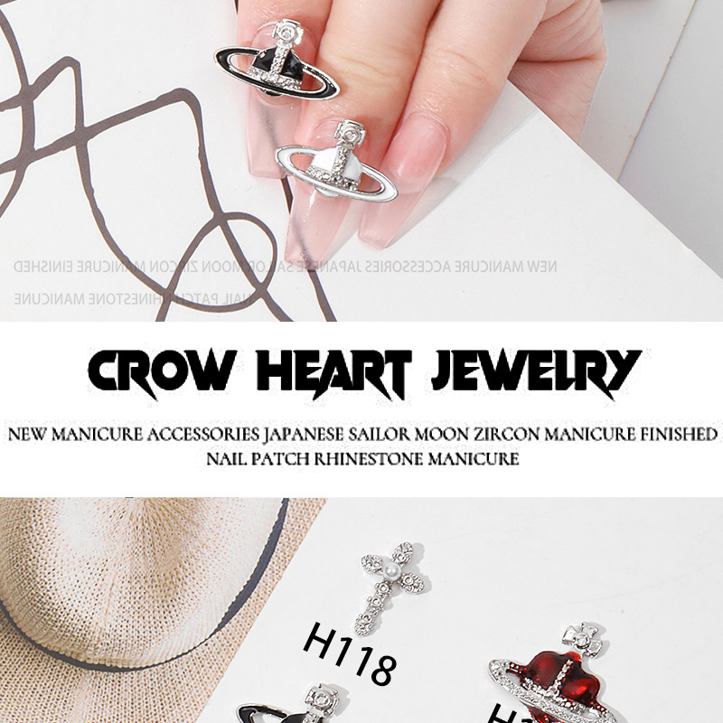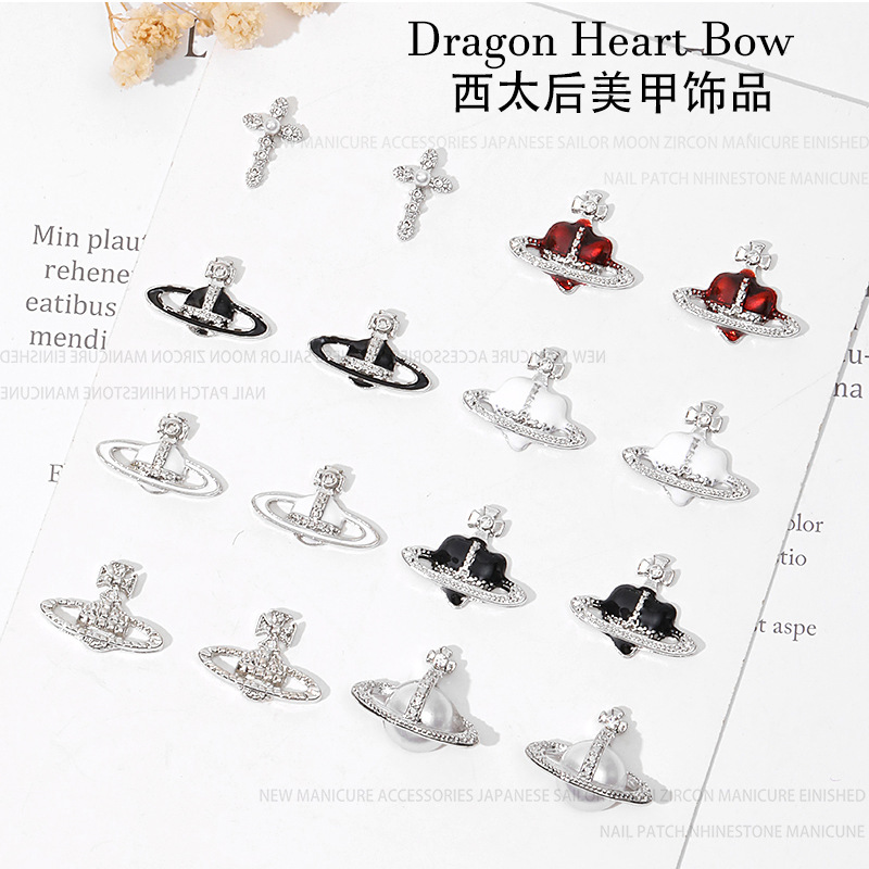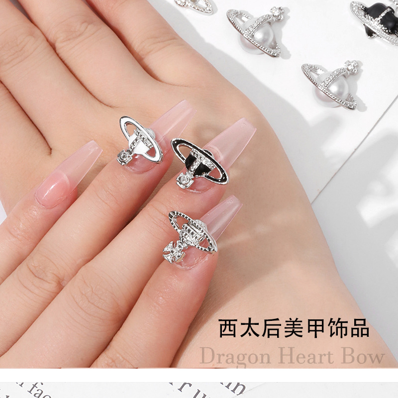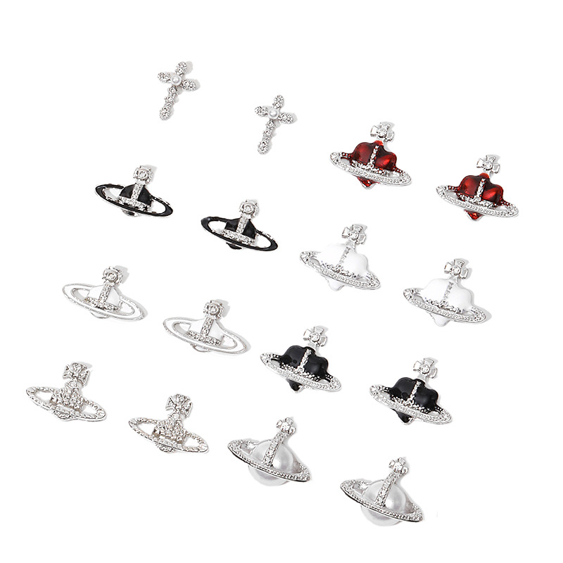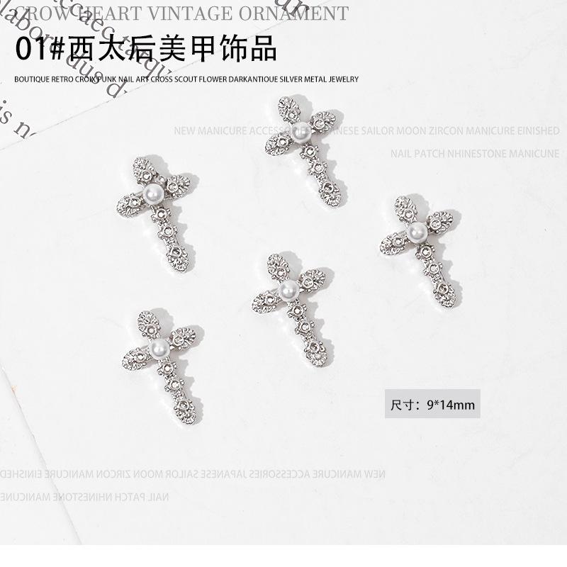 진주 웨스트 퀸 네일 아트 장식품 레트로 합금 네일 다이아몬드 흙 행성 다크 크로스 메탈 네일 액세서리