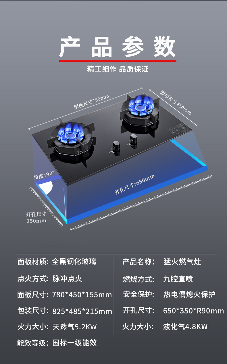 가정용 주방용 전면흡입 강화화력 천연가스/가스레인지 이중레인지 가정용 에너지 절약형 가스레인지 도매 판매