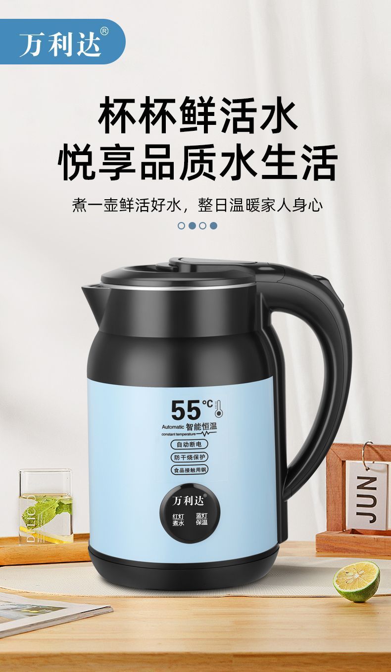 새로운 전기 주전자, 전자동 지능형 전원 차단 기능이 있는 가정용 이중 보온 일체형 주전자