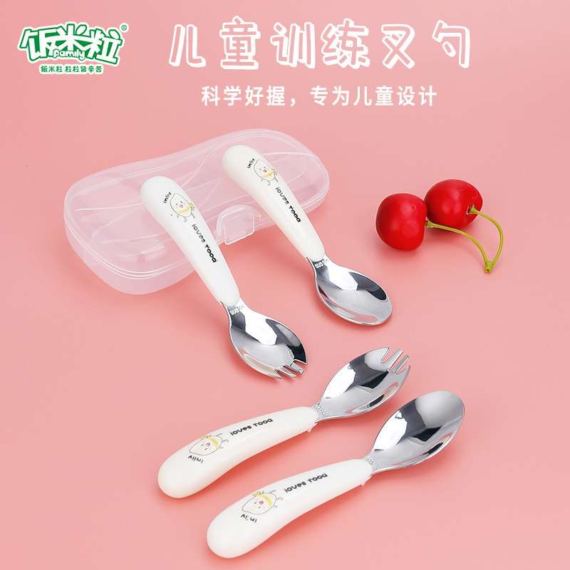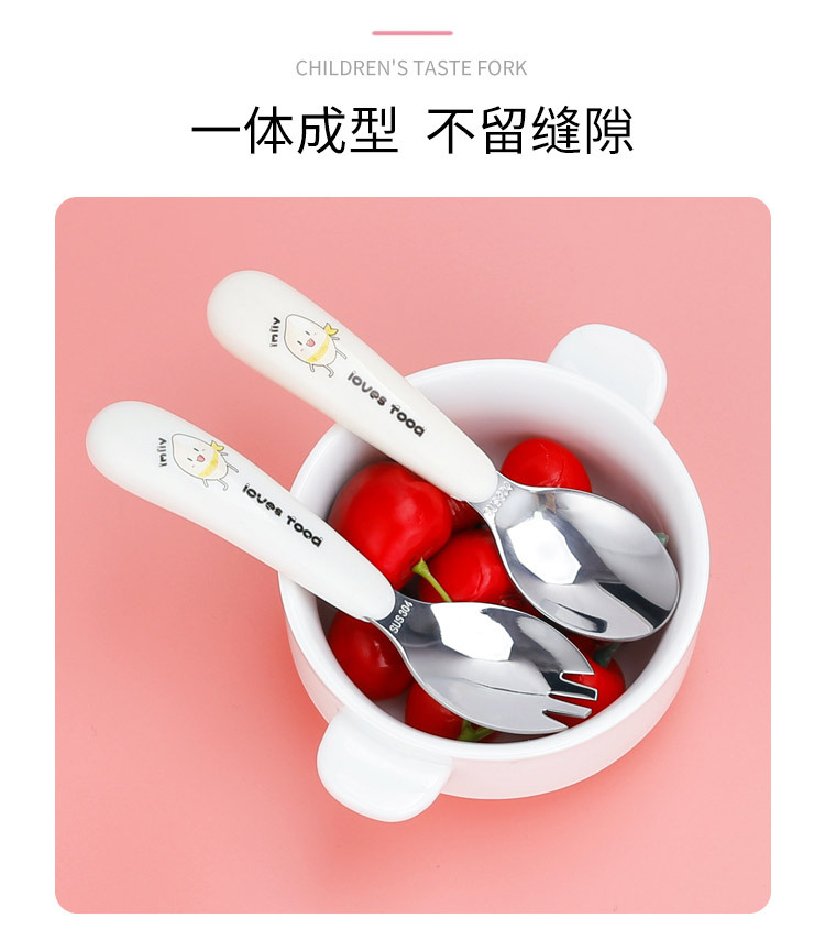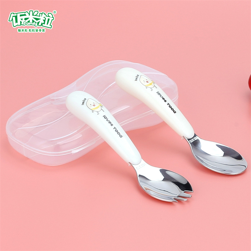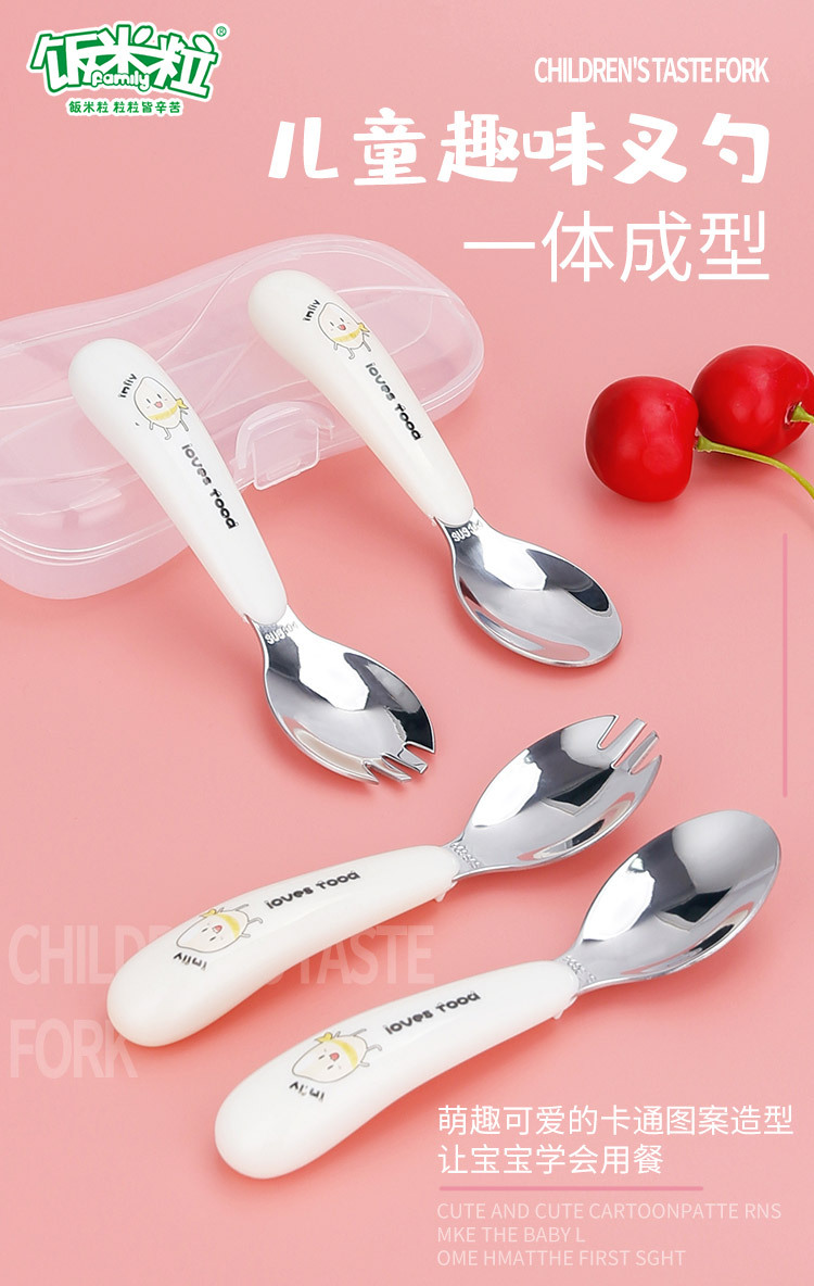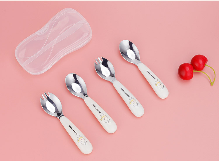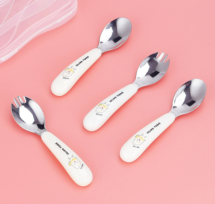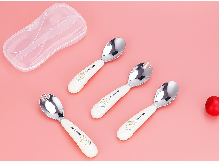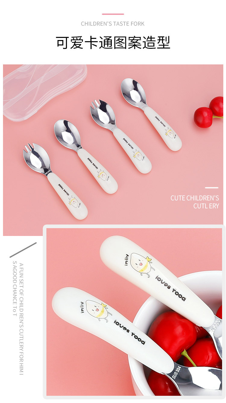 304 어린이 식기 세트 아기 포크 스푼 통합 수유 휴대용 보완 식품 어린이 두꺼운 먹는 학습 숟가락
