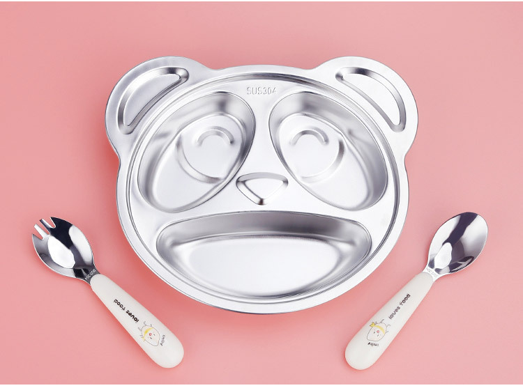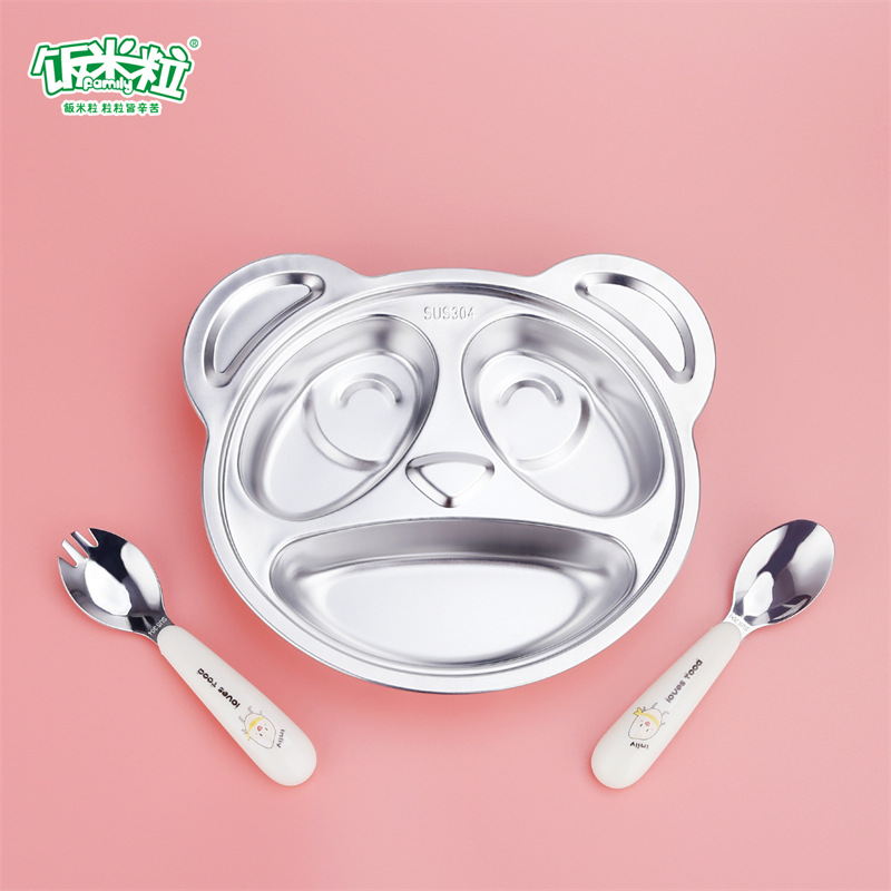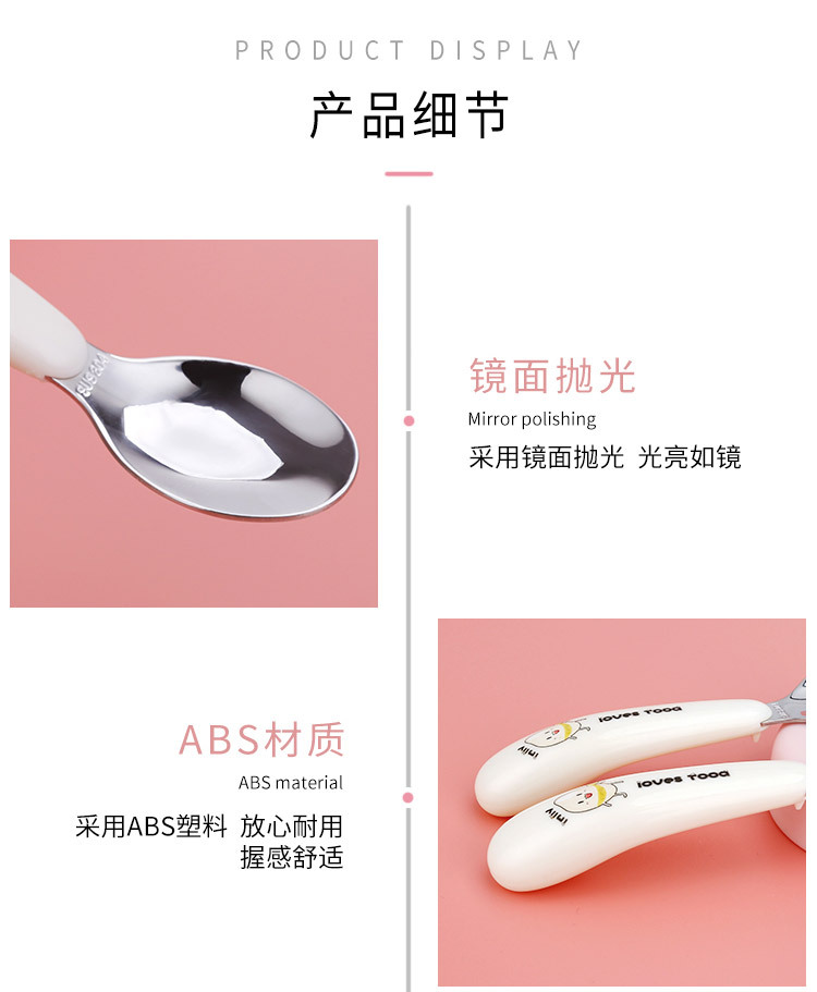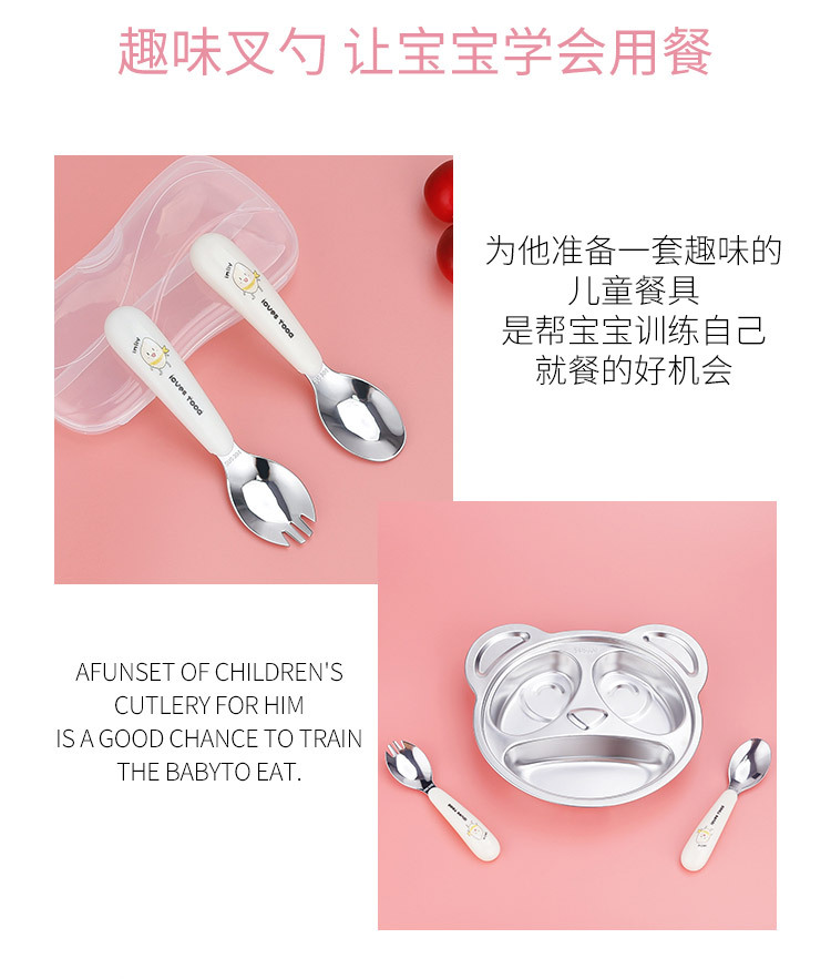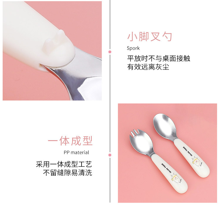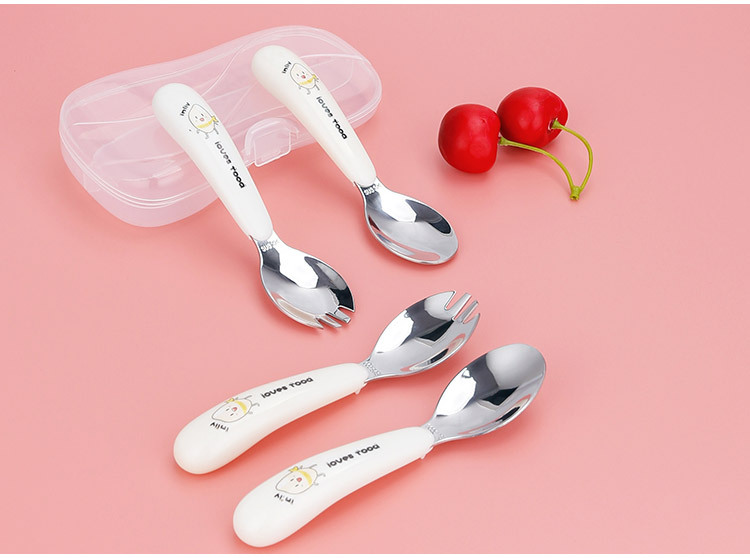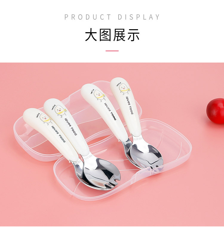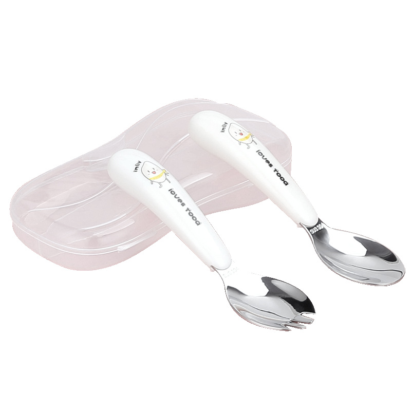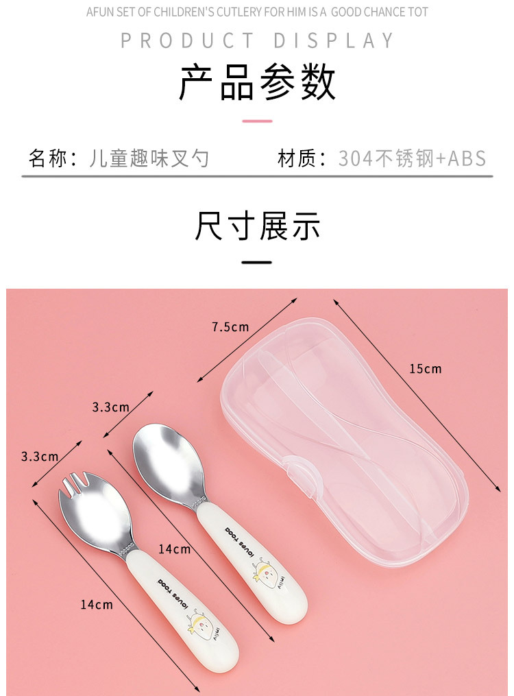 304 어린이 식기 세트 아기 포크 스푼 통합 수유 휴대용 보완 식품 어린이 두꺼운 먹는 학습 숟가락