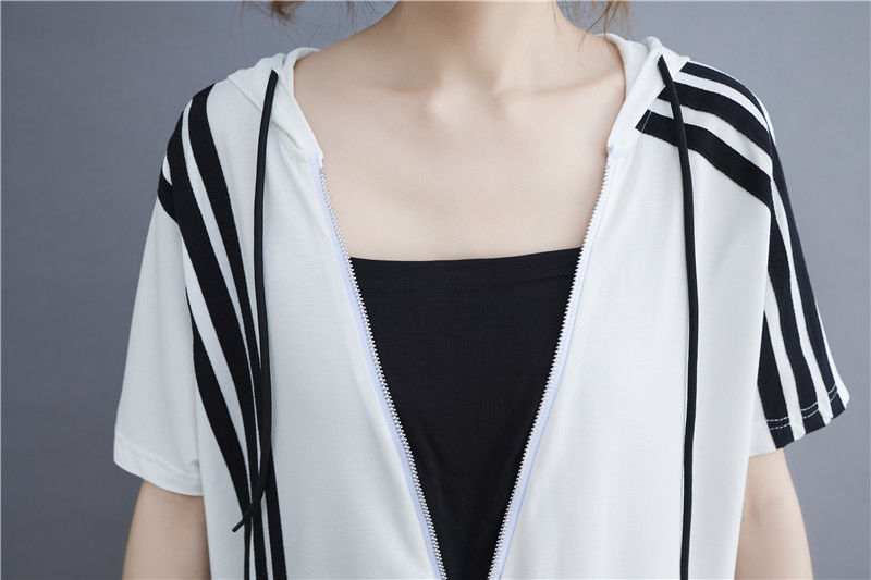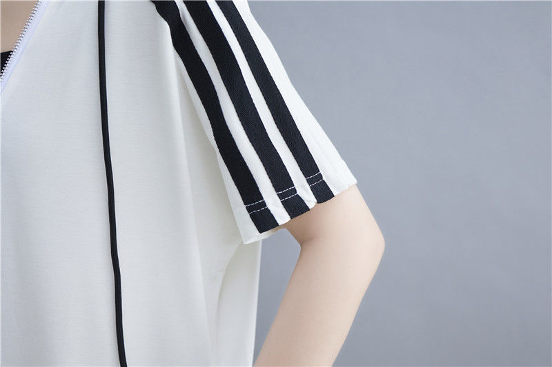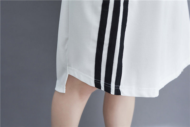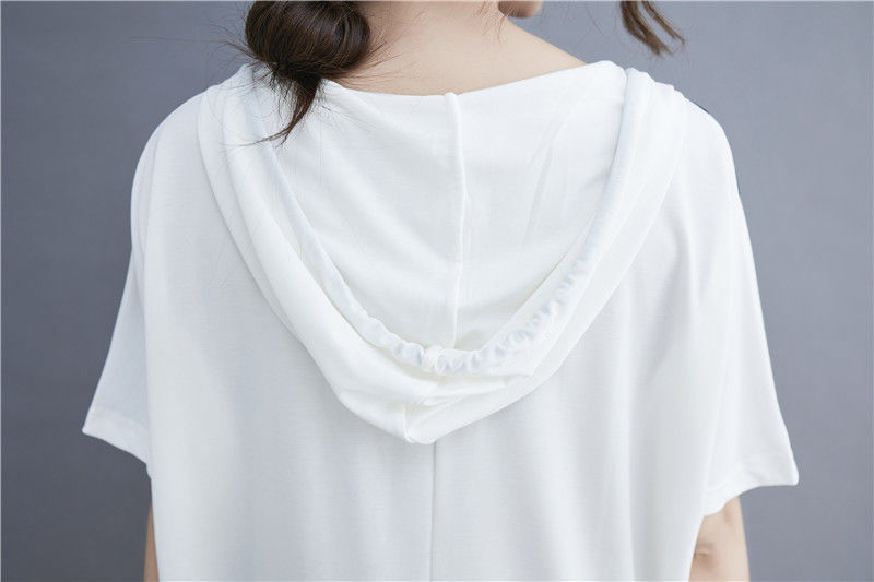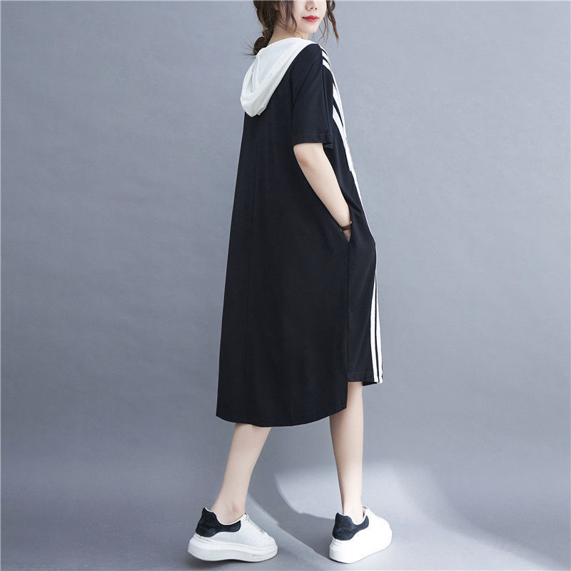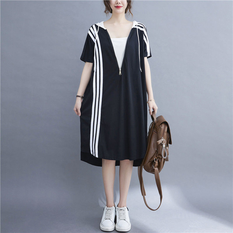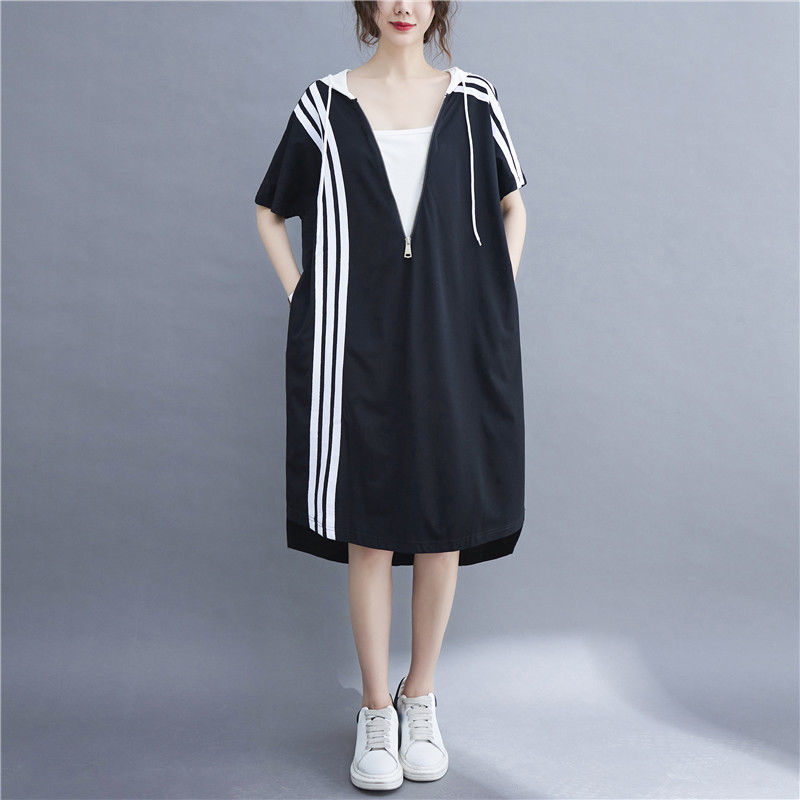 뚱뚱한 여자를 위한 여름 원피스, 큰 사이즈 여성복, 새로운 디자인의 후드가 달린 중간 길이 원피스, 투피스 스타일, 우아한 출퇴근룩