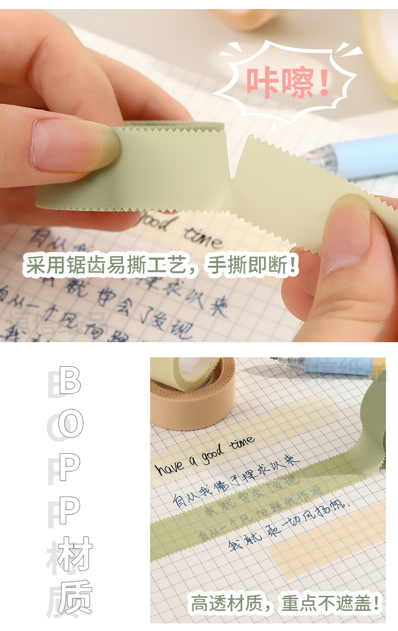 메모 문구 테이프 찢기 쉬운 투명 손 계정 스티커 방수 12mm18mm 학생을위한 얇고 좁은 메쉬 종이 테이프