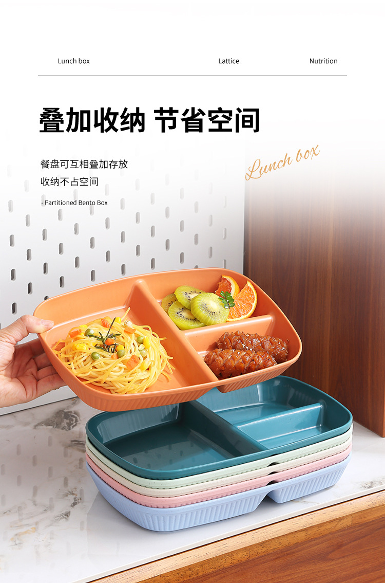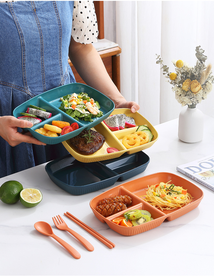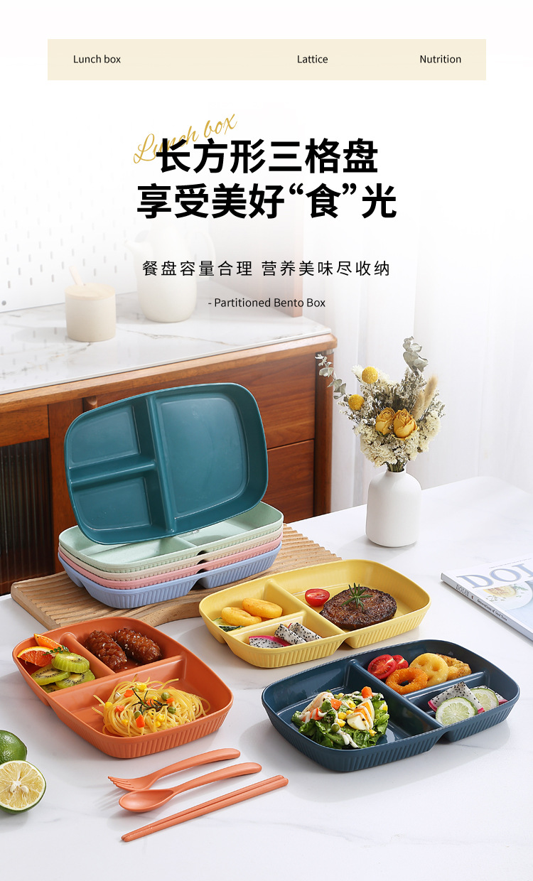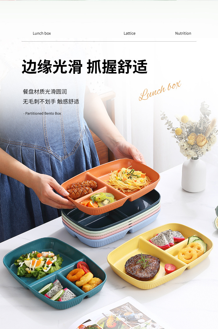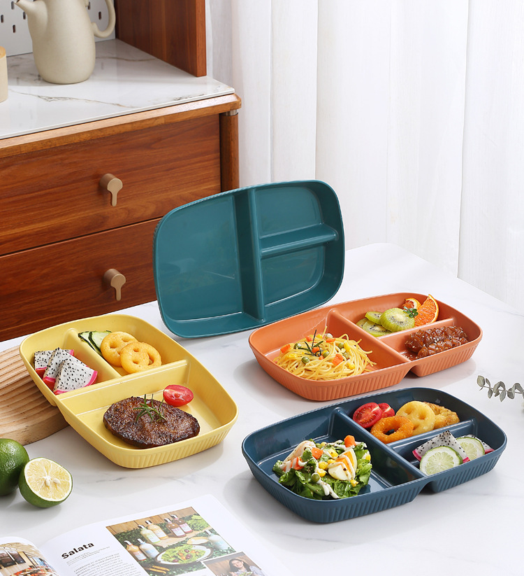 국경 분할 디너 플레이트 식기 가정용 조식 플레이트 플라스틱 PP 3 구획 정량 플레이트 1 인 식품 인터넷 축하 지방 감소 플레이트