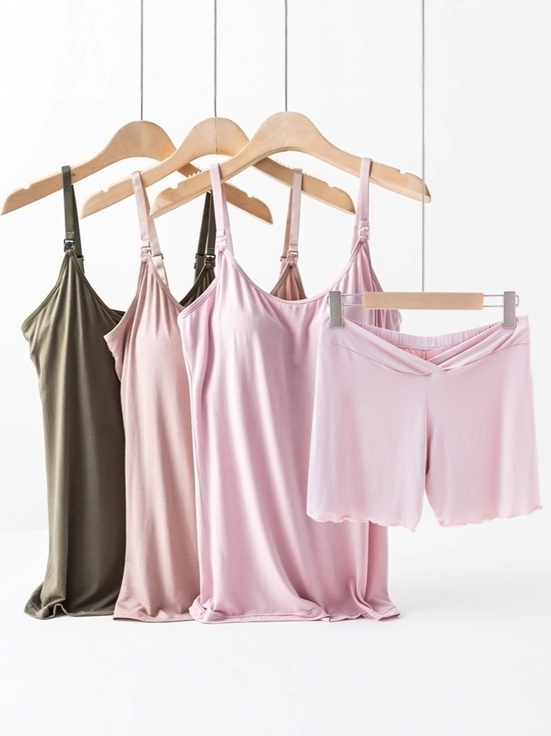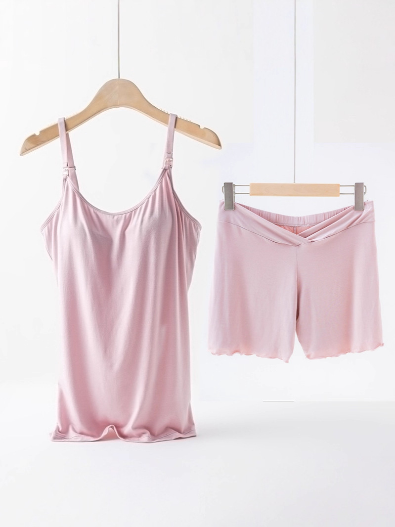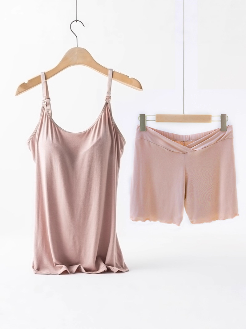 가슴 패드로 임신 한 여자의 수유 슬링 세트 임신 한 여자의 홈 느슨한 플러스 사이즈 베이스 셔츠 산후 수유 옷
