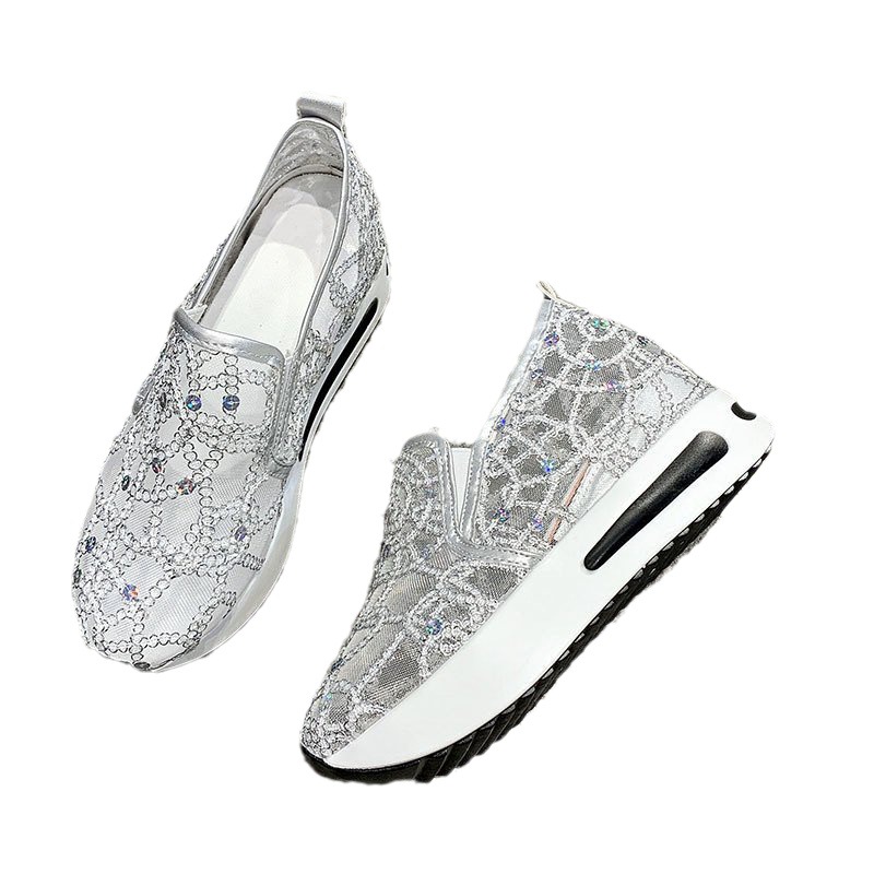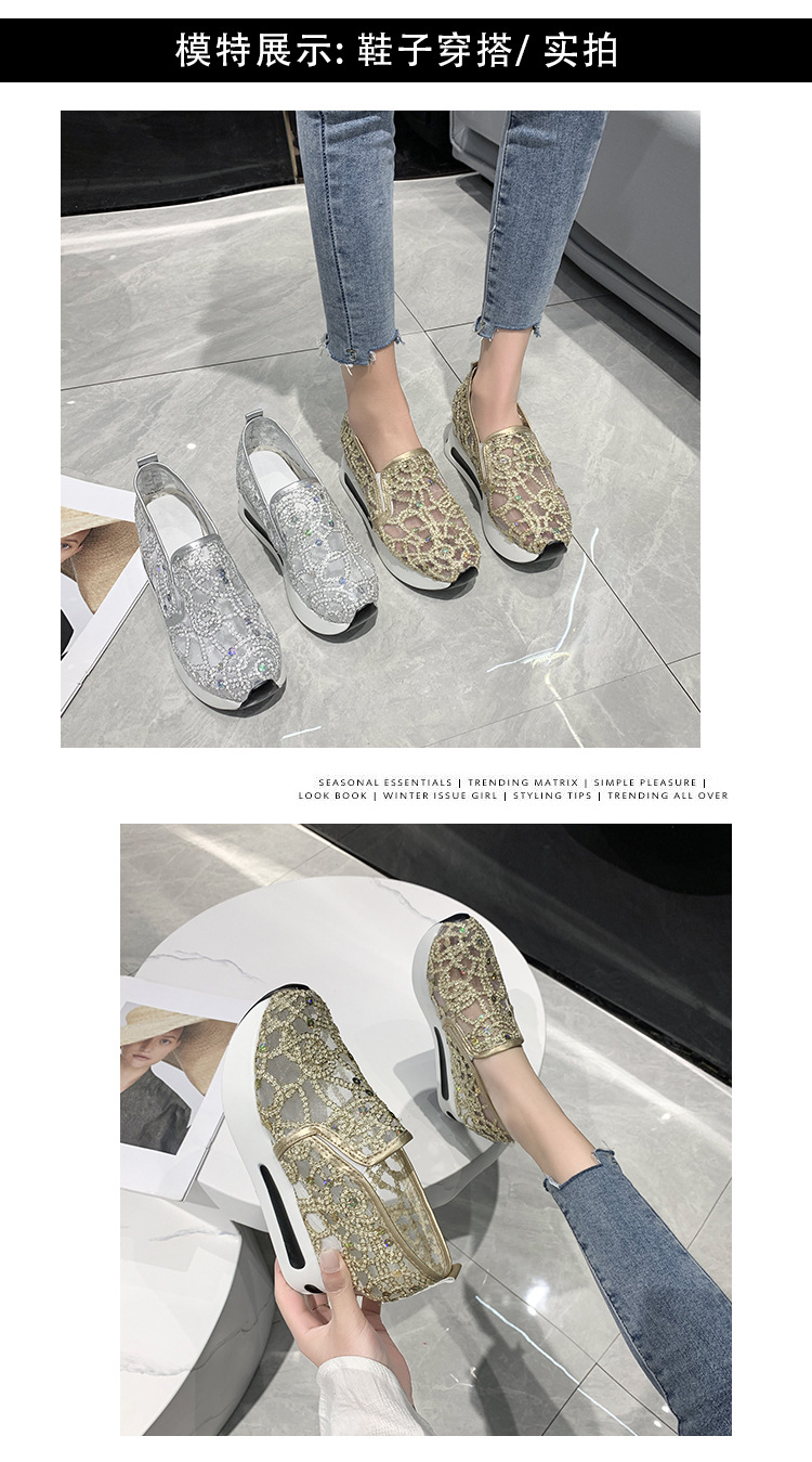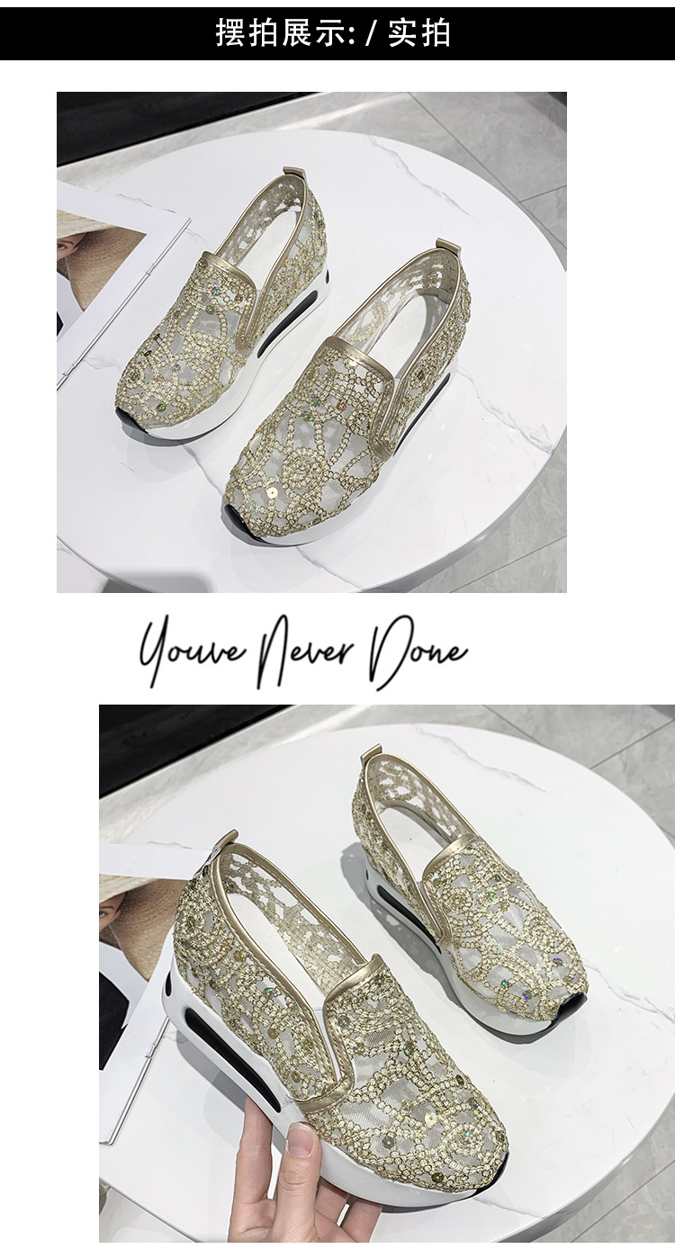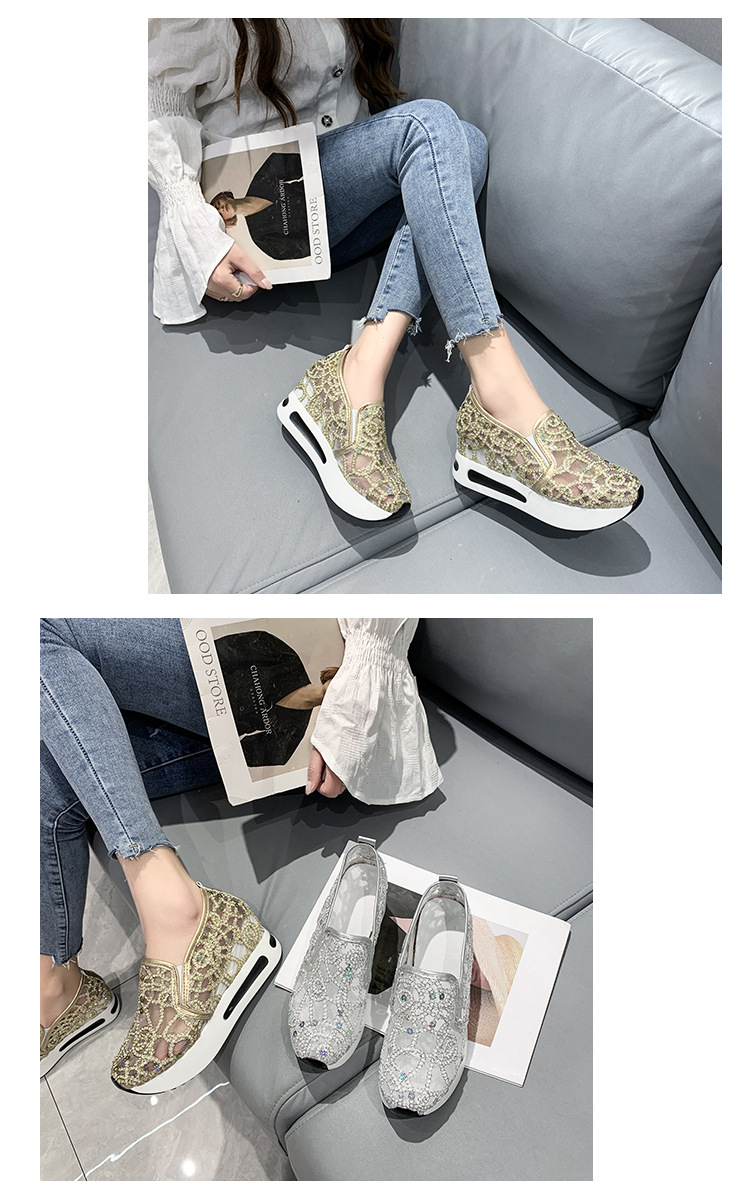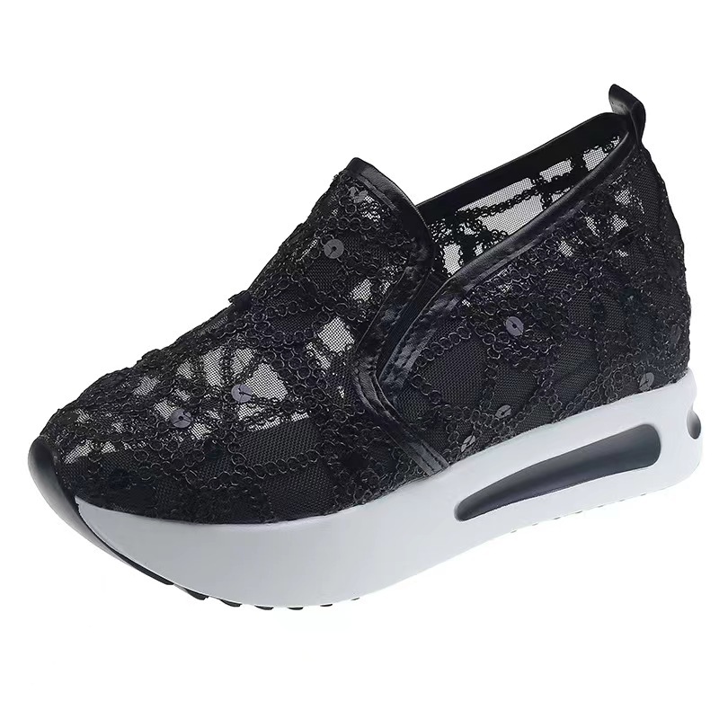메쉬 통기성 캐주얼 여성 신발 여름 새로운 스타일 내부 높이 증가 한국 스타일 슬립온 로퍼 여성용