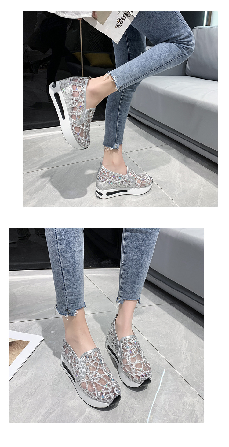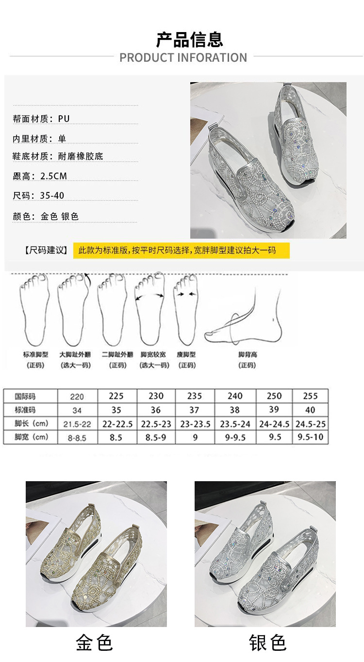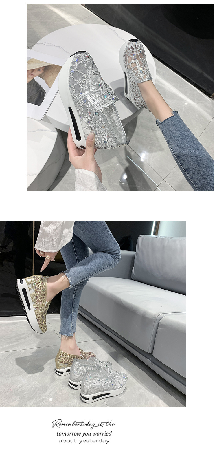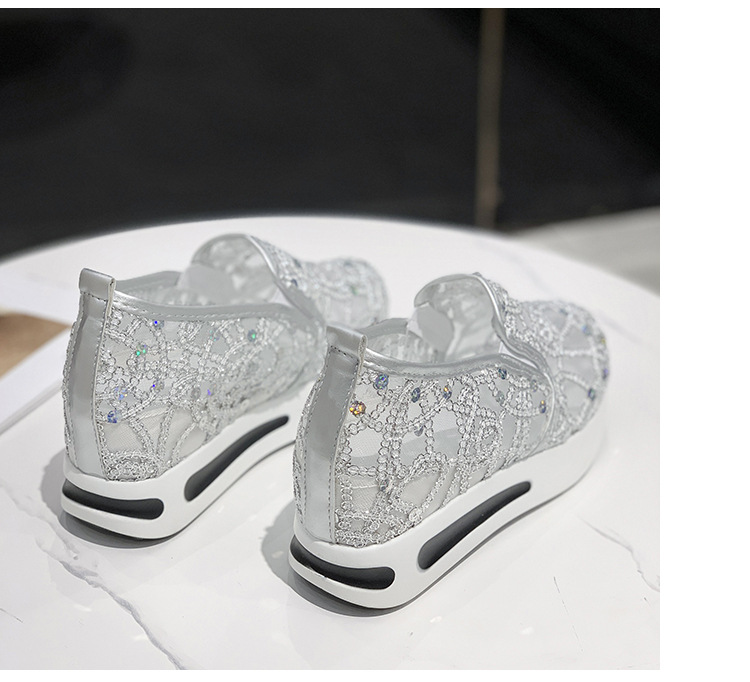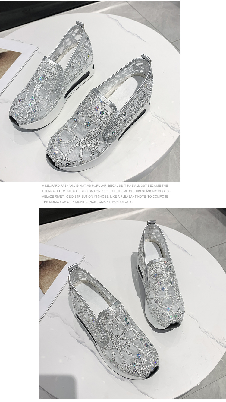 메쉬 통기성 캐주얼 여성 신발 여름 새로운 스타일 내부 높이 증가 한국 스타일 슬립온 로퍼 여성용