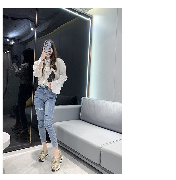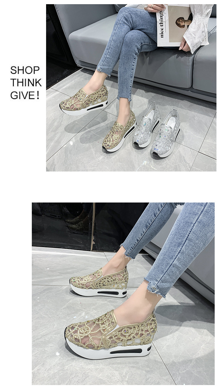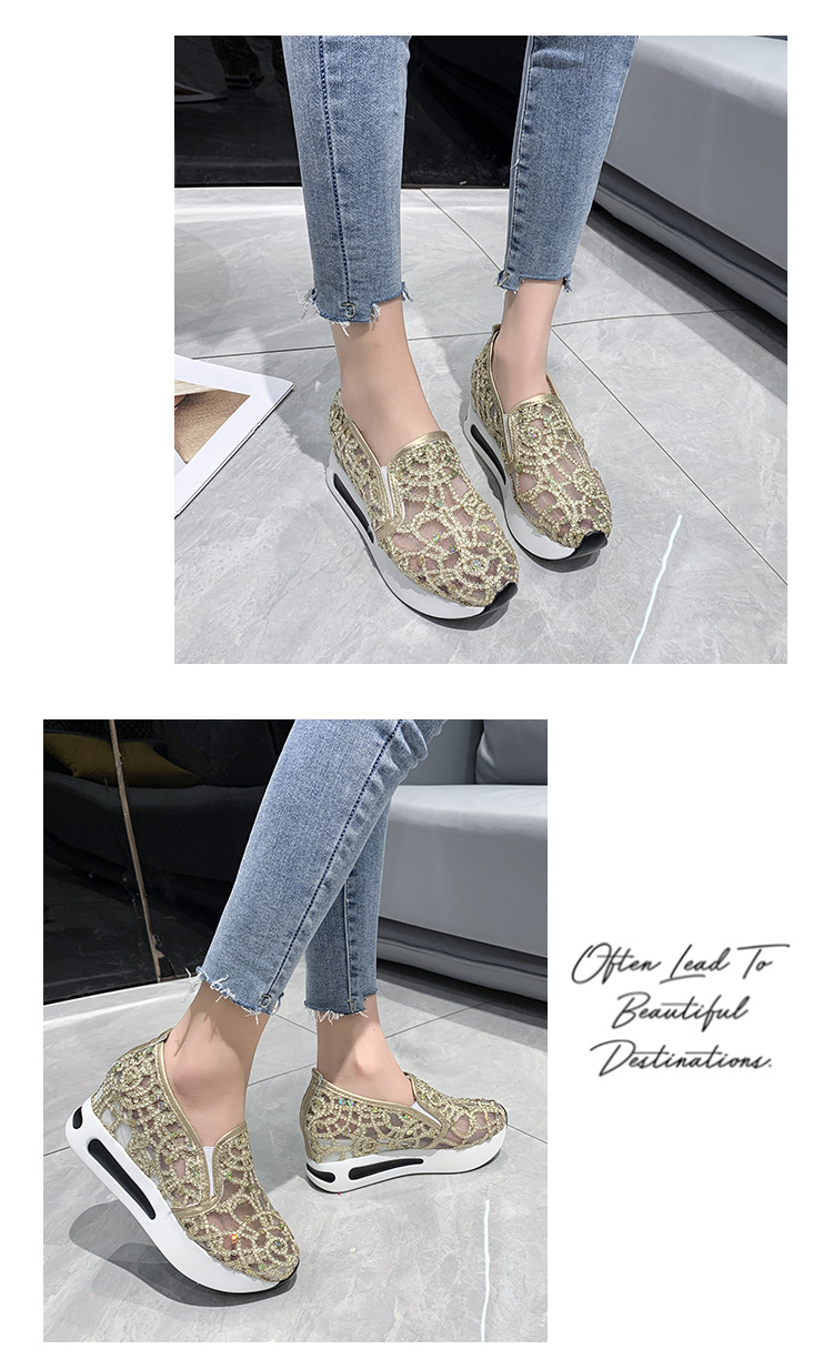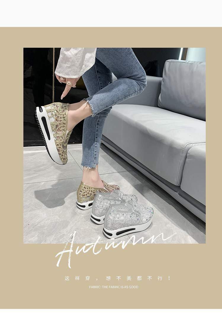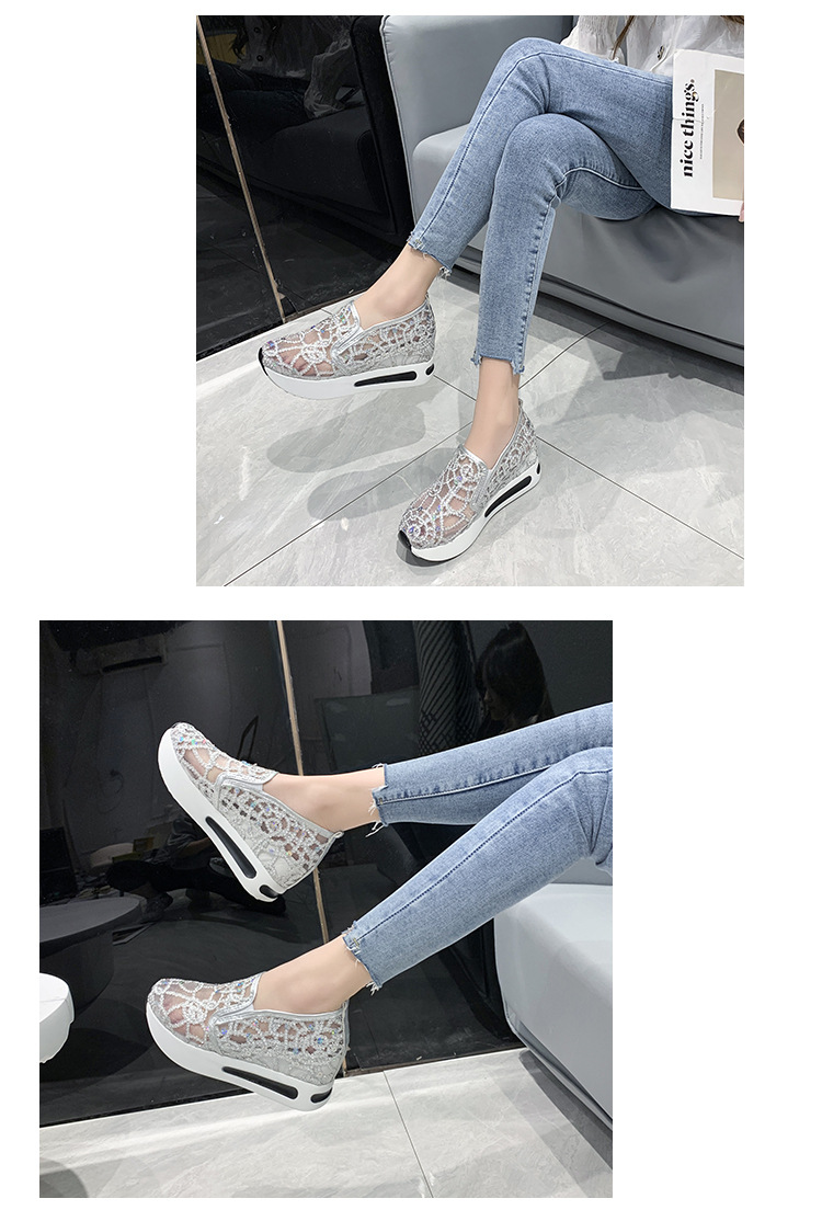 메쉬 통기성 캐주얼 여성 신발 여름 새로운 스타일 내부 높이 증가 한국 스타일 슬립온 로퍼 여성용
