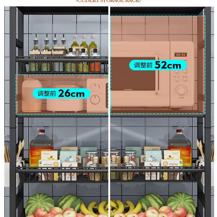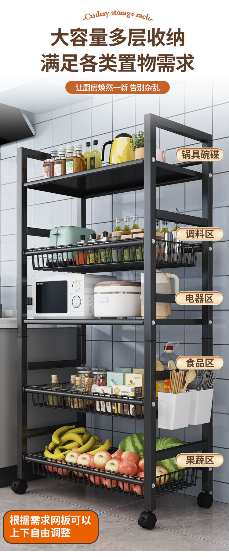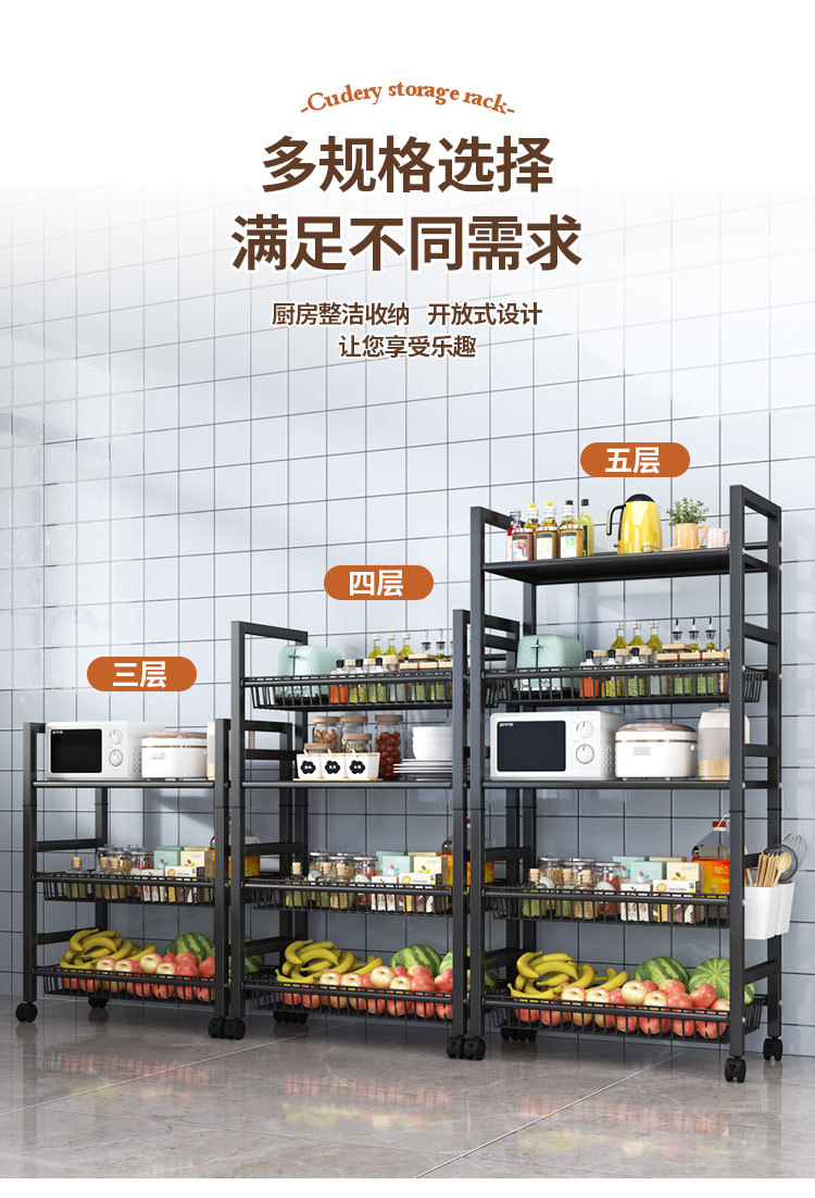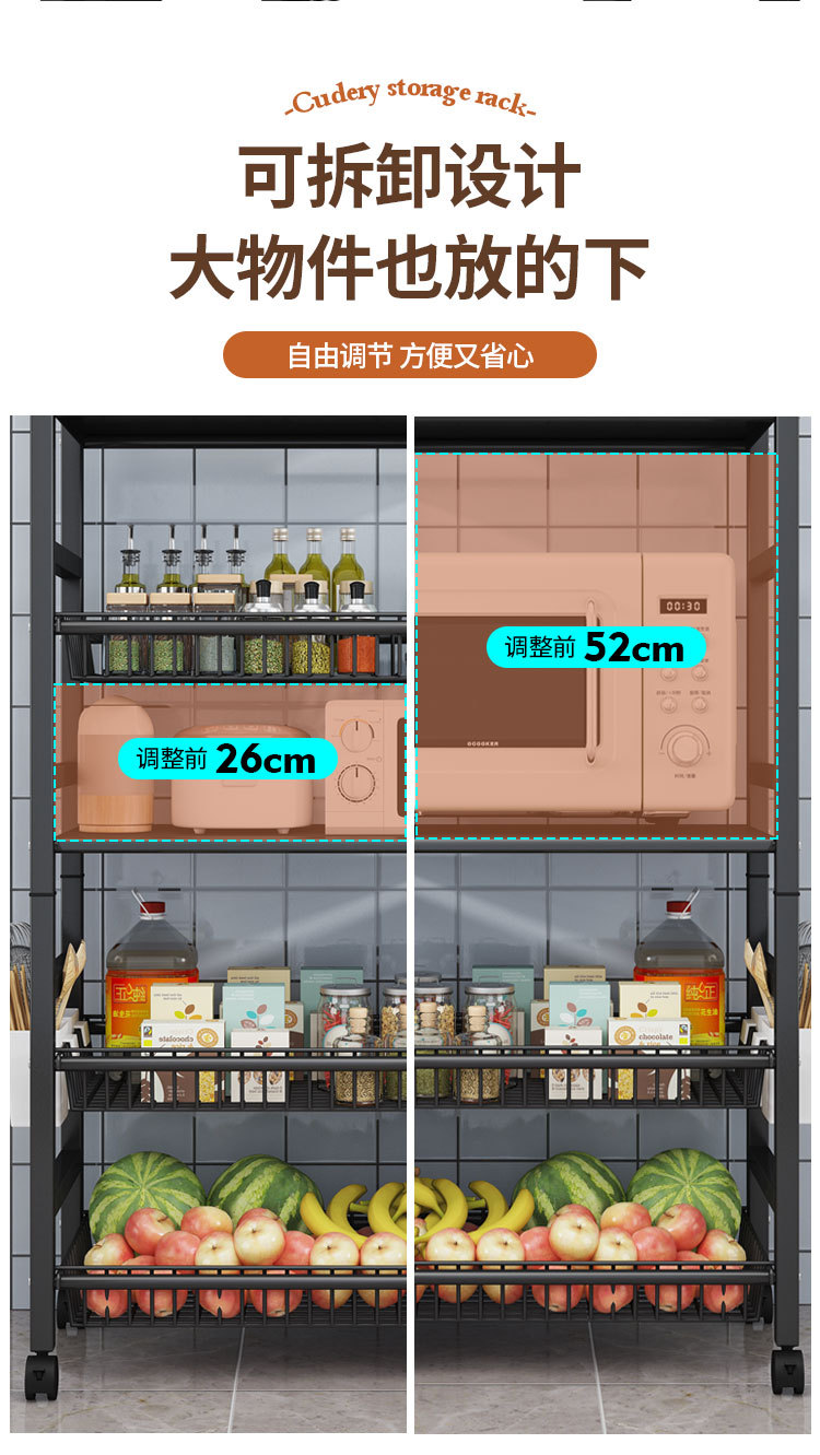 厨房多功能置物架落地多层收纳架蔬菜篮子微波炉烤箱货架储物架子