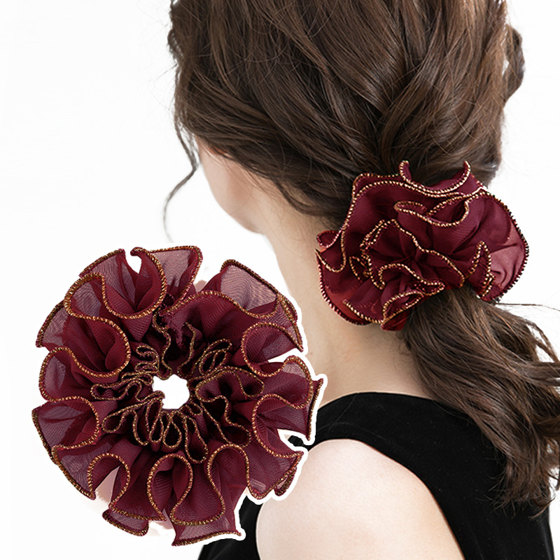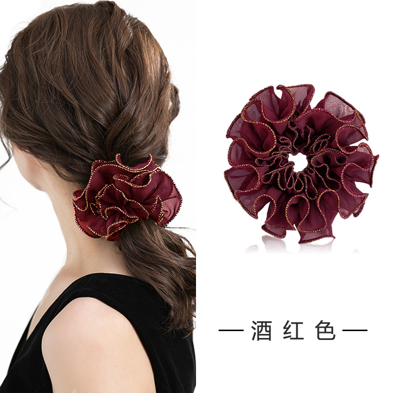 헤드 플라워 라이트 럭셔리 버건디 헤어 링 볼 헤드 디스크 헤어 모자 한국 헤어 로프 조랑말 꼬리 머리 고무 밴드 헤드 로프