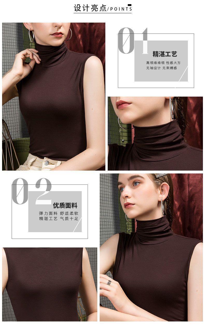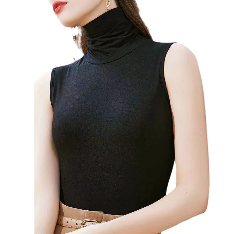 하이 칼라 베이스 셔츠 여성용 블랙 슬림핏 민소매 솔리드 컬러 베이스 파일 칼라 코어 스핀 원사 티셔츠 트렌디 민소매 셔츠