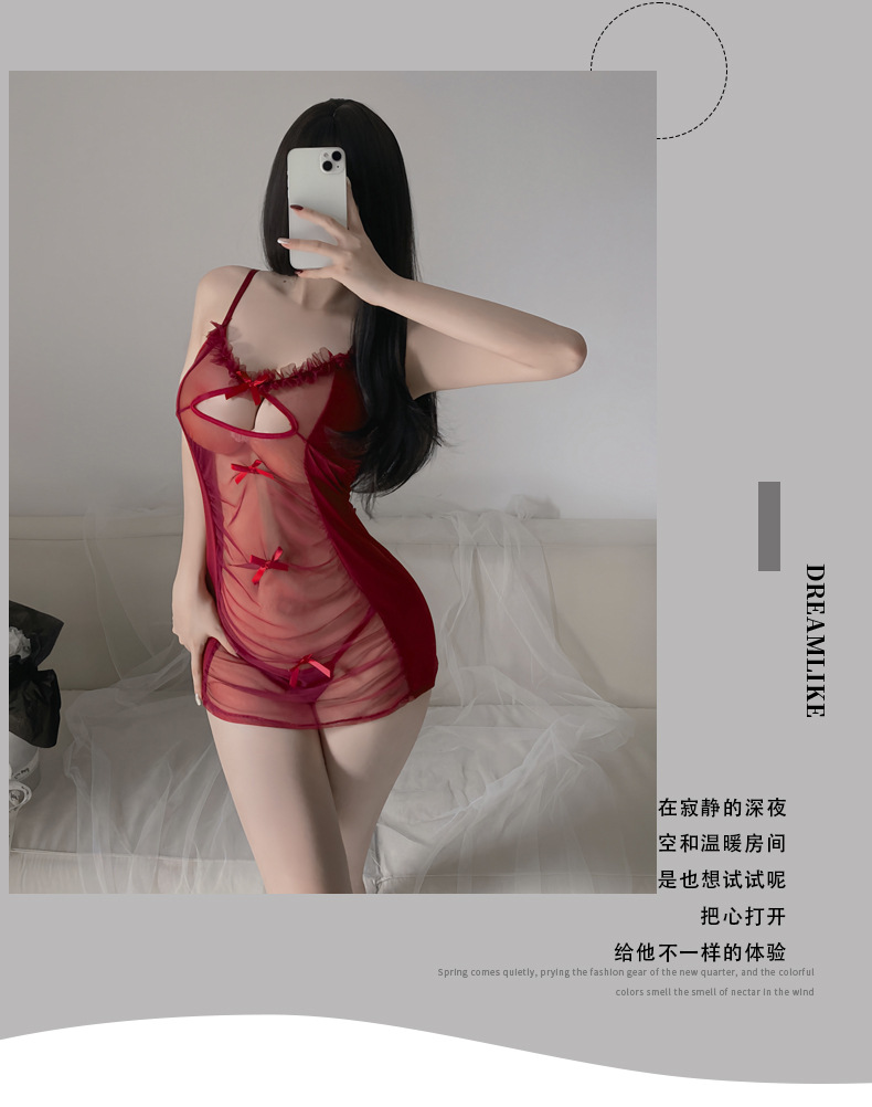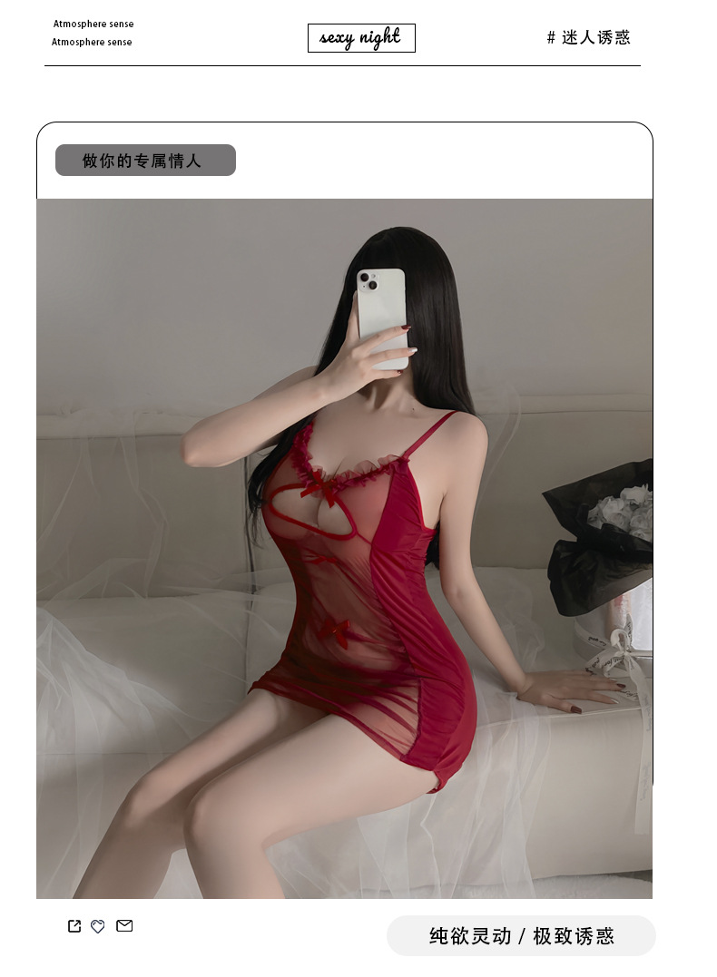 초루이얼 섹시 란제리, 섹시한 메쉬 시스루 얇은 원피스, 벨벳 잠옷, 열정적인 순수 유니폼, 유혹적이고 섹시한 의상