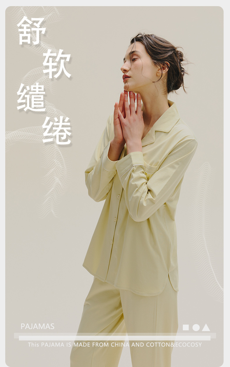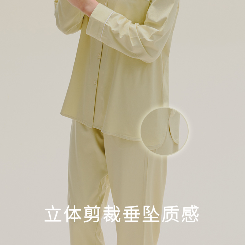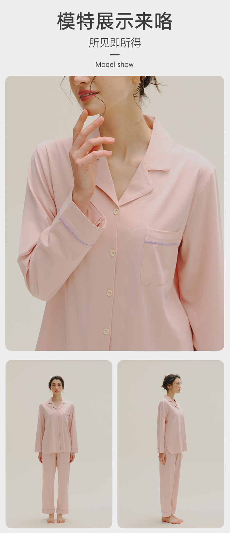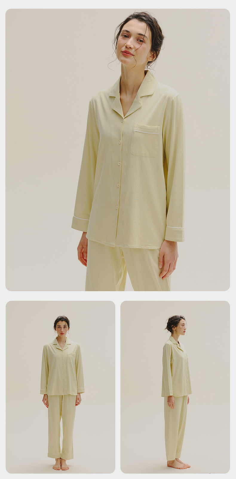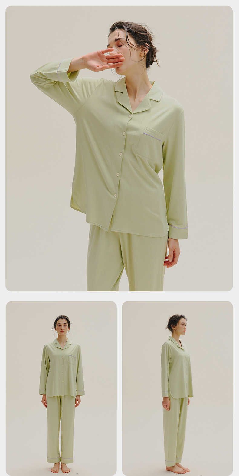 여성용 잠옷 봄 가을 신상품 우코스 단색 여성용 가디건 긴팔 심플 홈웨어 세트