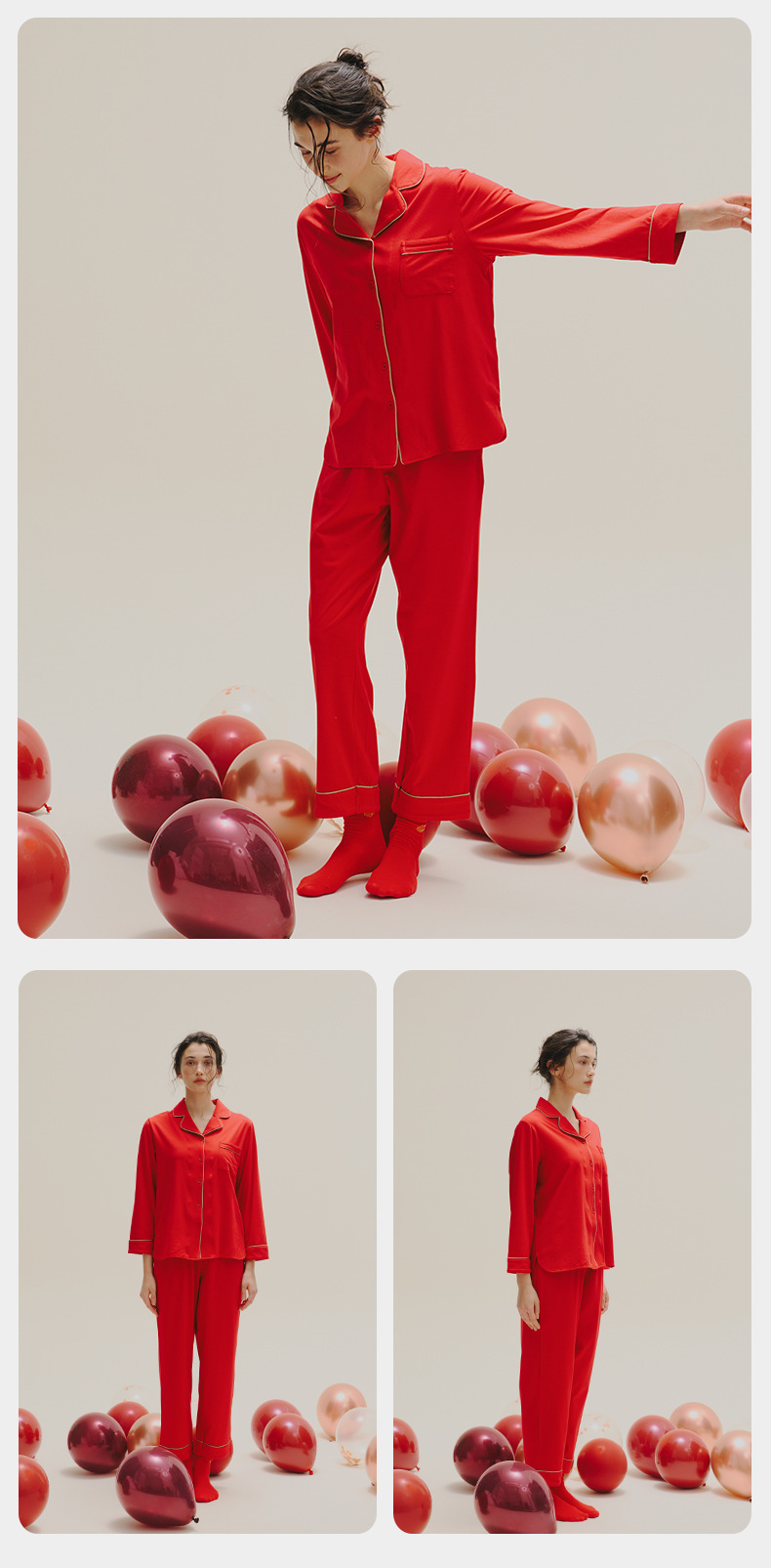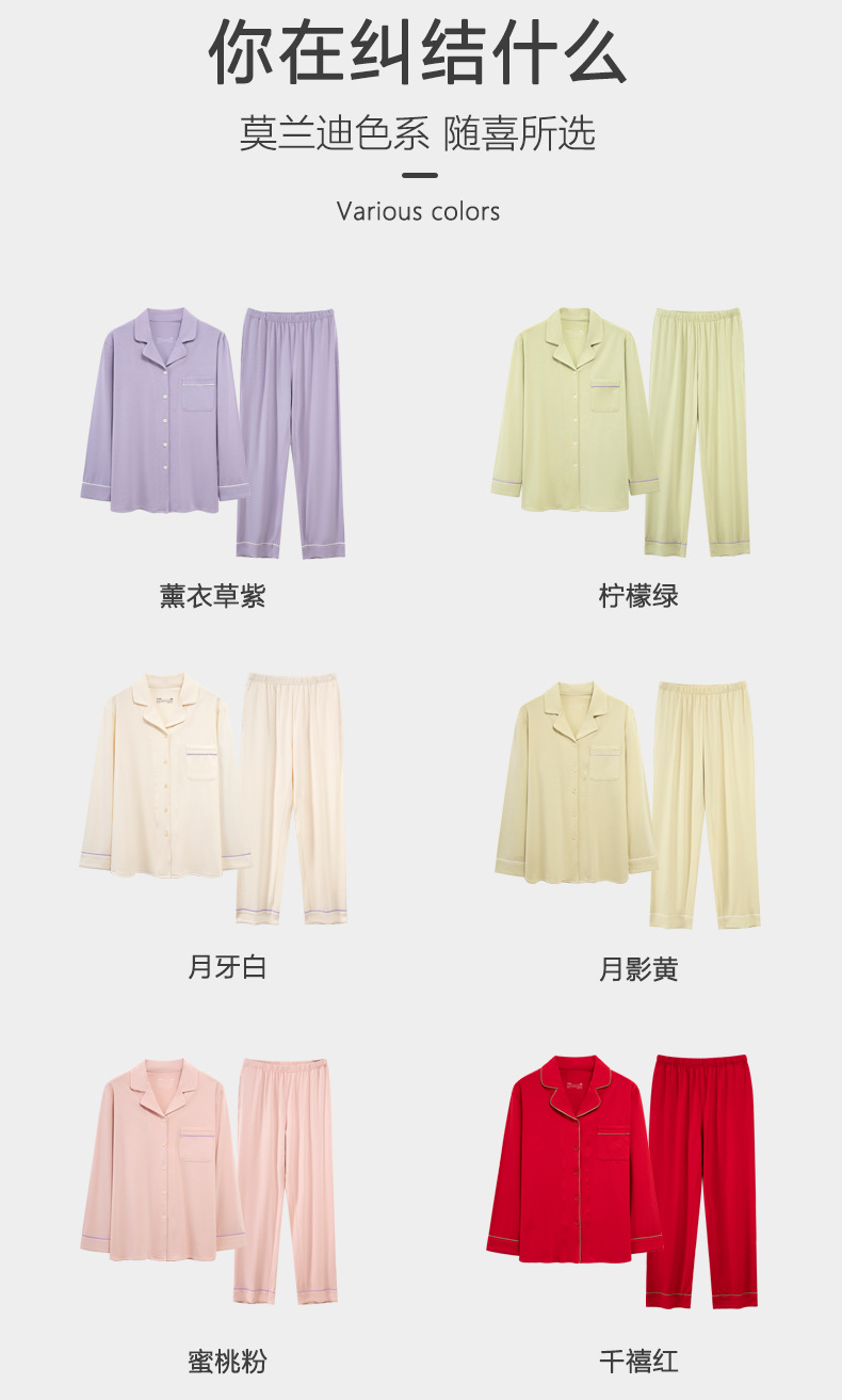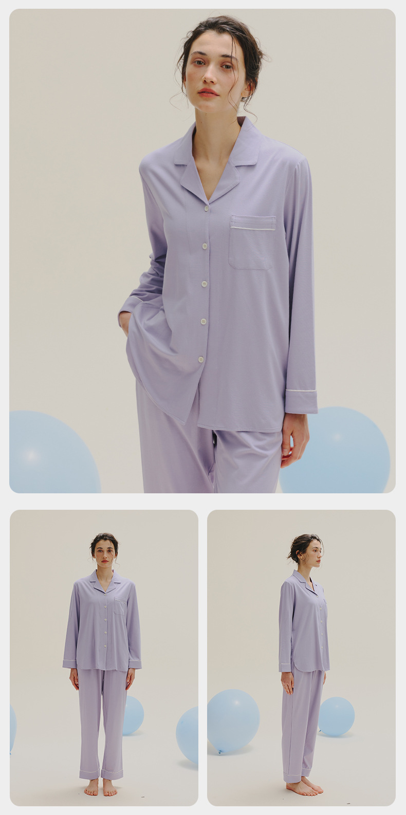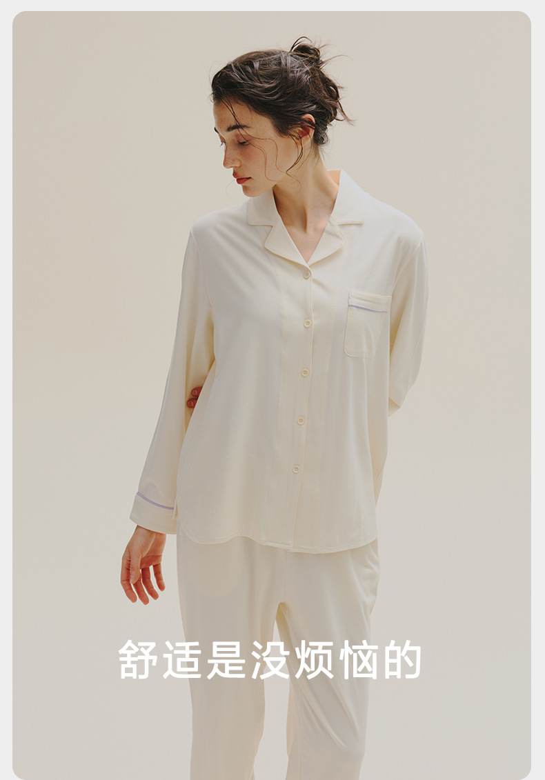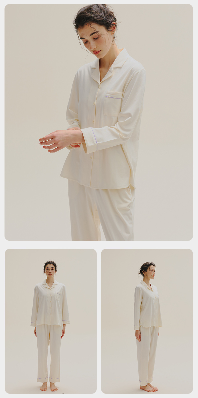 여성용 잠옷 봄 가을 신상품 우코스 단색 여성용 가디건 긴팔 심플 홈웨어 세트