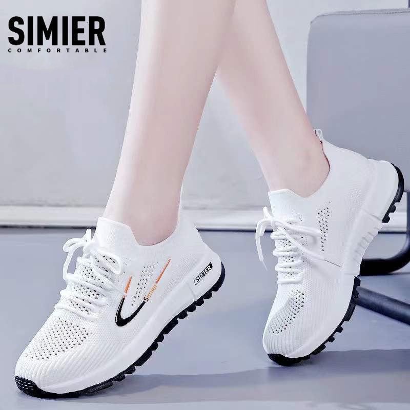 2023 봄 여름 화이트 스니커즈 학생용 플라이니트 메쉬 슈즈 여성 통기성 운동화 ins 여성화 드롭쉬핑 캐주얼 만능 슈즈