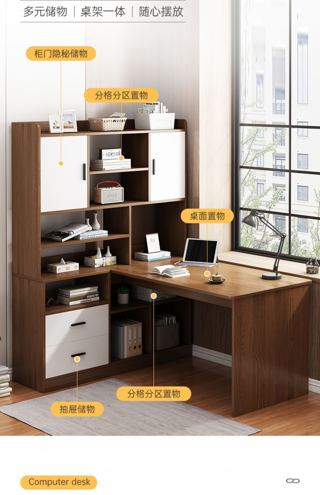 Yijiada 데스크탑 홈 책상 책장 조합 침실 학생 코너 책상 간단한 현대 사무실 책상