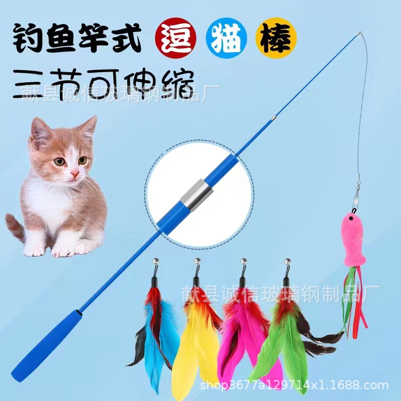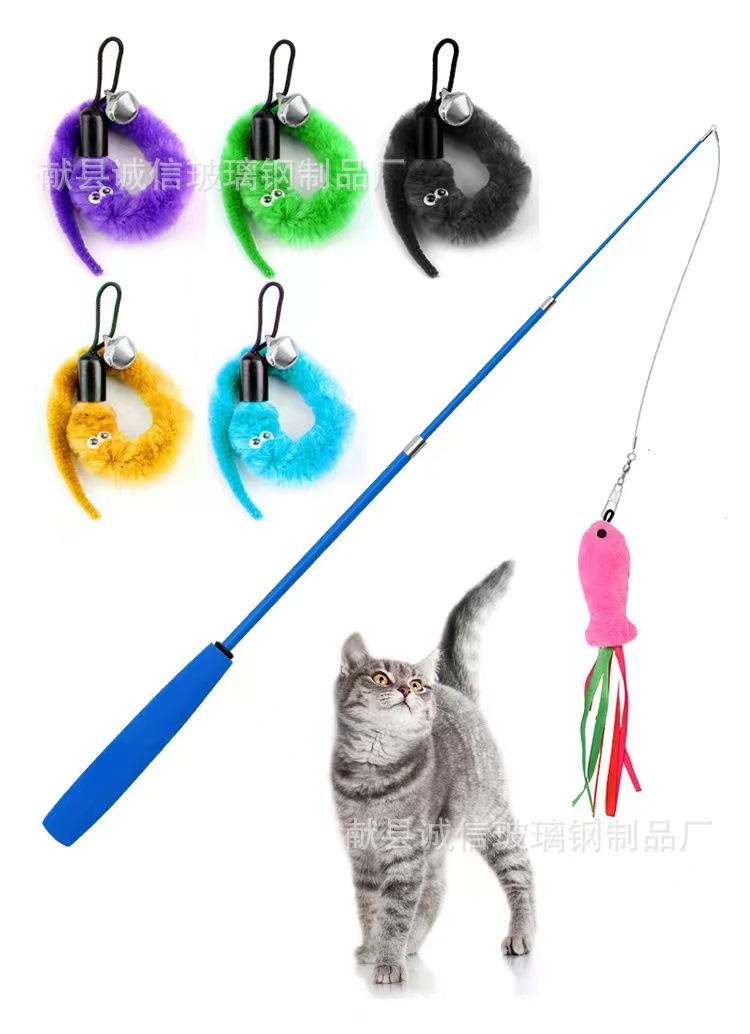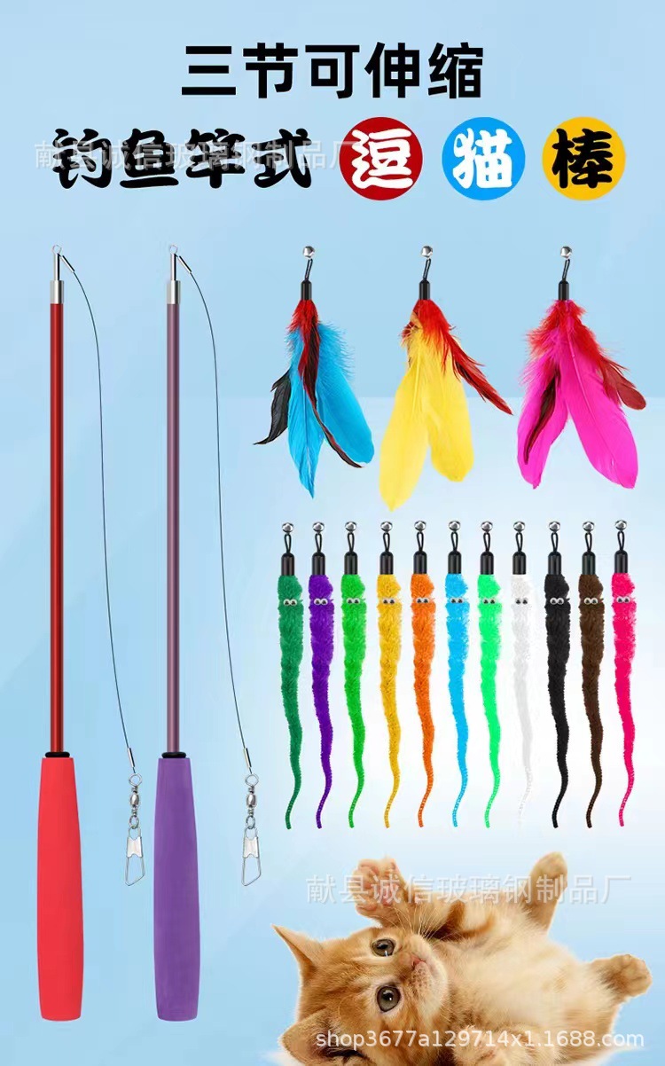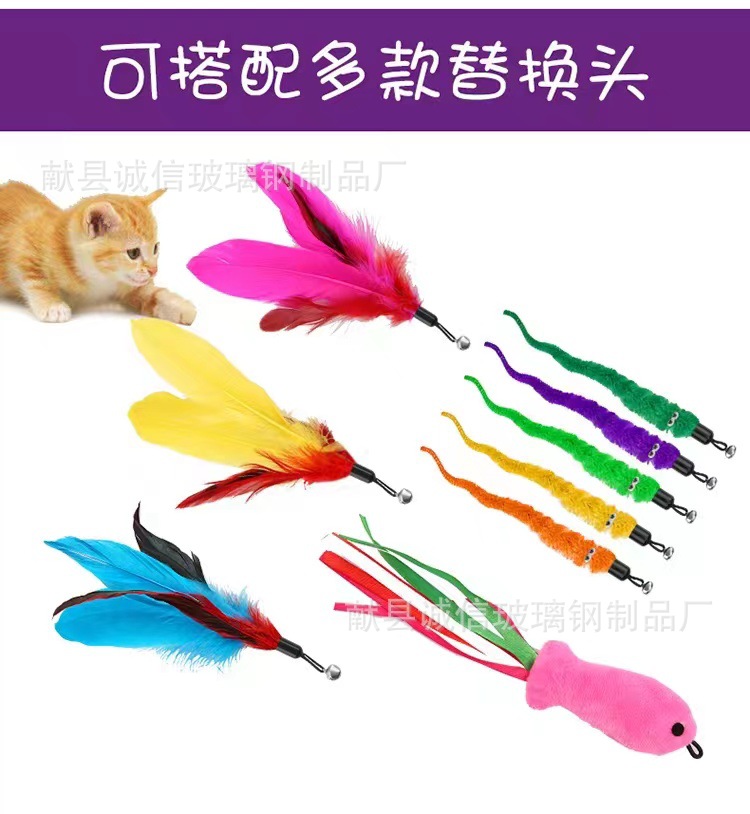 공장 직접 고양이 장난감 고양이 스틱 망원경 고양이 스틱 깃털 교체 머리 애벌레