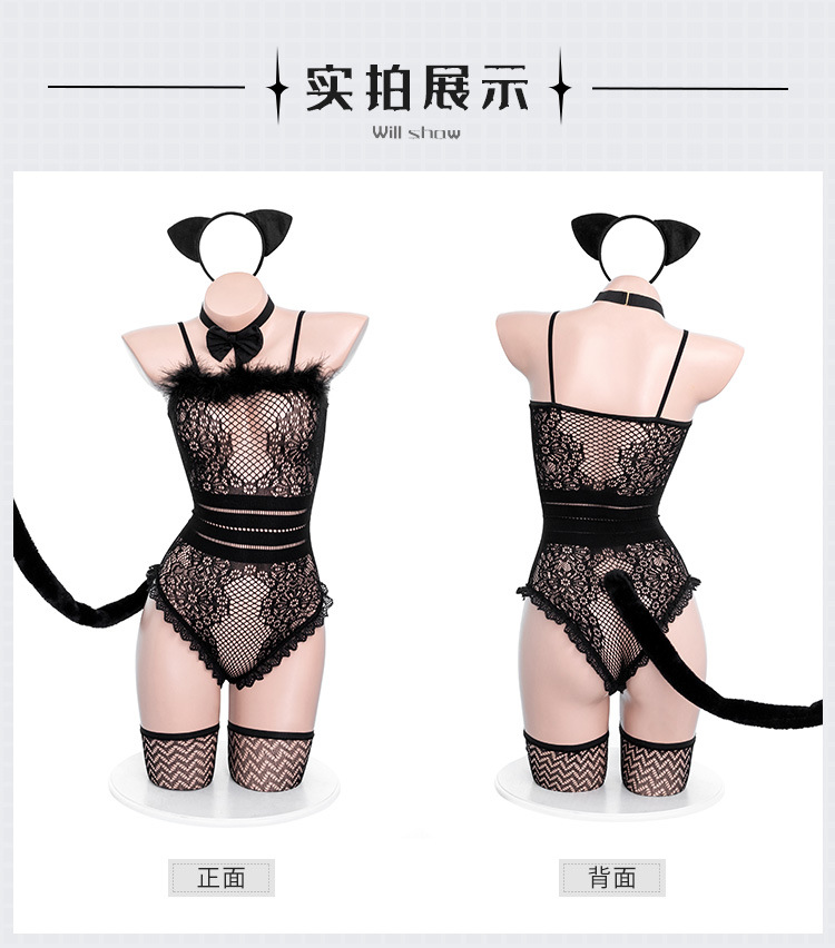 섹시한 속옷 섹시한 캣우먼 원피스 유니폼 바디수트 세트 캣우먼 역할극 그물 블랙 실크 유혹