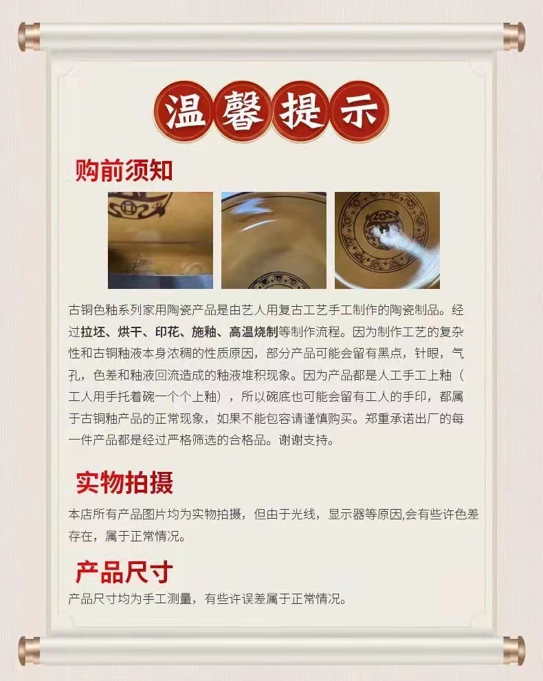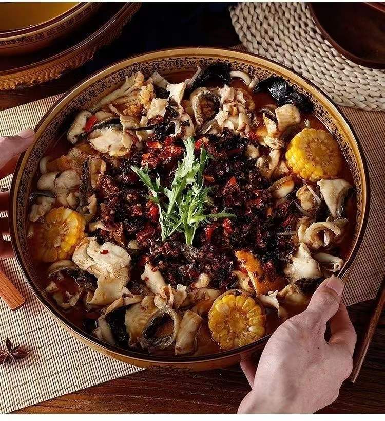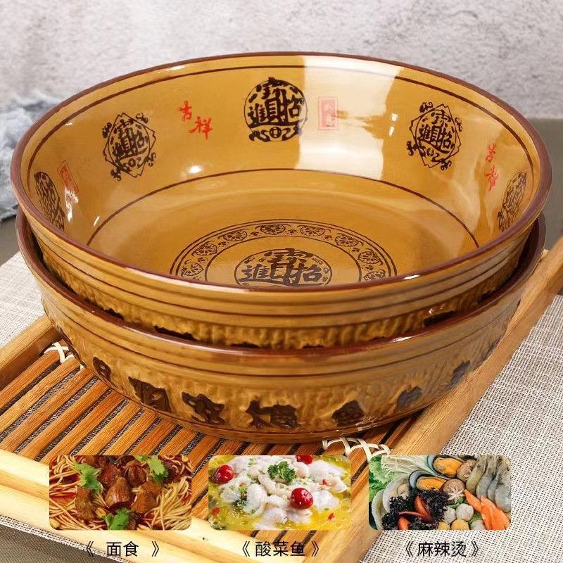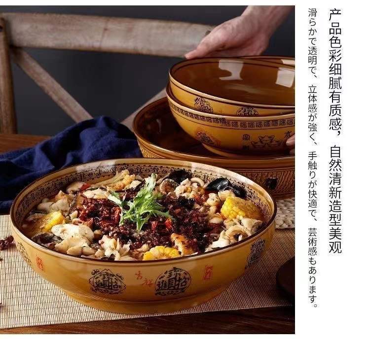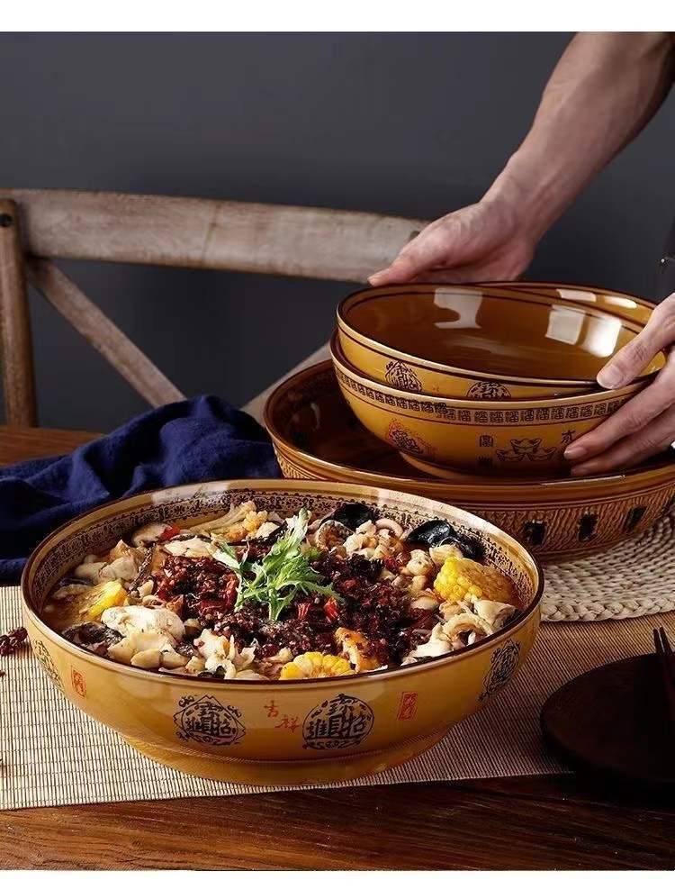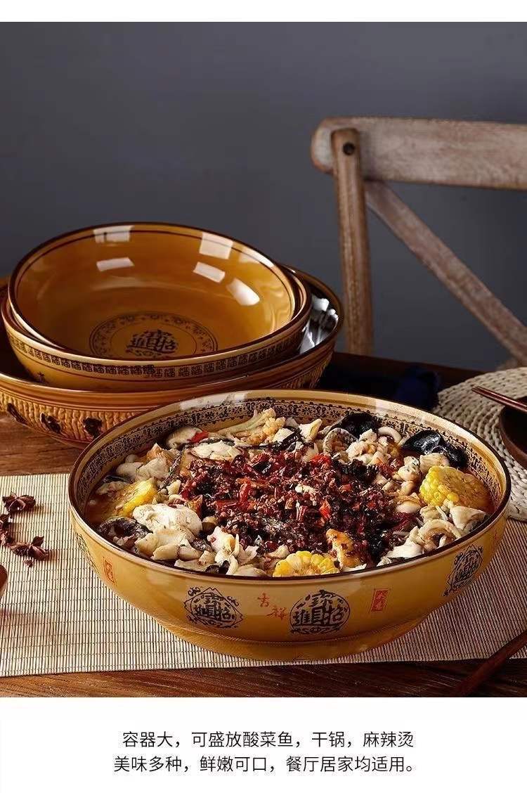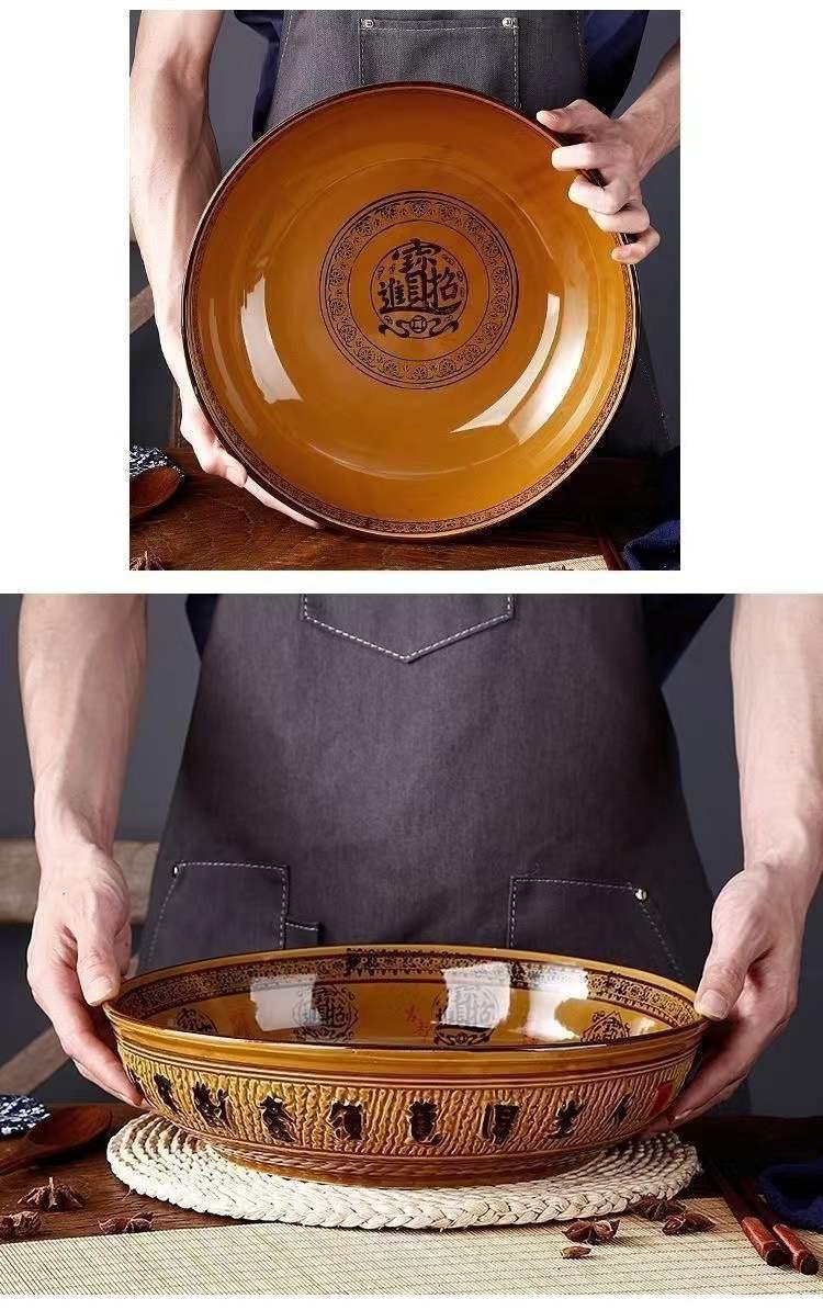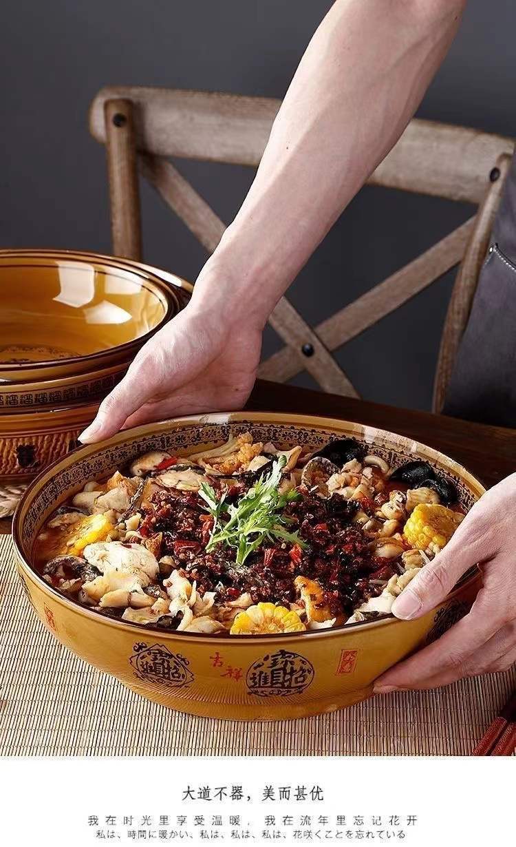 도자기 그릇 도매 레트로 행운과 재물이 듬뿍 담긴 큰 국그릇, 절임채소 생선과 혈장 전용 대형 그릇, 라이트 럭셔리 레트로