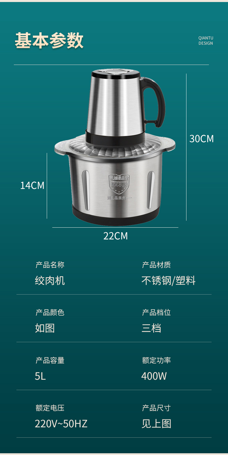 5L 전기 고기 분쇄기