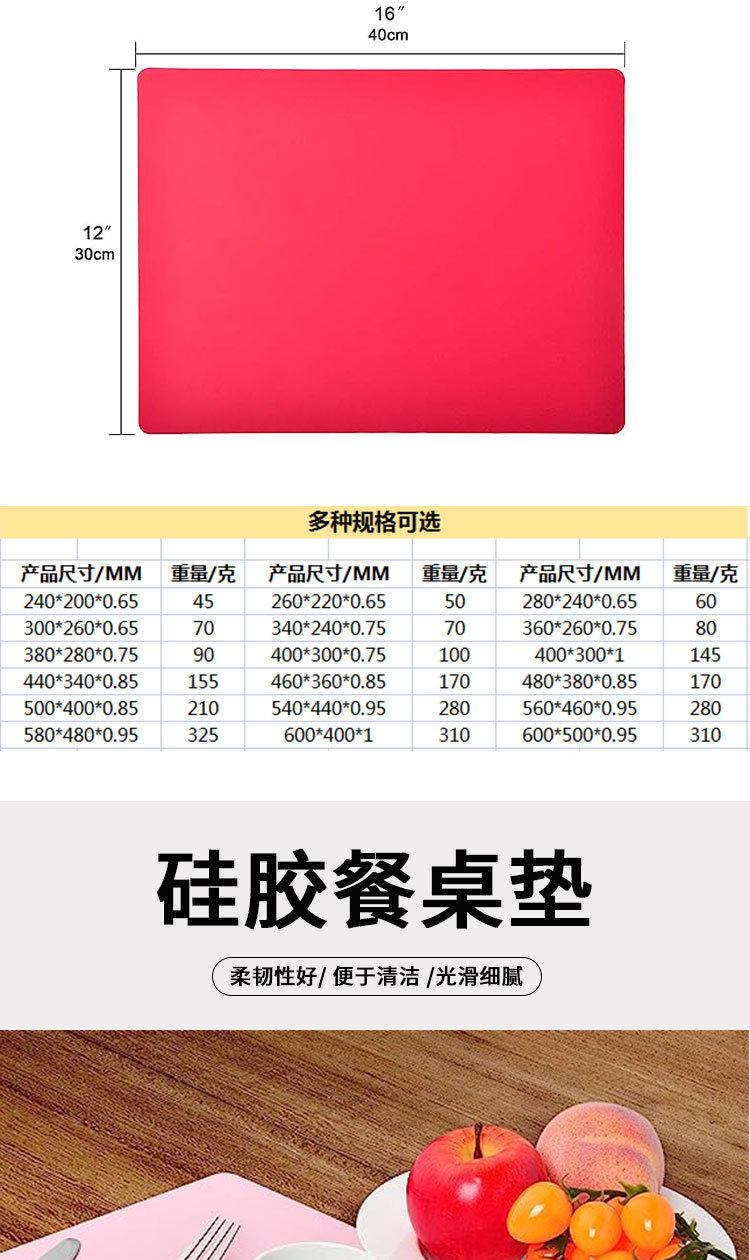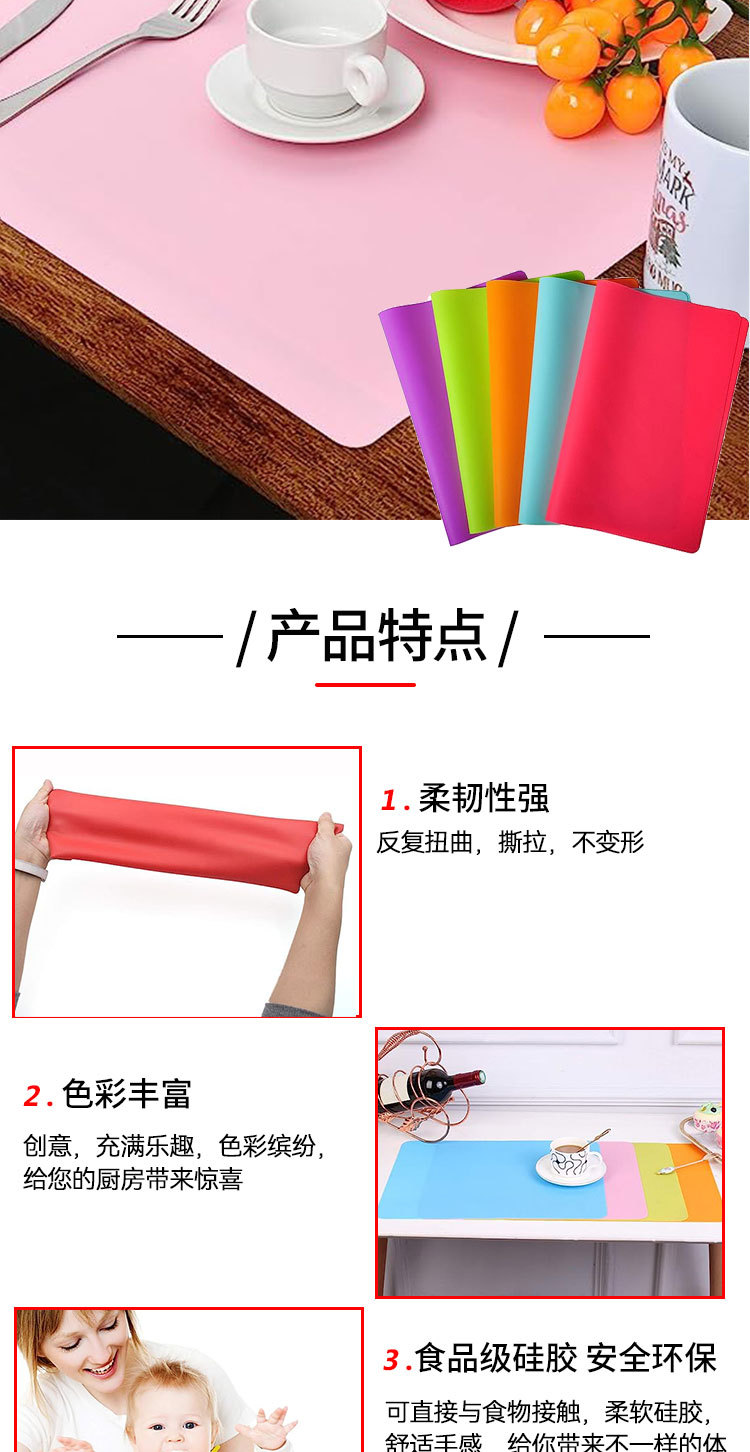 어린이 두꺼운 사각 미끄럼 방지 실리콘 매트 간단한 서양식 테이블 매트 실리콘 테이블 매트 단열 서양식 테이블 매트