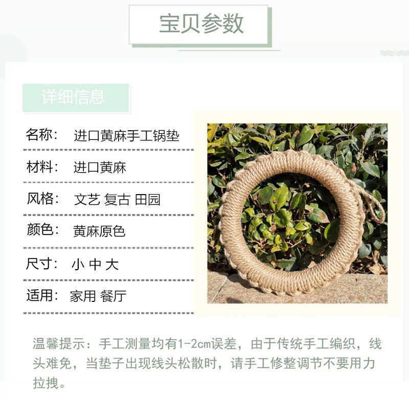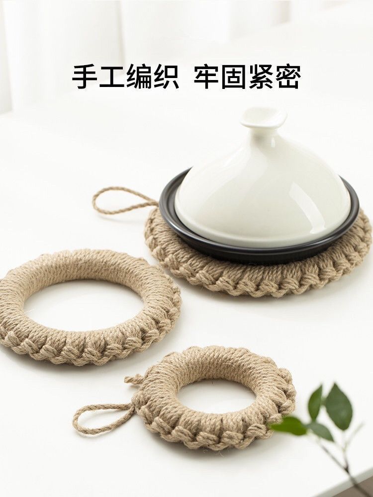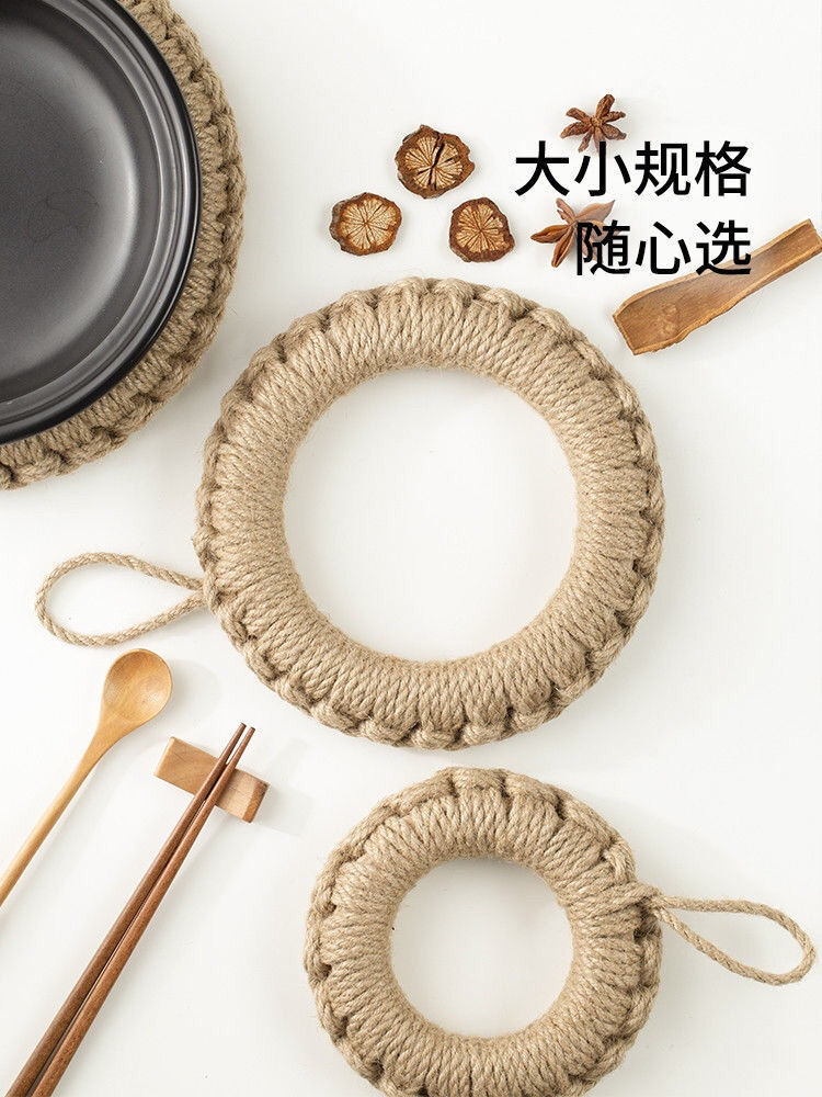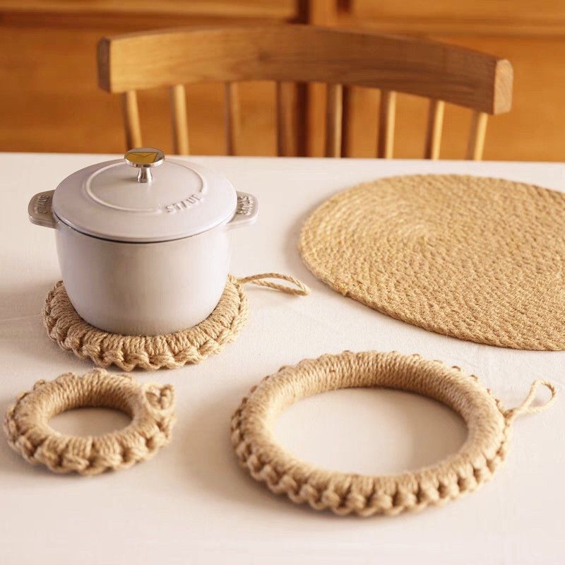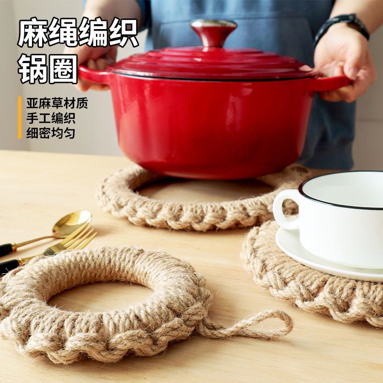 손으로 짠 공장 재고 마 로프 짠 패드 냄비 링 플레이트 패드 코스터 단열 냄비 패드 일본식 기본 색상 플레이스매트