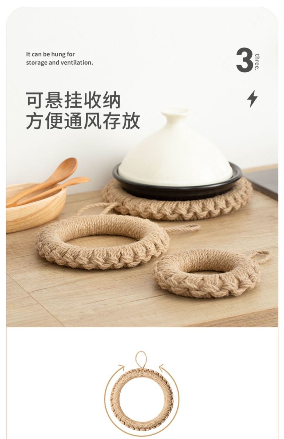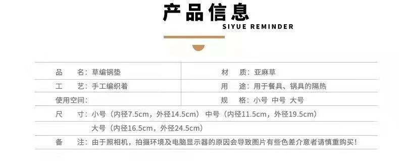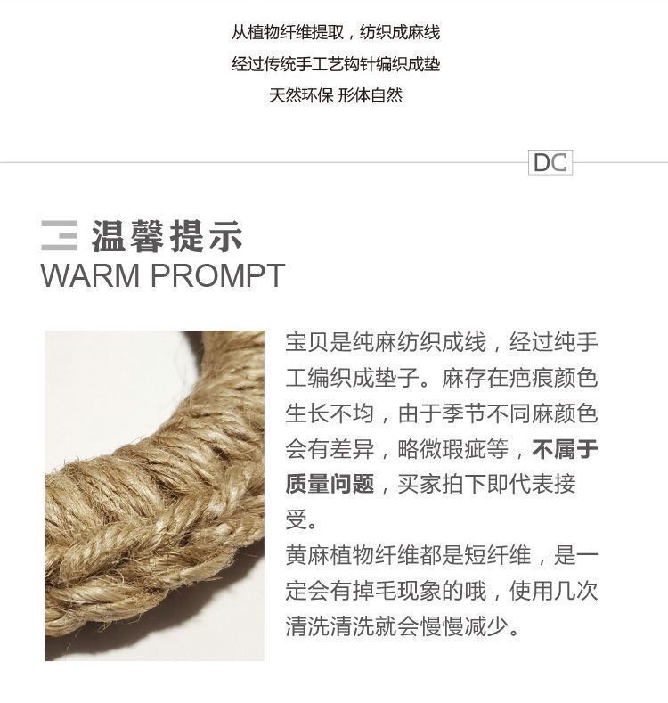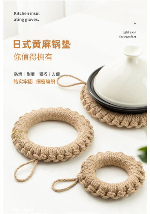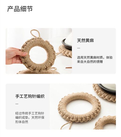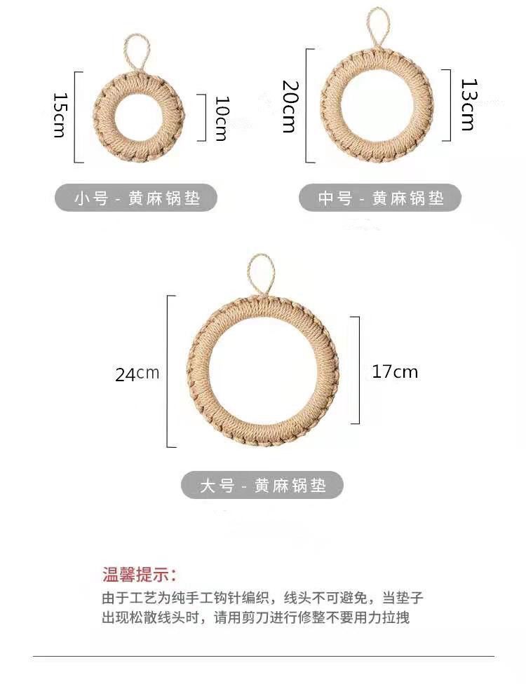 손으로 짠 공장 재고 마 로프 짠 패드 냄비 링 플레이트 패드 코스터 단열 냄비 패드 일본식 기본 색상 플레이스매트