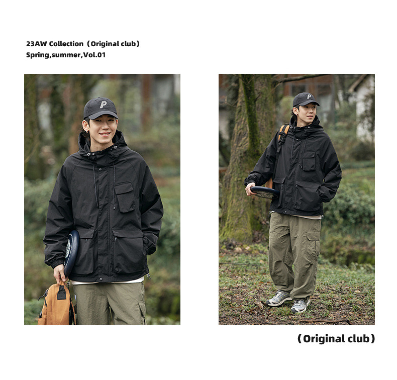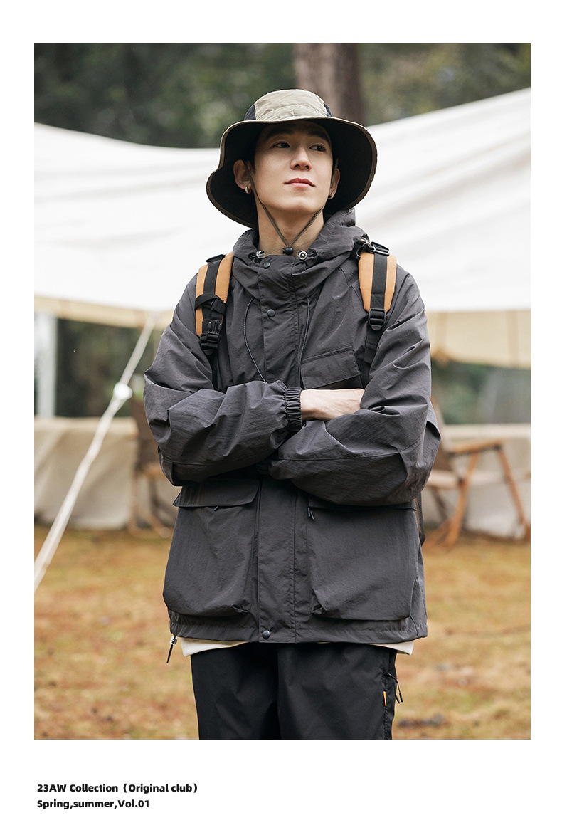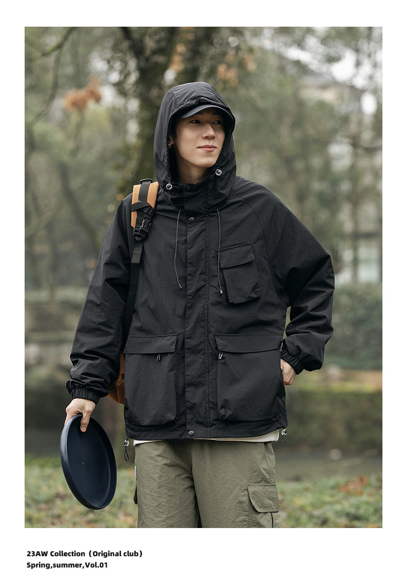 아미 카지 무거운 작업복 기능성 바람 더블 레이어 방풍 침투 방지 가을 후드 재킷 남성 자켓