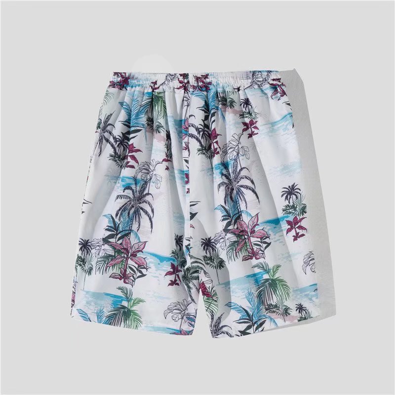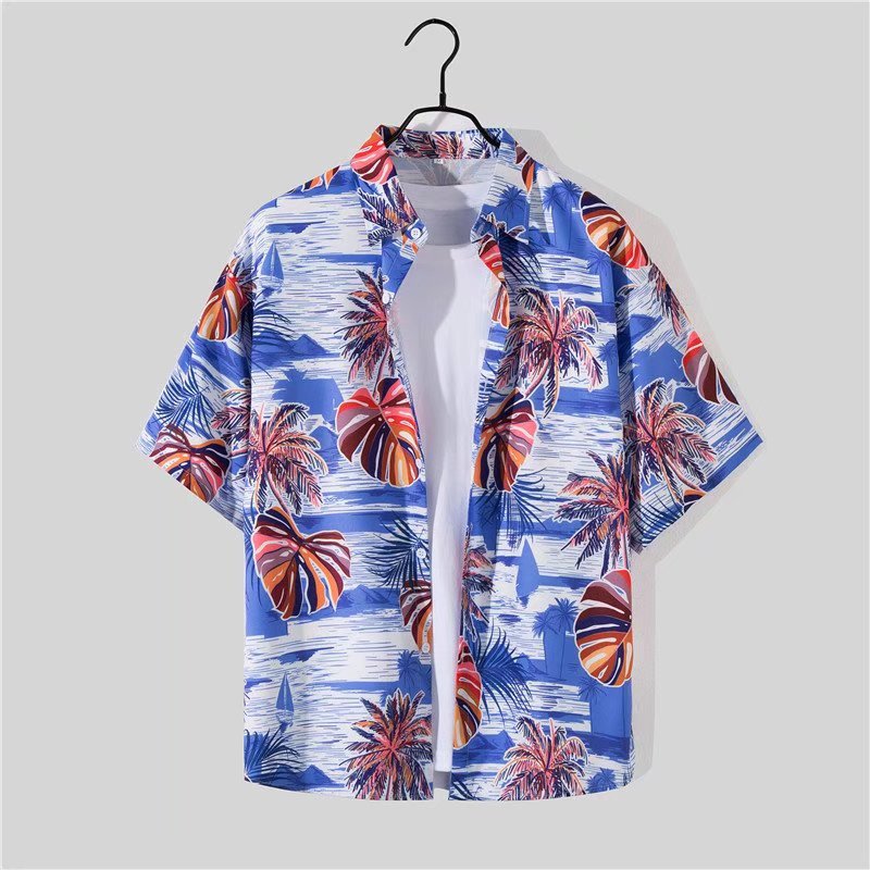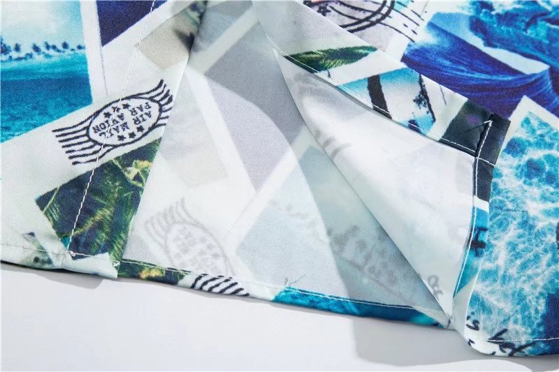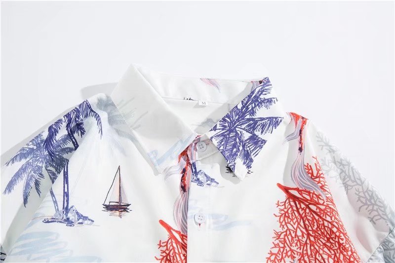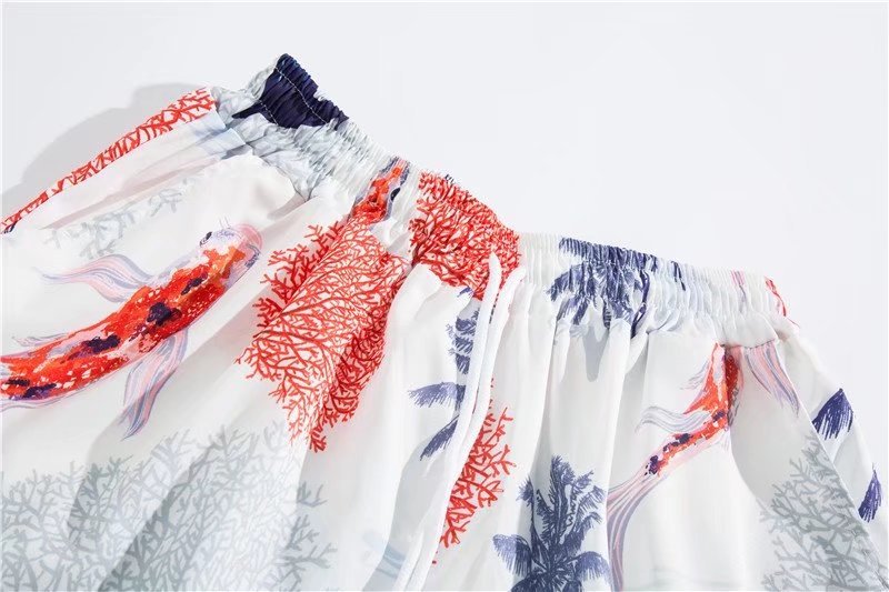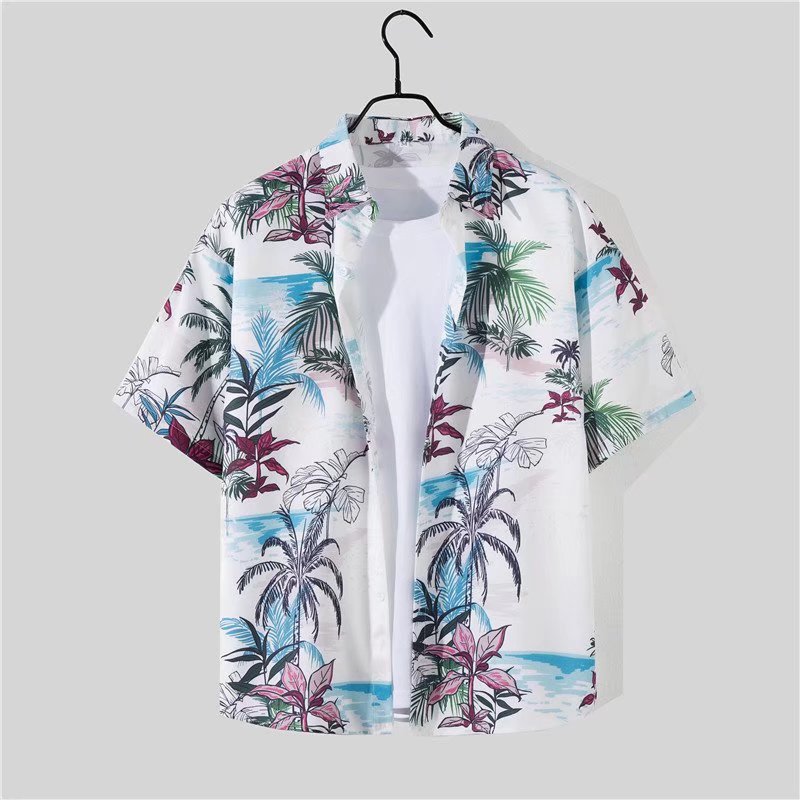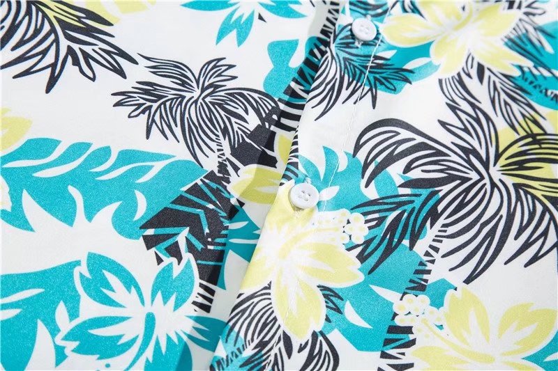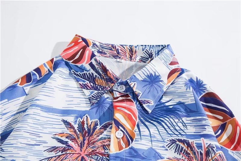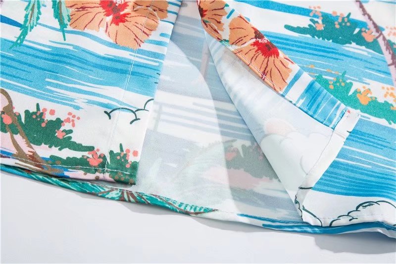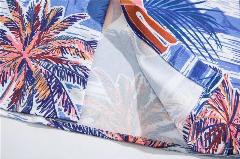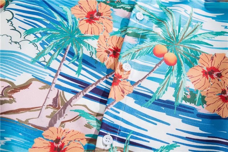 아이스 실크 반팔 꽃 셔츠 세트 남자의 여름 얇은 하와이안 프린트 셔츠 비치 바지 큰 바지 세트 남자